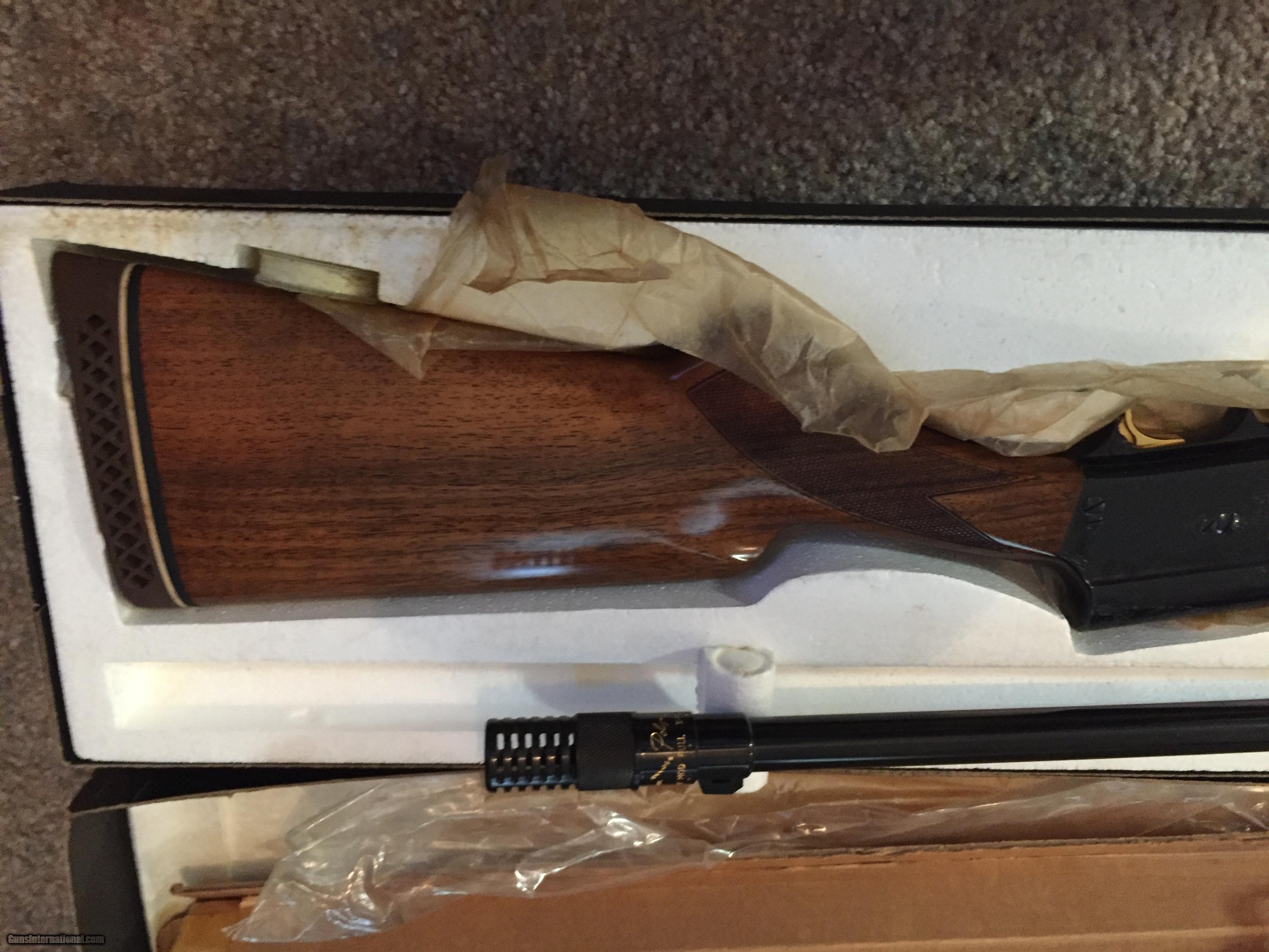 Description: 1967 Browning A5 20 ga magnum as new with 2 barrels, was ordered with 24" plain barrel / Poly Choke as box end shows, never fired, I purchased from Bob Wood (now deceased) of Birmingham and owner at the time of Aero Marine, he later found the box but no manual, I purchased a new 28" full choke vent rib Belgium barrel later, the gun has only been stored and never used, I see no flaws of any sort so since not in store I'll call it 99.9 %, beautiful honey colored wood, flat knob as I'm told the 67s only came that way, this is a rare find and I hate to sell but the time has come, call for questions or email, ship to FFL only, add $40 for shipping, this is the last reduction in price so don't miss it! Thank you for looking. Please note this has 2 barrels SOLD Manufacturer: Browning Model: A5 Serial Number: 7X7689 Caliber Info: 20 ga Mag Condition: as new Metal Condition: 99.9% Wood Condition: 99.9% Barrels: 2 Butt Pad: Rubber Browning recoil Manufacture Date: 1967 Item Location: Linden, AL |