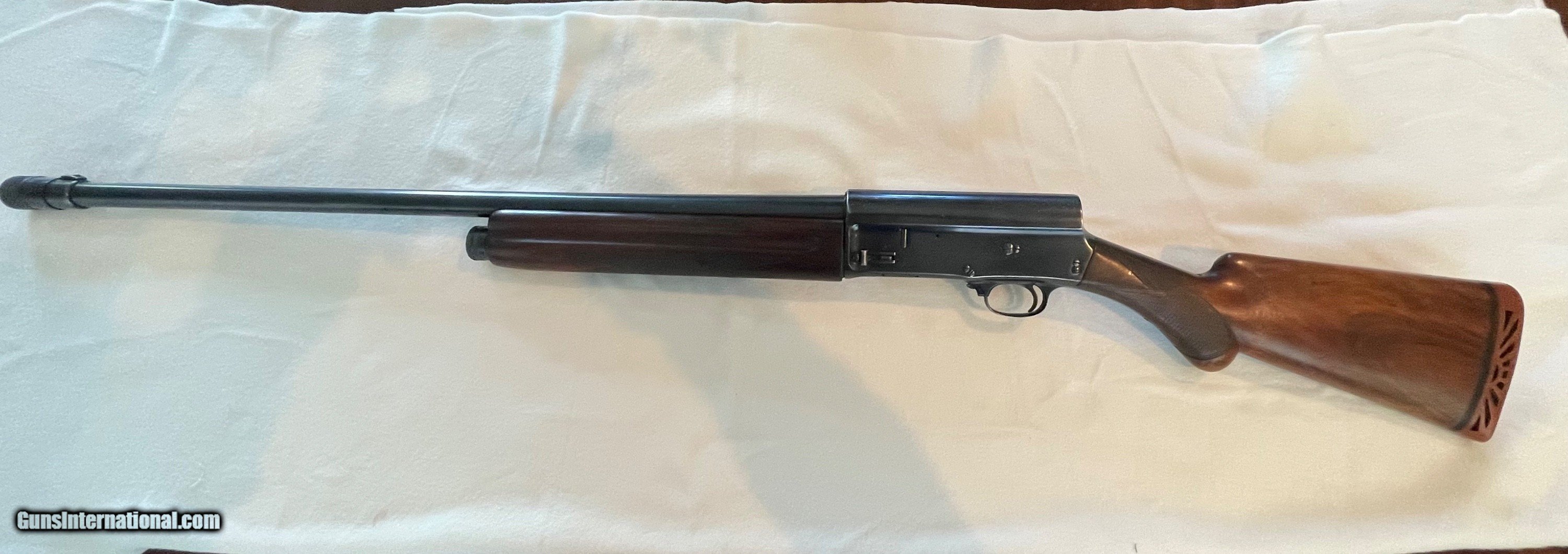 Description: Made in Belgium in 1938 Browning Belgium A5 12 gauge, Barrel is 28" poly choke LOP 14" Serial # 201081 Manufactured in 1938 There are some nicks and wear on the wood and some thin spots on the blueing. This gun has been in storage for the last 50 years please add $75.00 for shipping. SOLD Manufacturer: Browning Model: A5 Serial Number: 201081 Condition: Good Metal Condition: Good Wood Condition: Fair Bore Condition: Very good Action: Semi-Auto Triggers: Single Stock: Wood LOP: 14” Rib: None Weight: 8.2 lbs Manufacture Date: 1938 Chokes: Poly Case: Old canvas and leather Item Location: Fl |
