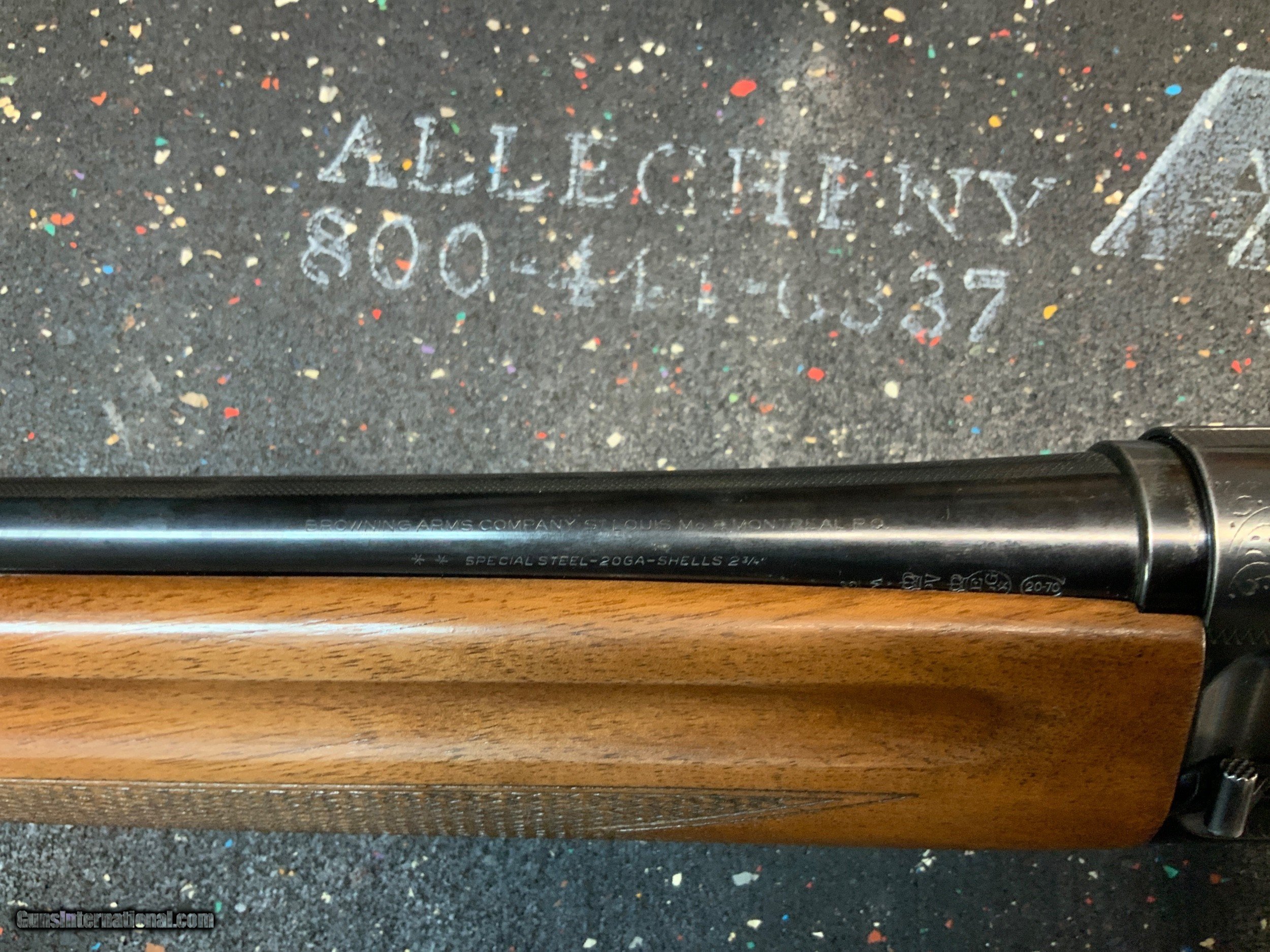 Description: SALE PENDING.......LOWERED PRICE! Belgium Browning A5 semi-automatic shotgun. This one has the 27 1/2 inch plain barrel with the desired modifid choke. Bluing is very good and the wood is near perfect. Slightest wear on some high edges. Maybe not the minty collector but a very nice shooter and priced accordingly. Pictures show what you get. Please add $60 for shipping and insurance to your FFL. If your FFL dealer will not accept from a private party please add $20 to the cost of shipping to cover my dealers transfer fees. SOLD........... SOLD Shotgun Gauge: 20 Gauge Manufacturer: Browning Model: A5 Barrel Length: 27 1/2 Condition: Excellent Metal Condition: Very Good Wood Condition: Excellent Bore Condition: Excellent Manufacture Date: 1967 |