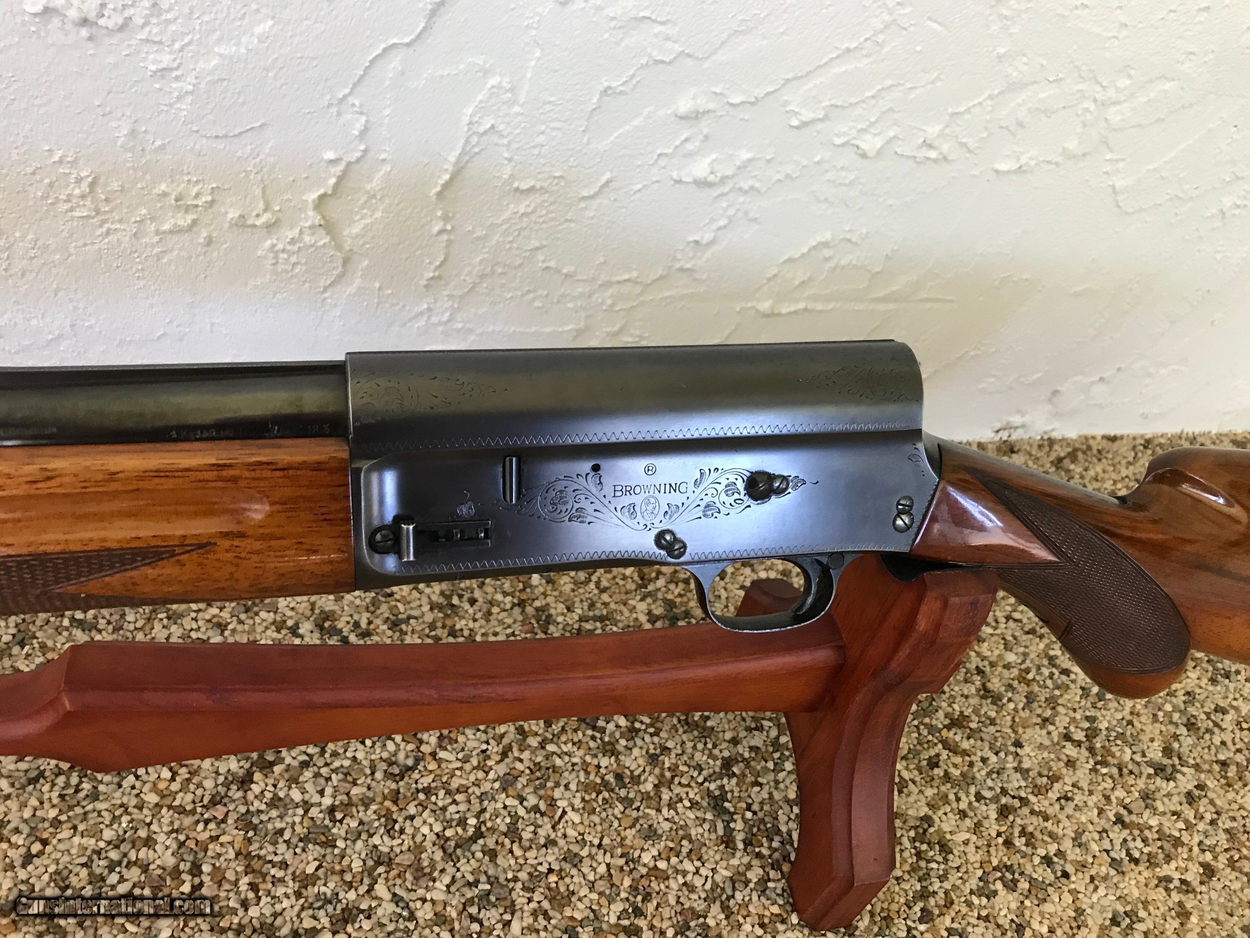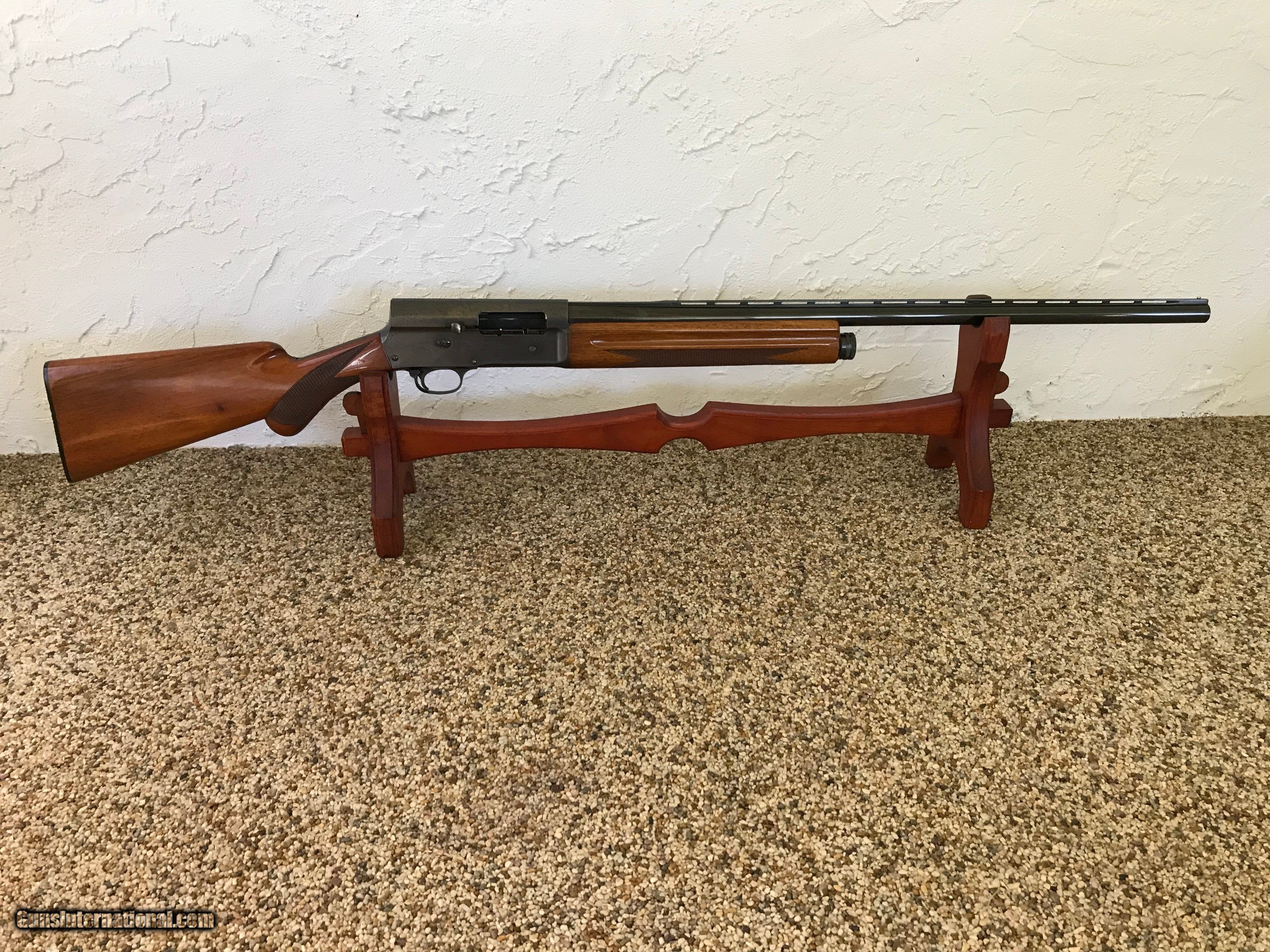 Description: 1962 FN Belgian Browning A5 12 Gauge Bore. (All Original). Equipped With Speed Loading Feature And Magazine Saftey/Cut Off Load Feature. Saftey And All Cycling Smooth Action. 28" Vented Flat Ribbed Barrel Is Fixed Modified Choked. Round Knob Stock. Original FN Butt Plate, Gorgeous Strong Wood, Original Browning 3 Shot Wooden Plug And Retainer, 2 3/4" Shell Chambered. John Moses Browning- In Partnership With Fabrigue Nationale de Herstal- Considered The Auto 5 His "Finest Achievement". Highly Maintained/ Exquisite. (Serious Inquries Only Please). No- West Coast, Hawaii or Alaska. SOLD |