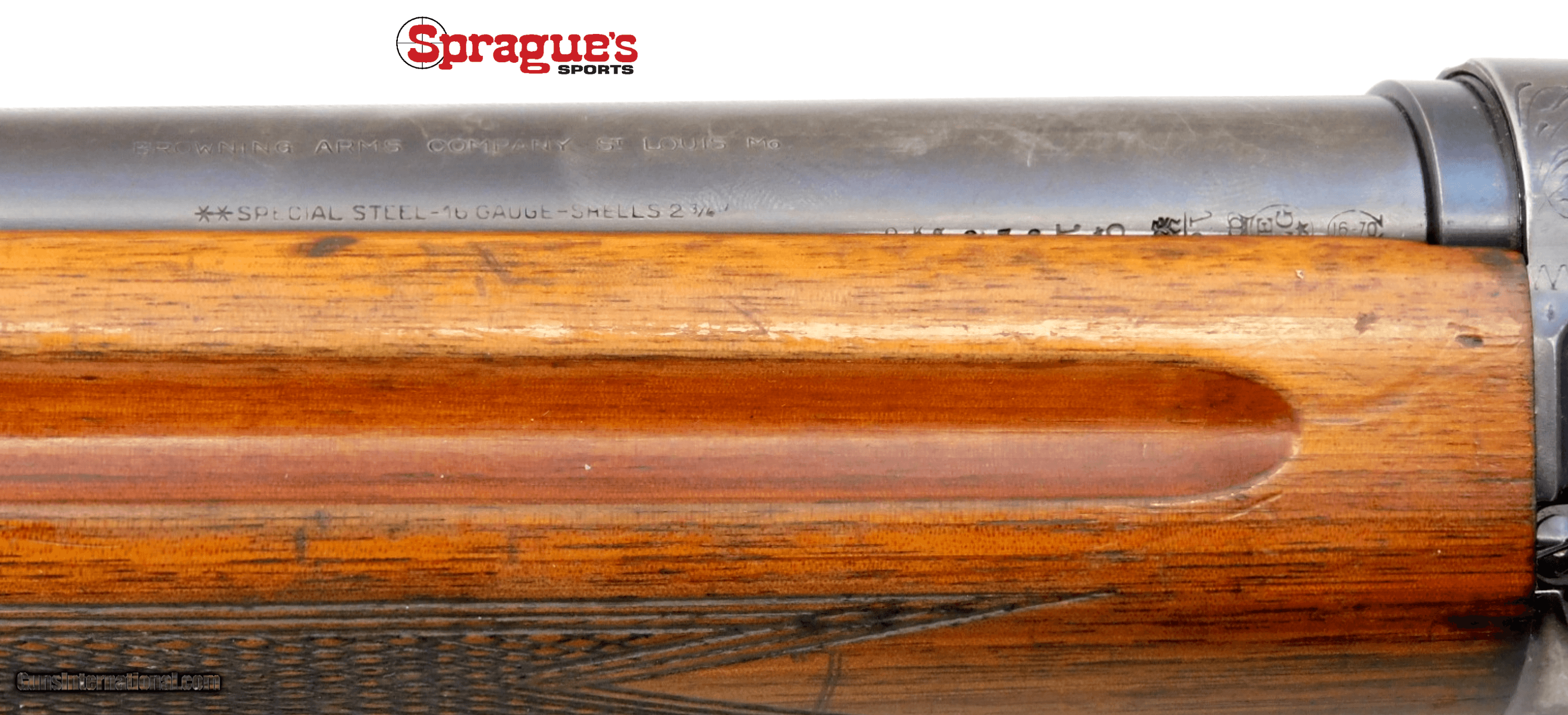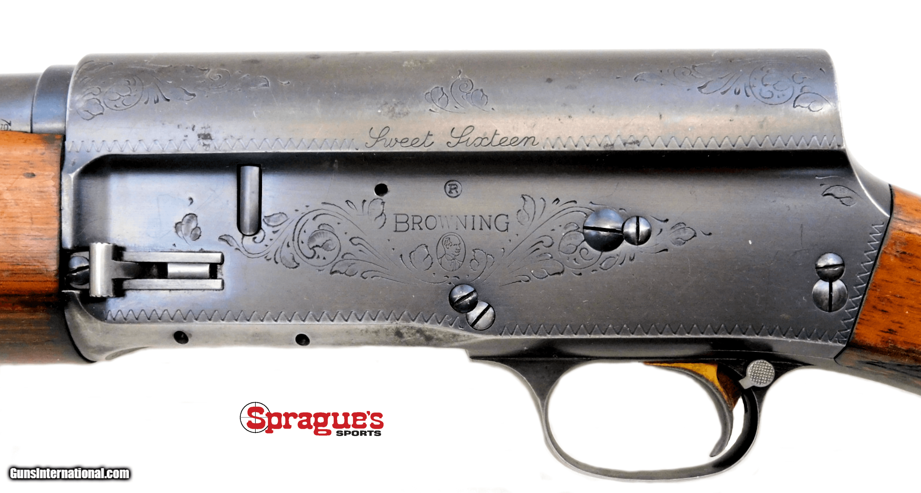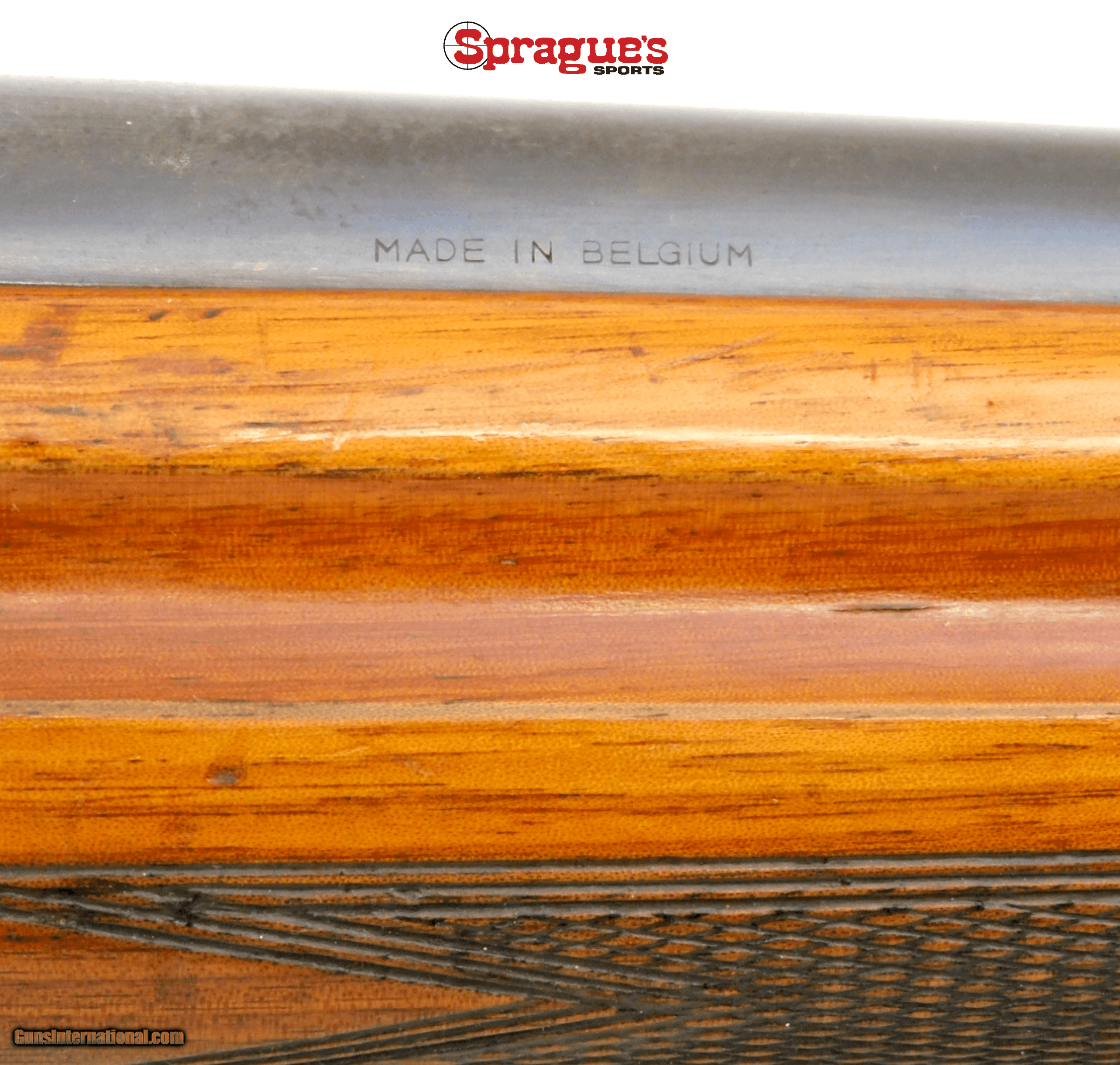 Description: Browning Belgium A5 SweetSixteen SemiAutomatic Shotgun Manufacturer: Browning Model: A5 Sweet Sixteen Gauge:16 Gauge, 2 3/4" chamber Manufactured:Belgium 1957 Barrel:27.5", shiny smooth bore Choke:Fixed MOD Front Sight:Metal bead Optic:N/A Finish:Blued, moderate handling marks Receiver:Semi-automatic, mechanically solid, fed by tubular magazine, lightly engraved receiver, cross-bolt safety, button bolt release, gold trigger, "Sweet Sixteen" on the left top side of the receiver "BROWNiNG" lower on the left side and a likeness of John Browning in a oval surrounded by floral engraving below, moderate handling marks Grip Stock:Nice Prince of Wales checkered grip stock - forearm, possibly refinished at some point, checkering is clear with wear apparent, no cracks found, moderate handling marks with a few field scars. Stock has been shortened. Length Of Pull:12 3/8" Grip Cap:N/A Forend Cap:N/A Recoil Pad:Brown White Line Accessories:N/A Condition:This is a very nice used Browning Belgium A5 Sweet Sixteen shotgun showing wear commensurate with age and use. Good mechanics, metal, bore, and wood. Serial Number:S96040 Sprague's Number:149325 Add 3% for Credit Card Shipping will be actual cost. This shotgun will be a GREAT addition to your future outings! In-house pictures are of the item(s) being ed and the item(s) that will be shipped to the highest ! If there are no boxes, documentation, accessories, etc. shown in the pictures or described in the description, they are not included. Any stock pictures will be labeled as such. PRIOR TO !!! We will do our best to answer all questions Monday through Saturday during business hours, but are CLOSED ON SUNDAY. Buyers are responsible to ensure that you have fully reviewed the listing before purchase. You will be held responsible for any purchases that you make. Buyers are responsible to know and ensure that they are in compliance with local, state, and federal regulations/laws and are of legal age for items purchased. We have not test fired any firearms unless specifically noted in the description. Have a GREAT SAFE HEALTHY day! SOLD |