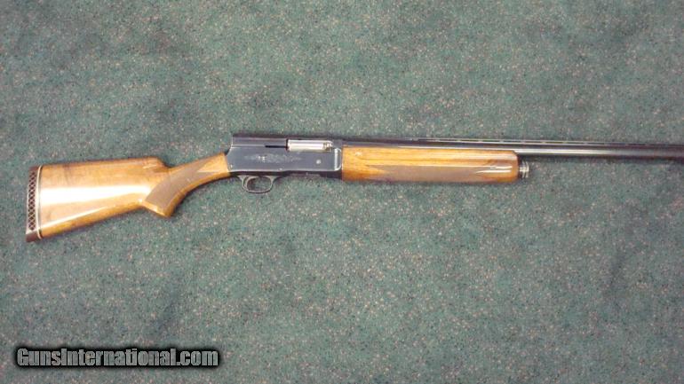 Description: PRICE REDUCED Browning Belgium Made A-5 12 Ga. mag, 30" Full Choke barrel with Vent Rib. In at least 96% Condition. has 2 sets of bushings (mag and field load)Very slight blue wear on the sharp edges. Original Browning butt pad. A very nice Shotgun Shipping to your FFL, handling and Insurance at actual cost. Sorry, no California Sales. Add 3% for CC's. This gun and all used guns should be checked by a trusted gunsmith before firing. This price is firm, it won't get any cheaper. SOLD |