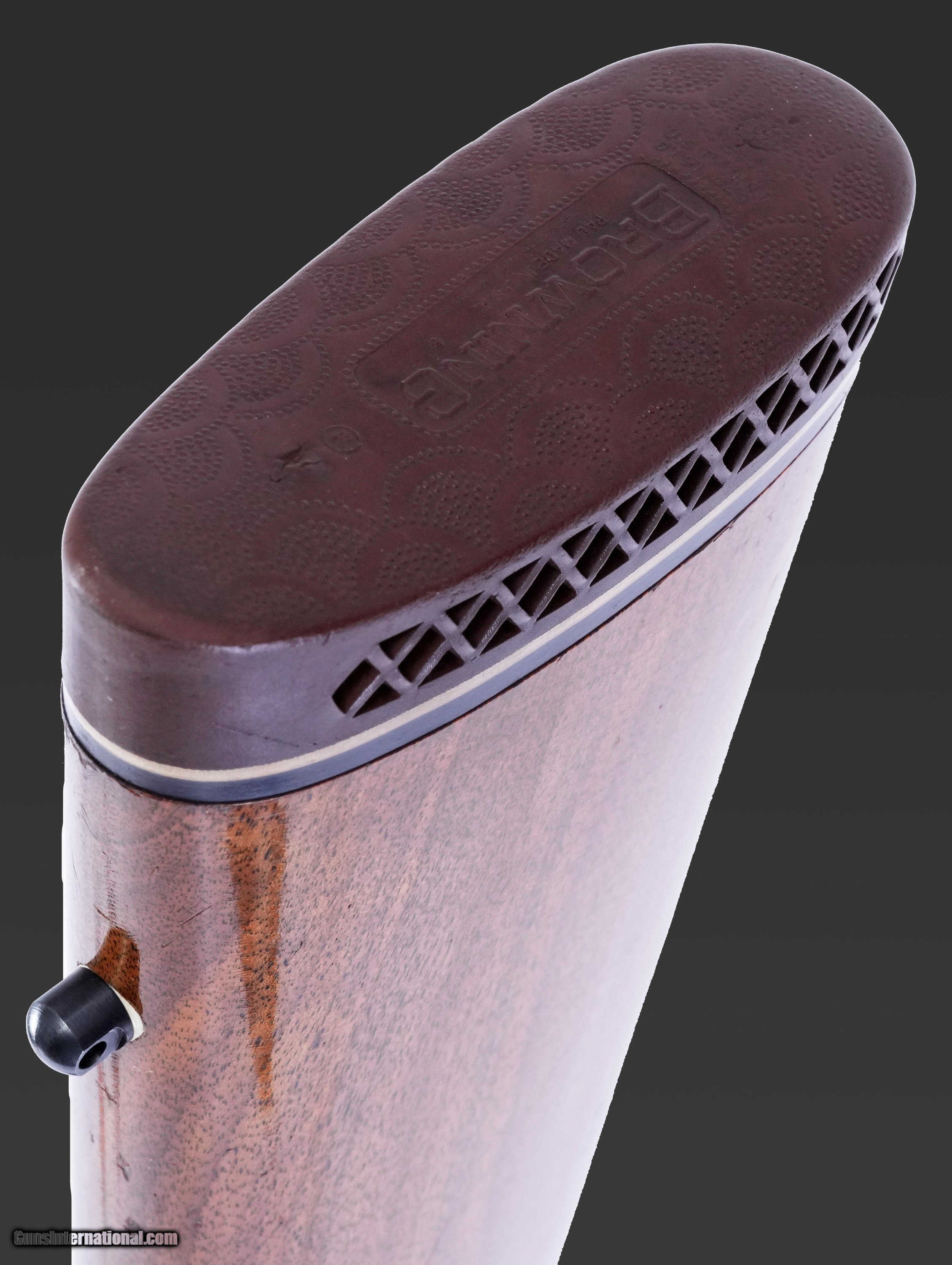 Description: BROWNING BELGIUM A5 MAGNUM 12GA 28" BARREL CIRCA 1966 The original finish is 90%—94 % or better. Some dings in the wood wear are commensurable with the percent of finish. 3" chamber, 14 1/4" LOP. SOLD Shotgun Gauge: 12 Gauge Manufacturer: BROWNING Model: A5 MAGNUM BELGUIM Barrel Length: 28 Bore: EXCELLENT Chambers: 3 Condition: EXCELLENT Metal Condition: EXCELLENT Wood Condition: EXCELLENT Bore Condition: EXCELLENT Action: SEMI-AUTO Triggers: SINGLE Stock: ROUND KNOB SEMI PISTOL GRIP Stock Comb: 1 1/2 Stock Heel: 2 1/8 Stock Cast: -0- Butt Pad: BROWNING RECOIL PAD LOP: 14 1/4 Rib: VENTILATED Finish: BLUED Sights: BRASS BEAD Manufacture Date: 1966 Chokes: MODIFIED Item Location: Florida |
