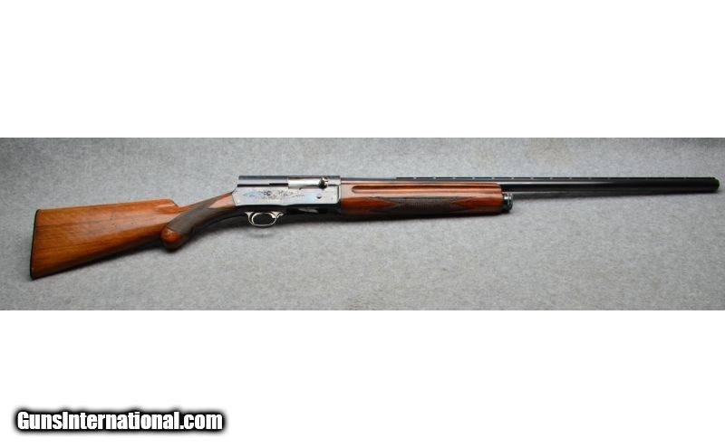 Description: Made in Belgium A5 Classic in a 12 Ga. ... Just waiting for that memorabible hunt with a few buddies your favorite retreaver. SOLD Caliber Info: 12 Ga. Chambers: 4 Rounds Metal Condition: Very Good bluing thin in sptoe and a littld handoling marks Wood Condition: Very Good, with some handoling marks Bore Condition: Very Good, Bright and shiny Barrels: 28 Inches Triggers: Factory, Smooth face and inside trigger guard safety . Stock: Factory, Walnut checkered grip with round knob pistol grip stock Fore End: Factory, Walnut checkered grip Butt Pad: Factory, Hard black plastic plate with embossed logl Weight: 7 Pounds 9.6 Ounces Sights: Factory, Raised vented rib with brass bead on end. Item Location: Noblesville, IN |