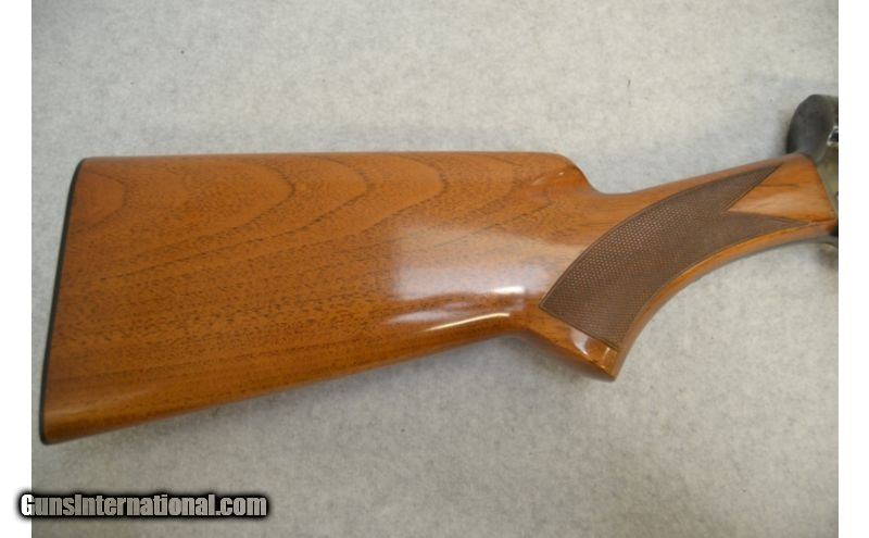 Description: SOLD Manufacturer: Sources indicate 1968 Caliber Info: 12 Gauge Chambers: 2 3/4" Shells Metal Condition: Excellent; a small or two of spotting and some minor handling marks Wood Condition: Very good; has a few very minor handling marks Bore Condition: Excellent Barrels: 28" Ventilated rib barrel Triggers: Gold colored metal with smooth surface Stock: Diamond pattern checkered wood Stock Dimensions: 14 1/2" LOP Fore End: Bottom wrap around panel with diamond pattern Butt Pad: FN/Browning logo thin black plastic Weight: 8lbs Sights: Stainless front bead Chokes: Fixed modified choke Item Location: Green Bay, WI |