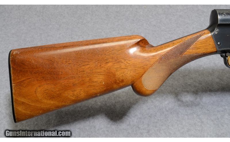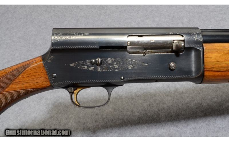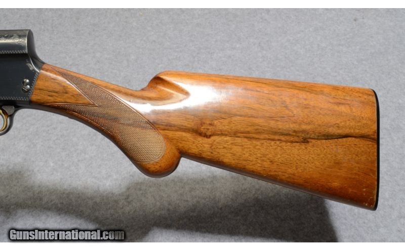 Description: Light Twelve is a variant of an Auto-5 semi auto shotgun manufactured in Belgium. The Browning Automatic 5, most often Auto-5 or simply A-5, is a recoil-operated semi-automatic shotgun designed by John Browning. It was the first successful semi-automatic shotgun design, and remained in production until 1998 SOLD Caliber Info: 12 Ga. Chambers: 2 3/4 Metal Condition: Very Good Wood Condition: Very Good Bore Condition: Excellent Barrels: 27 1/2" And Extra Barrel Stock: Checkered Walnut Fore End: Checkered Walnut Butt Pad: Factory Butt Plate Weight: 8 lbs Sights: Front Bead Chokes: Modified Extras: Comes With Case And Extra Barrel Item Location: Tulalip, WA |