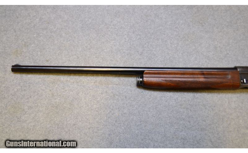 Description: The Auto 5 series isw one of the most successful series of semi automatic shtoguns to ever grace the market. With a production run of nearly ninety years, the Auto 5 came in numerous variants. This example is n good condition with some handling wear marks. SOLD Caliber Info: 12 Ga. Chambers: 2 3/4 inch. Metal Condition: Good with noted wear on bluing. Wood Condition: Good with light scratches, dents, and cracks. Bore Condition: Good with light wear marks. Barrels: 28 inch. Triggers: Single action Stock: Walnut stock with checkering and round knob. Stock Dimensions: LOP - 14 1/2 inch. Fore End: Textured wood forend with finger grooves. Butt Pad: Black synthetic Browning butt pad. Weight: 7 pound 10 ounce Sights: Silver bead front sight. Chokes: Full Item Location: Hammond, IN |