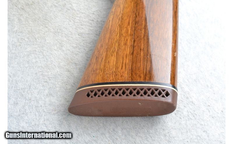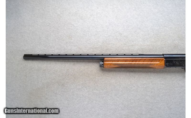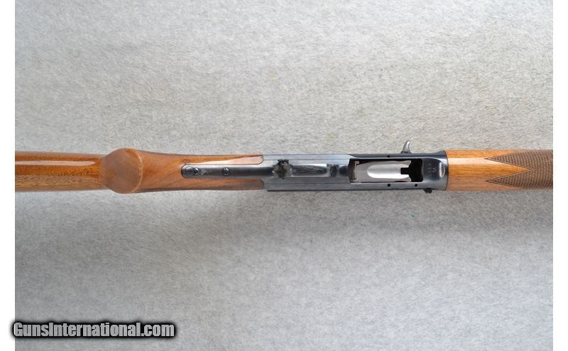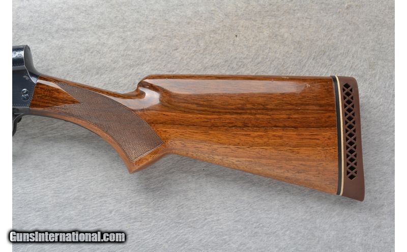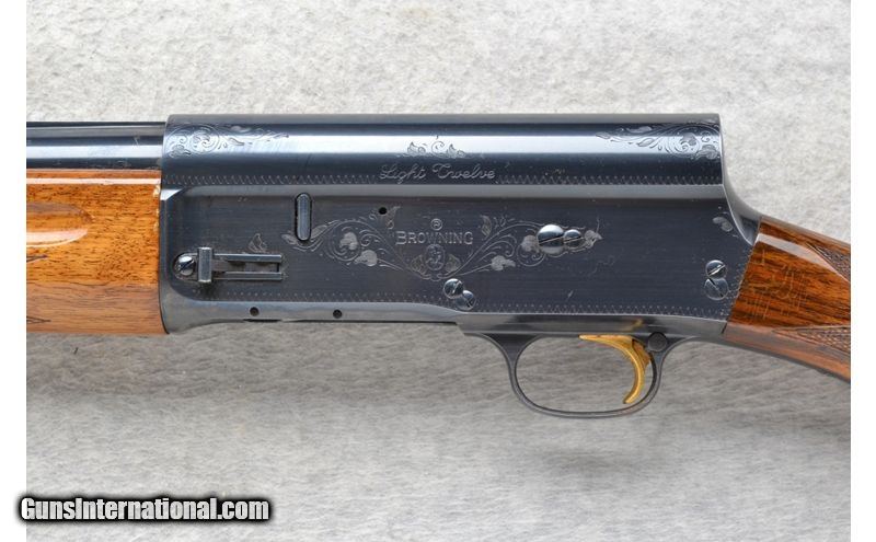 Description: This Browning Model Auto-5 Light Twelve is a right hand semi-auto 12 Ga. shotgun. It has a 27.5 inch barrel with a ventilated rib. A metal bead front sight. In a 2 3/4 inch chamber it has a fixed Modified choke. The butt stock is a checkered walnut pistol grip. The forearm is a checkered grip walnut with finger grooves. 12 Gauge SOLD Chambers: 2 3/4 inch Semi-Auto Metal Condition: Very good. A little blue wear on the bottom of the barrel in front of the magazine. Wood Condition: Good. Has some handling marks and fine surface cracks in the lacquer finish. Bore Condition: Shiny Barrels: 27.5 inch barrel with a ventilated rib. Triggers: Golden Stock Dimensions: LOP 14 3/8 inch Fore End: Checkered grip walnut with finger grooves. Butt Pad: Pachmayr White Line rubber recoil pad. Weight: 8 lbs. 0 oz. Sights: Metal front bead. Chokes: Fixed Modified Item Location: Buda, TX |