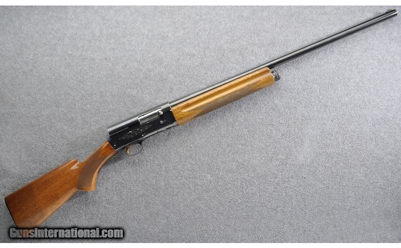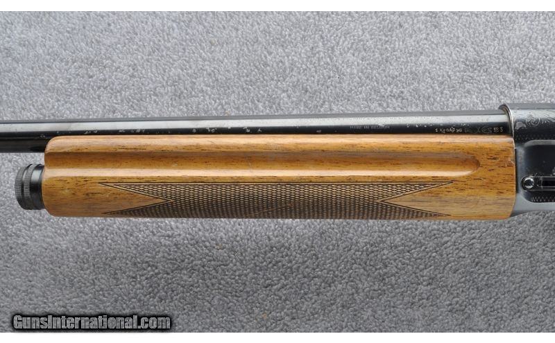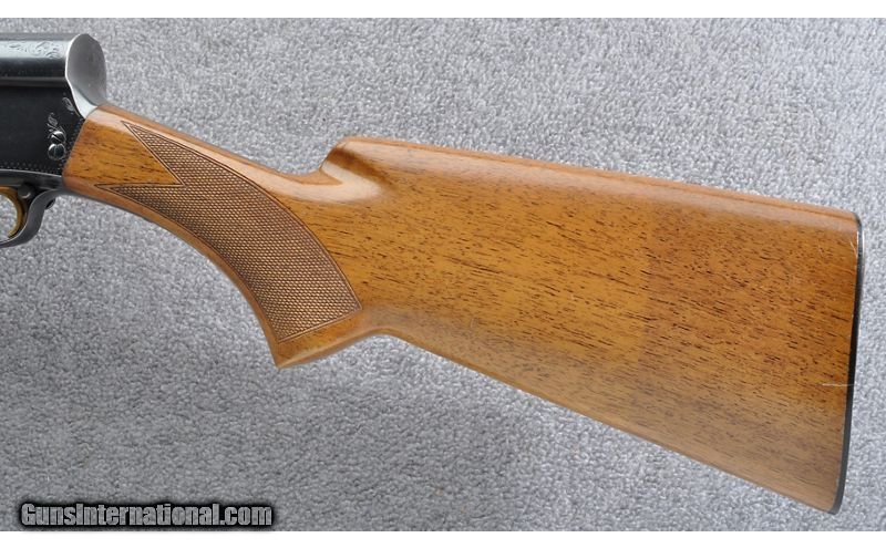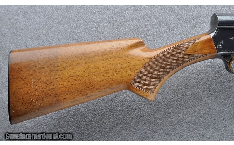 Description: This Browning Auto-5 shotgun, built by FN Belgium in 1969, shows some field use but, other than a few cosmetic flaws, it is in prime condition. 12 Gauge SOLD Chambers: 2 3/4" only Metal Condition: Showing some flaked pitting on the barrel and receiver with blue wear at the sharp edges Wood Condition: Good showing no visible cracks but with a few dents and creases. Bore Condition: Bright Barrels: 27 1/2" Plain with raised bead Triggers: Gold washed Stock Dimensions: 14 1/4" LOP Fore End: Checkered point pattern with grasping grooves Butt Pad: Browning composite with logo Weight: 8 lbs. Sights: Raised metallic bead front Chokes: Fixed full Item Location: Grand Junction, CO |