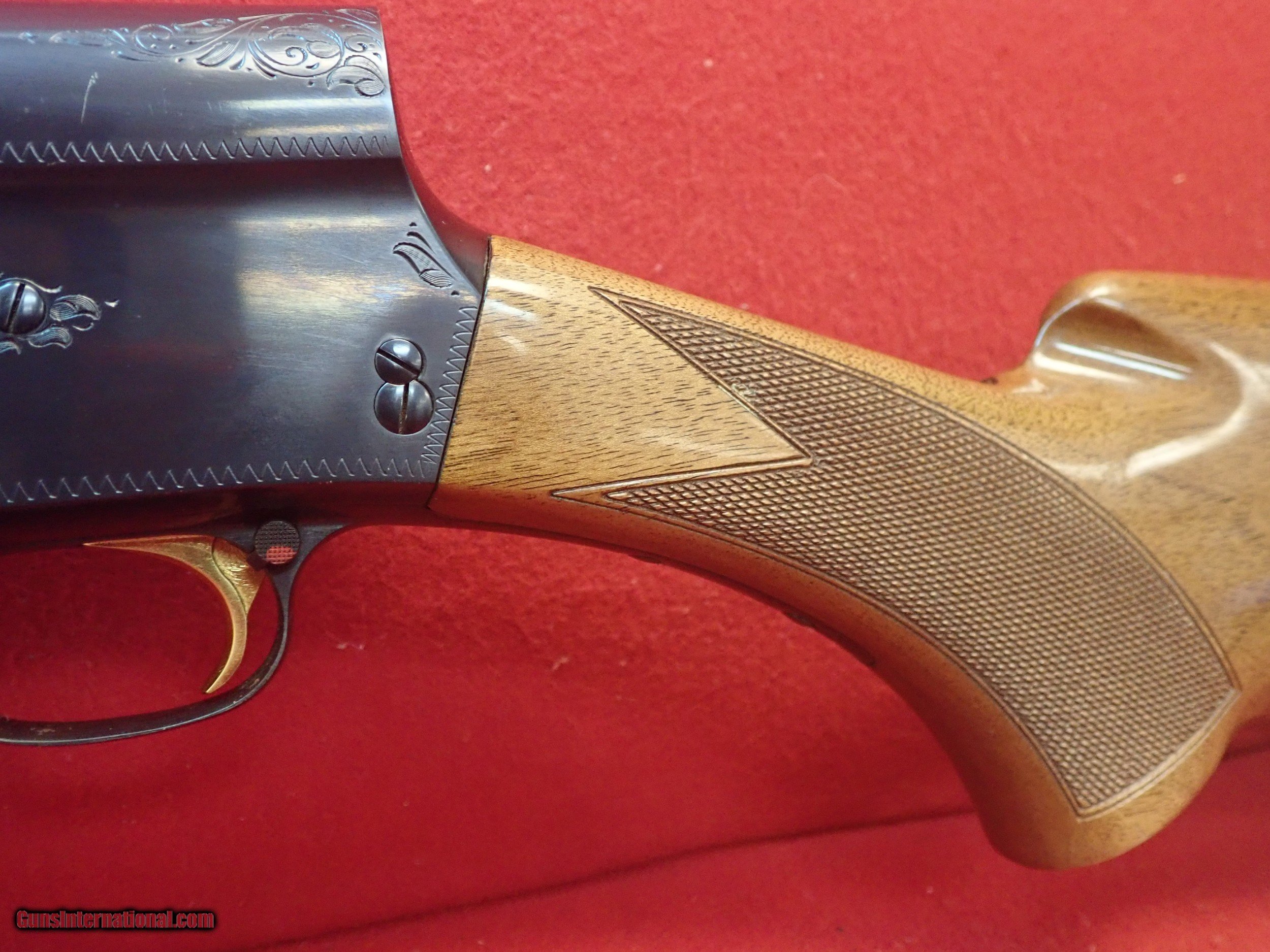 Description: **SOLD** Browning Light Twelve 12ga semi automatic shotgun, dated to 1970. This shotgun features beautiful French walnut furniture with finely cut checkering, fine floral engraving, as well as a rich blue finish on the receiver and barrel. The barrel is vent ribbed, with a silver front bead. The shotgun is in superb condition with little to no finish loss, and a small area by the heel of the stock and the grip cap with some shallow dings. The action is smooth as glass and the bore is excellent. Modified choke, 14" LOP. Please refer to the photos to further assess the condition of the shotgun.**SOLD** SOLD Manufacturer: Browning Model: Light Twelve Serial Number: 70G42091 Caliber Info: 12ga |