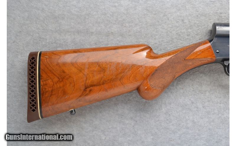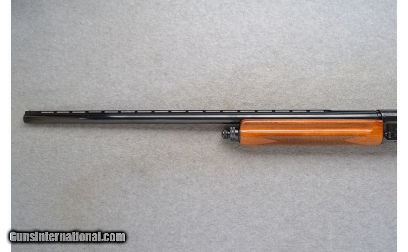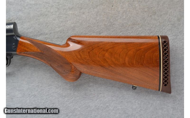Description: This Browning Model Magnum is a semi-auto 12 Ga. shotgun. It has a 29.5 inch barrel with a ventilated rib. With a fixed Full choke it is in 3 inch chamber. The stock is a checkered walnut round knob pistol grip. The reciever is lightly classic Browning engraved. Made in Belgium. SOLD Manufacturer: Made in Belgium. S/N 4V56XXX Caliber Info: 12 Ga. Chambers: 3 inch Semi-Auto. Metal Condition: Very good with some minor handling/use marks. Wood Condition: Fair. Has handling marks and surface finish marks. Micro cracking in the laquer finish. Bore Condition: Bright and shiny. Barrels: 29.5 inch blued barrel with a ventilated rib. Stock: Checkered walnut round knob pistol grip. Stock Dimensions: LOP 13 7/8 inches. Fore End: Checkered grip walnut with finger grooves. Butt Pad: Browning brown rubber recoil pad. Weight: 8 lbs. 15 oz. Sights: Metal front bead. Chokes: Fixed Full Extras: Swivel studs. Item Location: Mitchell, SD |