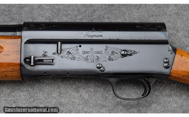 Description: This Browning Auto 5 Magnum in 12 gauge is in great condition throughout. Only shows light blue loss in high places, and there is one deep scratch on the left side of the fore end. No box. 12 Gauge SOLD Chambers: 3 Metal Condition: Excellent Wood Condition: Very Good Bore Condition: Excellent Barrels: 29.5" Ventilated Rib Triggers: Factory Stock Dimensions: 14" LOP Fore End: Checkered Walnut Fore End - Checkered Walnut Pistol Grip Stock Weight: 8.9 lbs. Sights: Silver Front Bead Chokes: Full * Item Location: Wheeling |