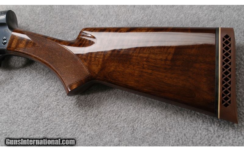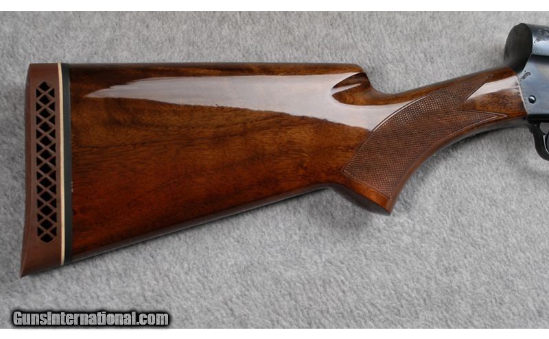 Description: 12 Gauge SOLD Chambers: "3"", semi-auto repeater. Metal Condition: Very good. Wood Condition: Very good. Bore Condition: Very good. Barrels: "31 1/2"", blued. Triggers: Single. Stock Dimensions: 14 1/4" LOP. Fore End: Matching checkered walnut. Butt Pad: Rubber recoil pad. Weight: 9 lb. 6 oz. Sights: "Vent rib, single bead. Chokes: Fixed full choke. Item Location: Dundee, MI |