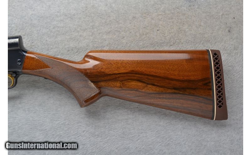 Description: This Browning Model Magnum Twenty is a right hand semi-auto shotgun in 20 Ga. It has a 27.5 inch barrel with a ventilated rib. A metal front bead sight. With a 3 inch chamber it has a fixed Full choke. The butt stock is a checkered grip walnut pistol grip. The forearm is a checkered grip walnut with finger grooves. S?N 68X14020. 20 Gauge SOLD Chambers: 3 inch. Metal Condition: Excellent. A few very minor handling marks and a little very minor freckling. Wood Condition: Good. Minor handling marks and has very fine cracks in the surface finish. Bore Condition: "Clean, bright and shiny. Barrels: 27.5 inch barrel with a ventilated rib. Triggers: Golden. Stock Dimensions: LOP 14 7/8 inches. Fore End: Checkered grip walnut with finger grooves. Butt Pad: Pachmayr White Line rubber recoil pad. Weight: 7 lb. 1 oz. Sights: Metal front bead. Chokes: Fixed Full. Item Location: Richfield, WI |