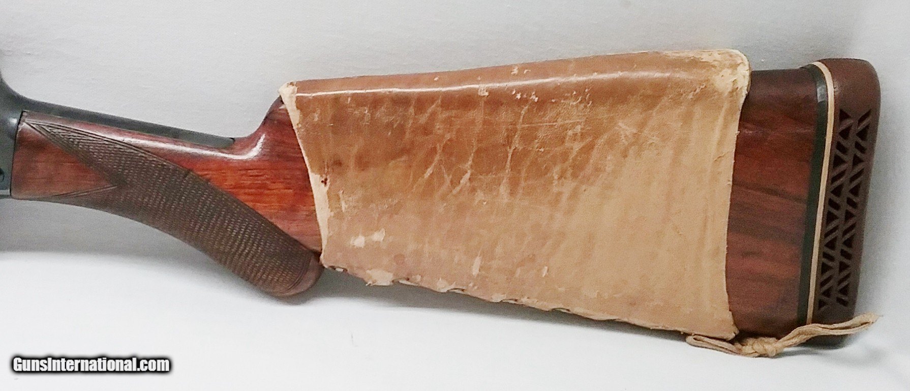 Description: This Belgium made 12 Ga Browning A5, 2- barrel set is chambered for 2-3/4” shells and has a 25-1/2” blued tapered round barrel with a matte ventilated rib and a red nylon front sight. The bore is in good condition and has an Improved Cyl. Choke. The blued receiver is in very good condition. The checkered Walnut forend and buttstock are in good condition with the exception of some handling marks and a repaired crack on the forend. Attached to the buttstock is a White Line rubber recoil pad. The gun comes with a wide trigger shoe, leather cheek riser, an extra 25” barrel with a bead front sight and an adjustable Poly-Choke, friction ring and other parts, manual and papers all in an original Browning leather covered; velvet lined carrying case. Length of pull is 15-1/2”, overall length is 46”, and weight is 8.2 lbs. Our stock number is #C50. Will ship to any FFL in the United States, buyer pays freight and insurance. SOLD Manufacturer: Browning Model: A5 Bore: Smooth Condition: Good Metal Condition: Very Good Wood Condition: Good Bore Condition: Good Barrels: 1 Barrel Type: Tapered Round Action: Semi-Automatic Triggers: One Gauge Info: 12Ga Stock: Walnut Fore End: Walnut Butt Pad: Rubber LOP: 15-1/2 Rib: Ventilated / Matte Finish: Blued Weight: 8.2 lbs Sights: Nylon Extras: W/ Case, Extra Barrel, Spare Parts, Manual and Papers Case: Yes Item Location: OR |