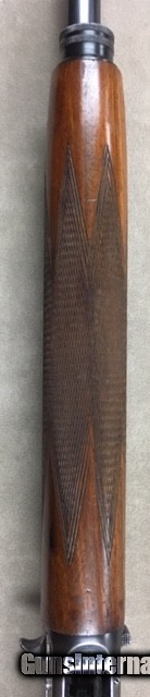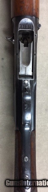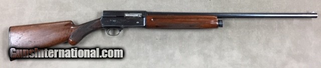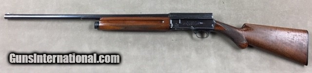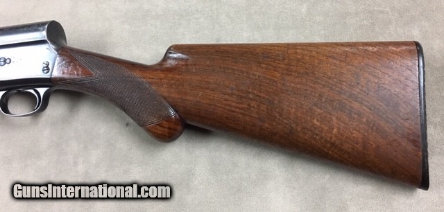 Description: An excellent original Pre WWII A5 16 Ga Auto 5 Browning, with original 25.5 inch modified plain barrel, long tang, round knob, etc. and in the original 2&9/16 inch chambering and so marked on the barrel. This gun retains 95% of the original Belgian blued finish, with excellent original european walnut stock and forend with only very minimal handling marks and no chips or cracks present. Superb quality made when workmanship prevailed at the FN factory. Serial range 12420x. Collector quality! SOLD Curio/Relic: Yes |