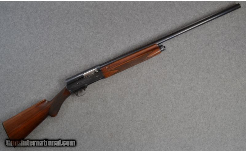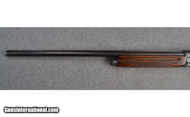 Description: This is a Belgium made Browning semi-auto shotgun. The shotgun does not indicate a gauge, however, when checking the barrel with a choke gauge tool it reads as a 16 gauge, full choke. SOLD Manufacturer: S/N 48XXX Caliber Info: NONE SHOWN Metal Condition: Fair condition. Overall wear of bluing noted. Wood Condition: Fair to Average condition with numerous scratches and dents as shown in pics. Bore Condition: Good condition, bright and shiney, no pitting or rust, no bulges. Barrels: 27 1/2 inches, raised rib. Stock: Straight checkered walnut. Stock Dimensions: LOP - 14 1/2 Inches. Fore End: Straight checkered walnut. Butt Pad: FN Browning Automatic butt plate. Weight: 7 Lbs 12 Oz as shown Sights: Front brass bead. Chokes: Fixed Full choke. Item Location: Lone Tree, CO |