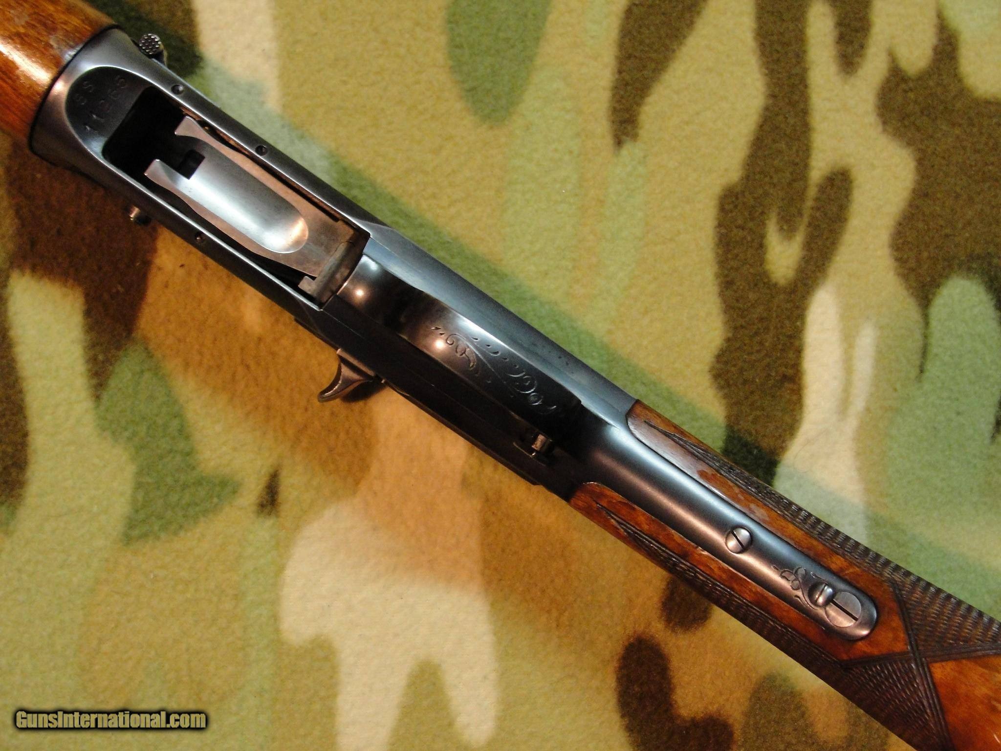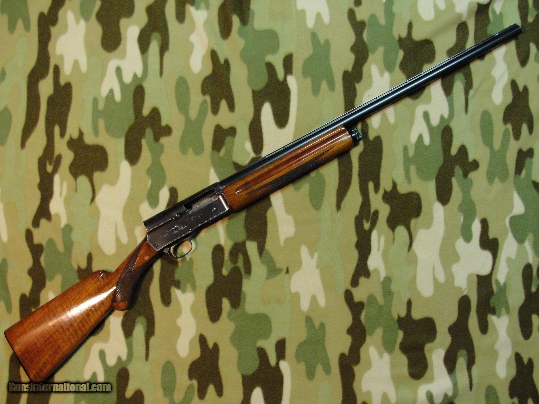 Description: *Sale Pending* Used Belgian A5 Sweet Sixteen, in very nice shape. Well preserved original wood and metal finishes, with some light, scattered handling marks and nicks.27-1/2" barrrel, Mirror-clean 0.670" bore, 0.023" MOD choke. There is a short hairline crack, in the typical place on the fore end; unfortunate, but still usable. Otherwise, a mechanically fine gun. 14-1/4" pull over the original butt plate. Ser#8S112xx made in 1958. C&R OK, CA sales welcome. Call or email for more info. SOLD Shotgun Gauge: 16 Gauge |