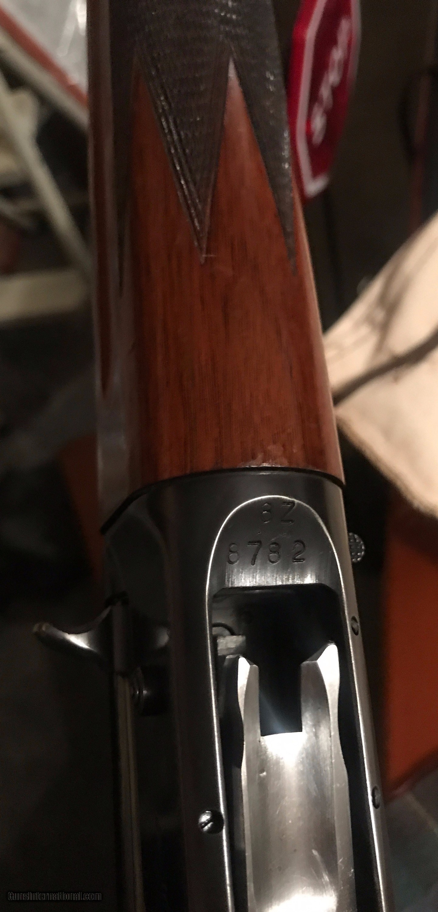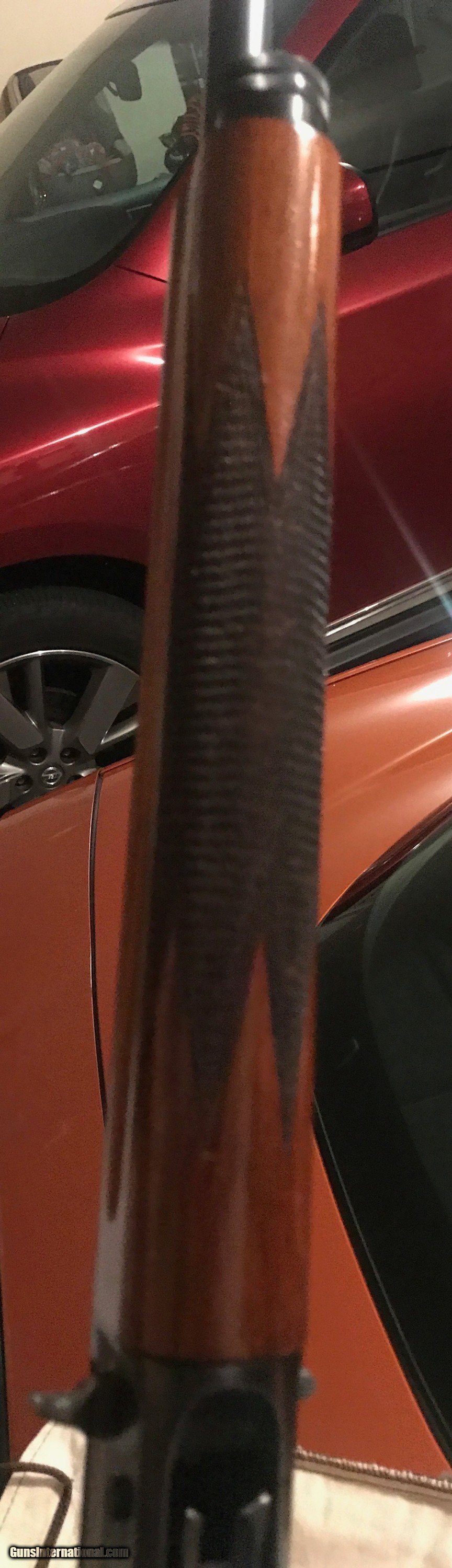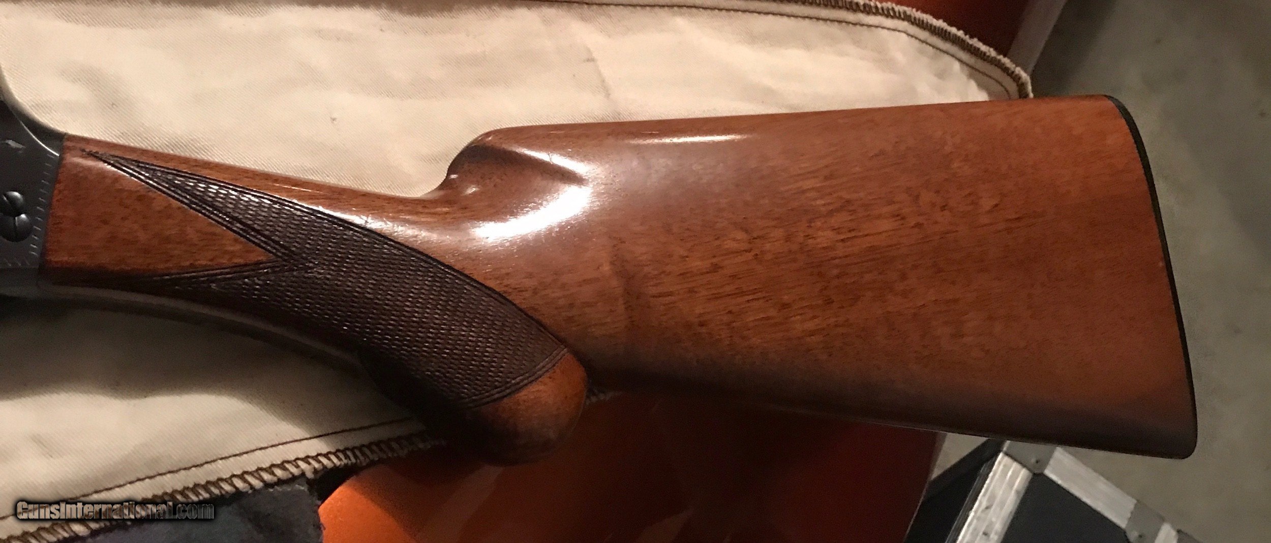Description: What an amazing find! Not only because it's a 1958 A5 20 gauge, but an A5 with the original carrying case with an extra ventilated rib barrel! Gun has light signs of use on receiver. Faint recoil marks on the modified choke ventilated rib barrel and barely visible recoil mark on the full choke ventilated rib barrel. The finish is in excellent condition with no cracks in the forearm or stock. Case is near mint with the original keys and papers. Also, has the owner's manual. This is a once in a lifetime opportunity for any Browning collector. A beautiful gun, complete package with case and papers that you can shoot and enjoy. I have more photos. Please email with questions. Shipping is included in the price. SOLD Manufacturer: Browning Model: A5 Caliber Info: 20 gauge Condition: used Metal Condition: excellent Wood Condition: excellent Bore Condition: excellent Action: semi-auto Gauge Info: 20 Rib: yes Finish: blue Sights: bead Manufacture Date: 1958 Case: yes Item Location: 37075 |
