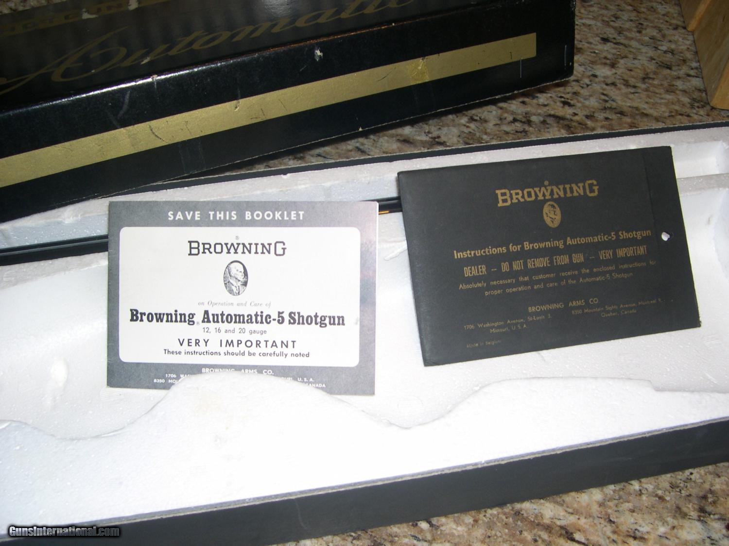 Description: Browning A5 20 26" IC VR Barrel ANIB 99.9% Made in Belgium in 1966 Picture of FN butt plate has been added! SOLD Manufacturer: browning Model: A5 Condition: new Gauge Info: 20 |