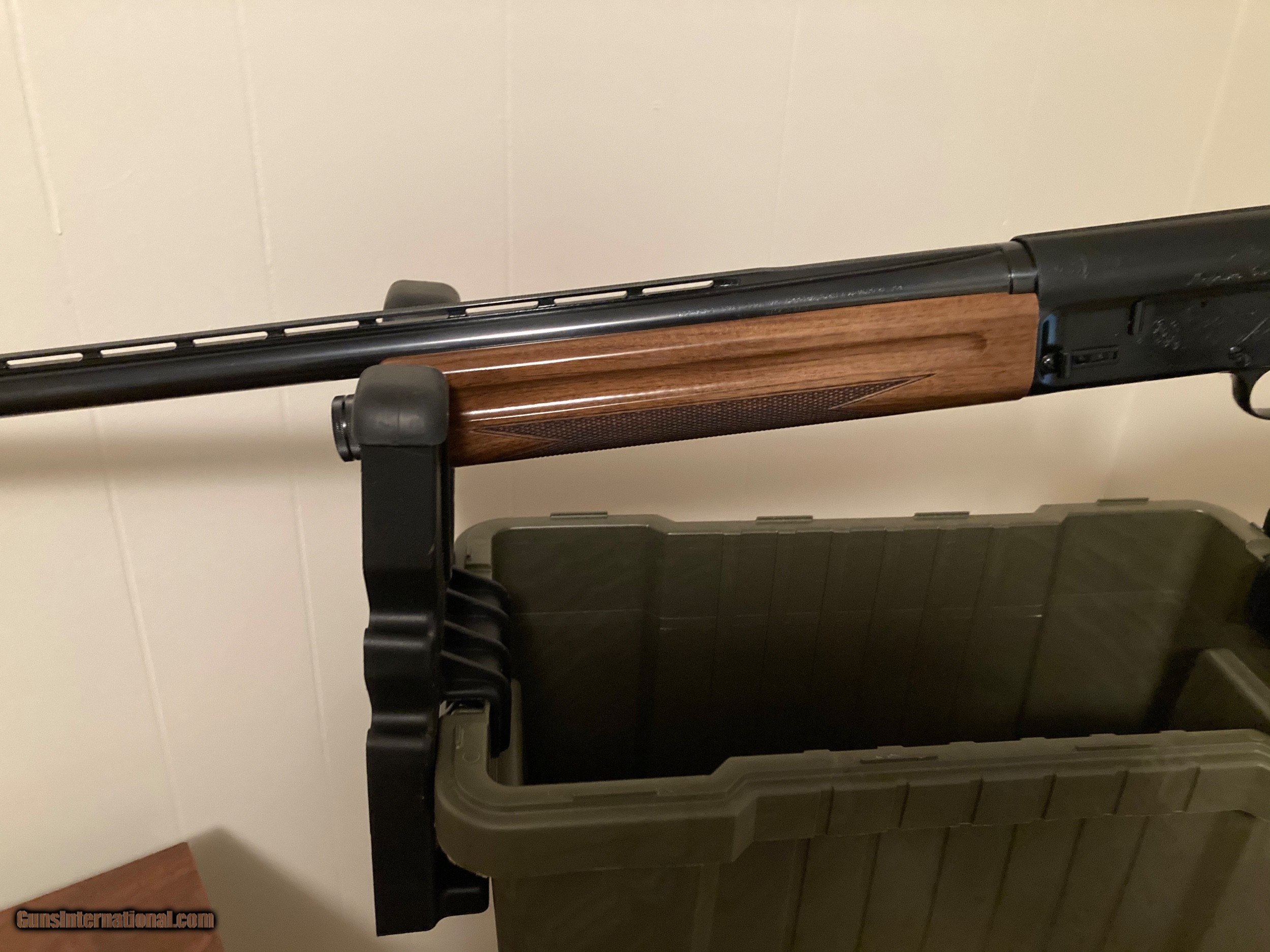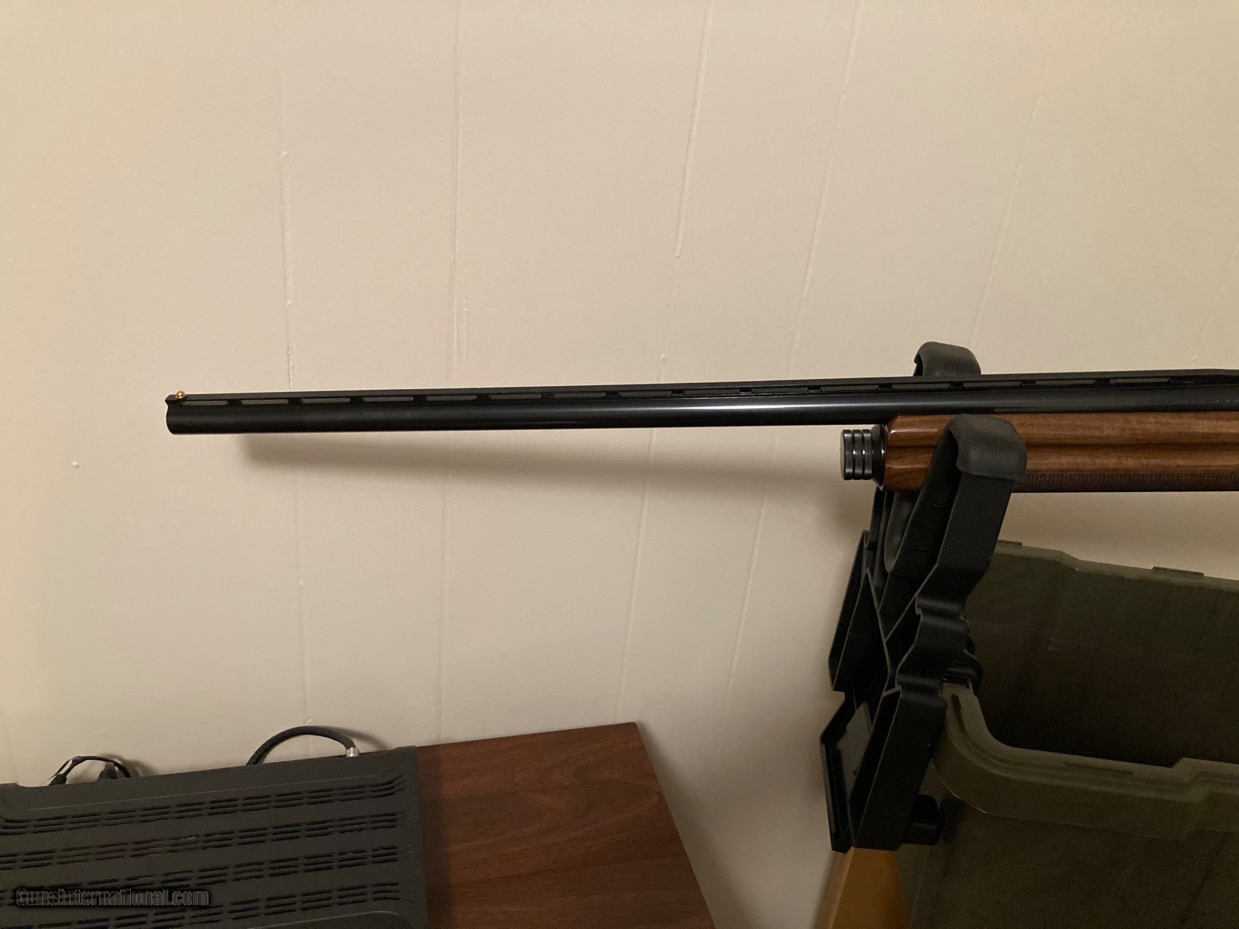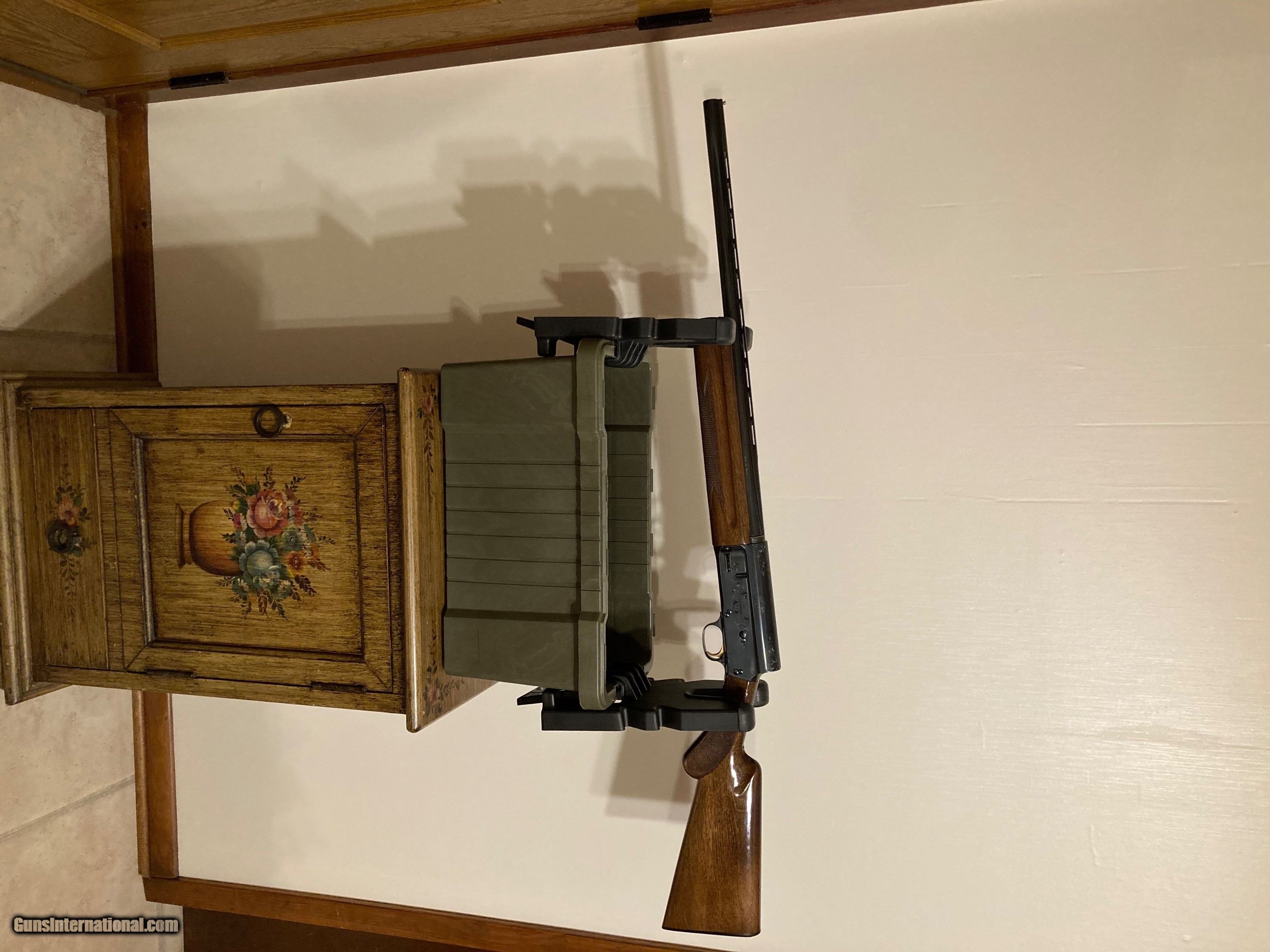 Description: This gun is an A 5 Belgium made light weight 20 g that comes with 2 barrels. The first barrel is a 22" Invector plus vent rib, the second is a plain barrel 26" Belgium made improved cylinder. The gun is in excellent mechanically with some light hunting marks in wood and the invector plus barrel has some lighting of blue L. O. P. Refurbished by Art. SOLD |