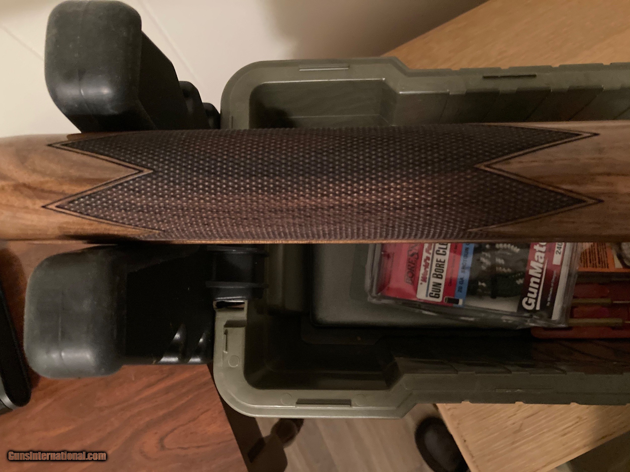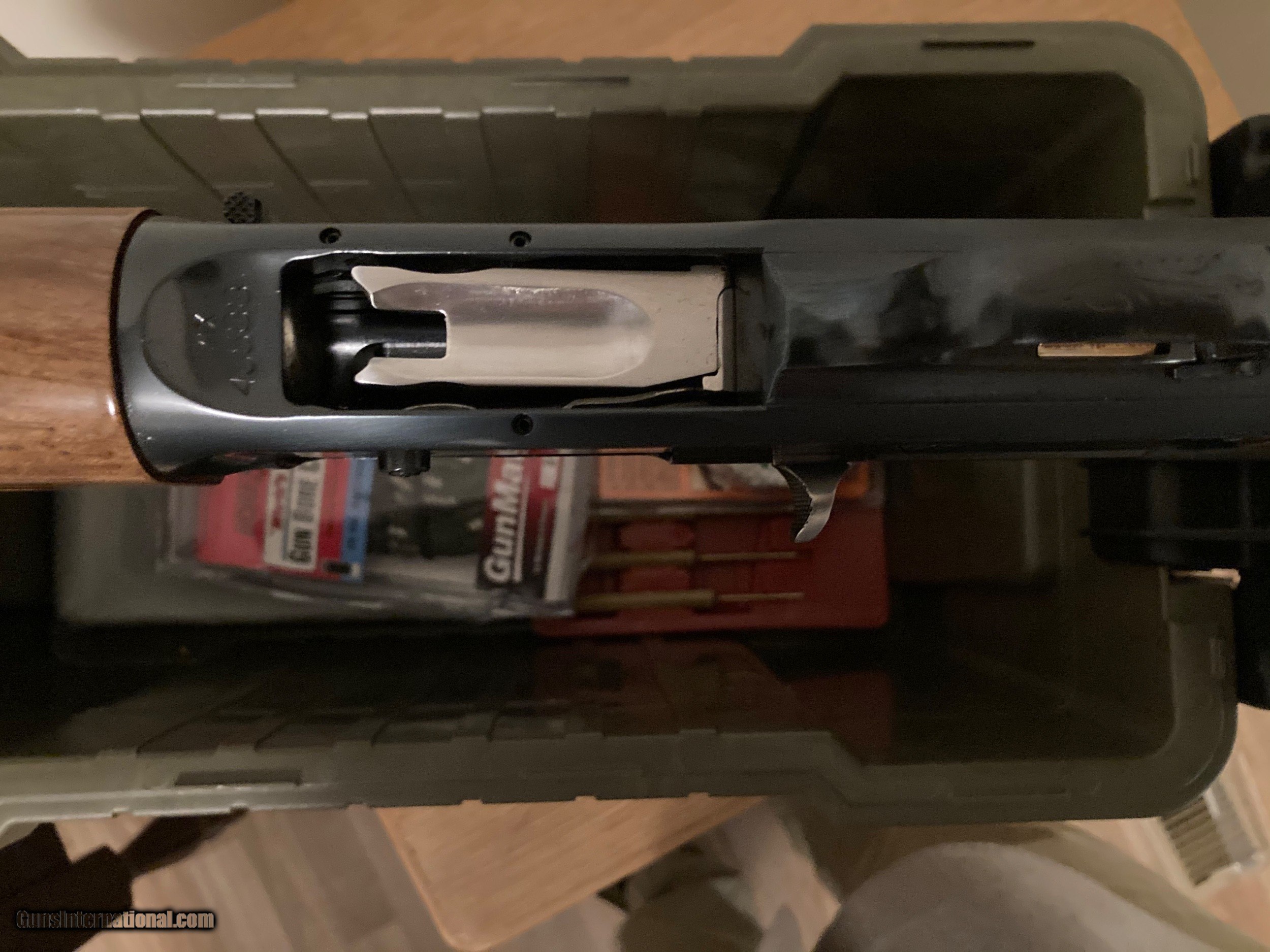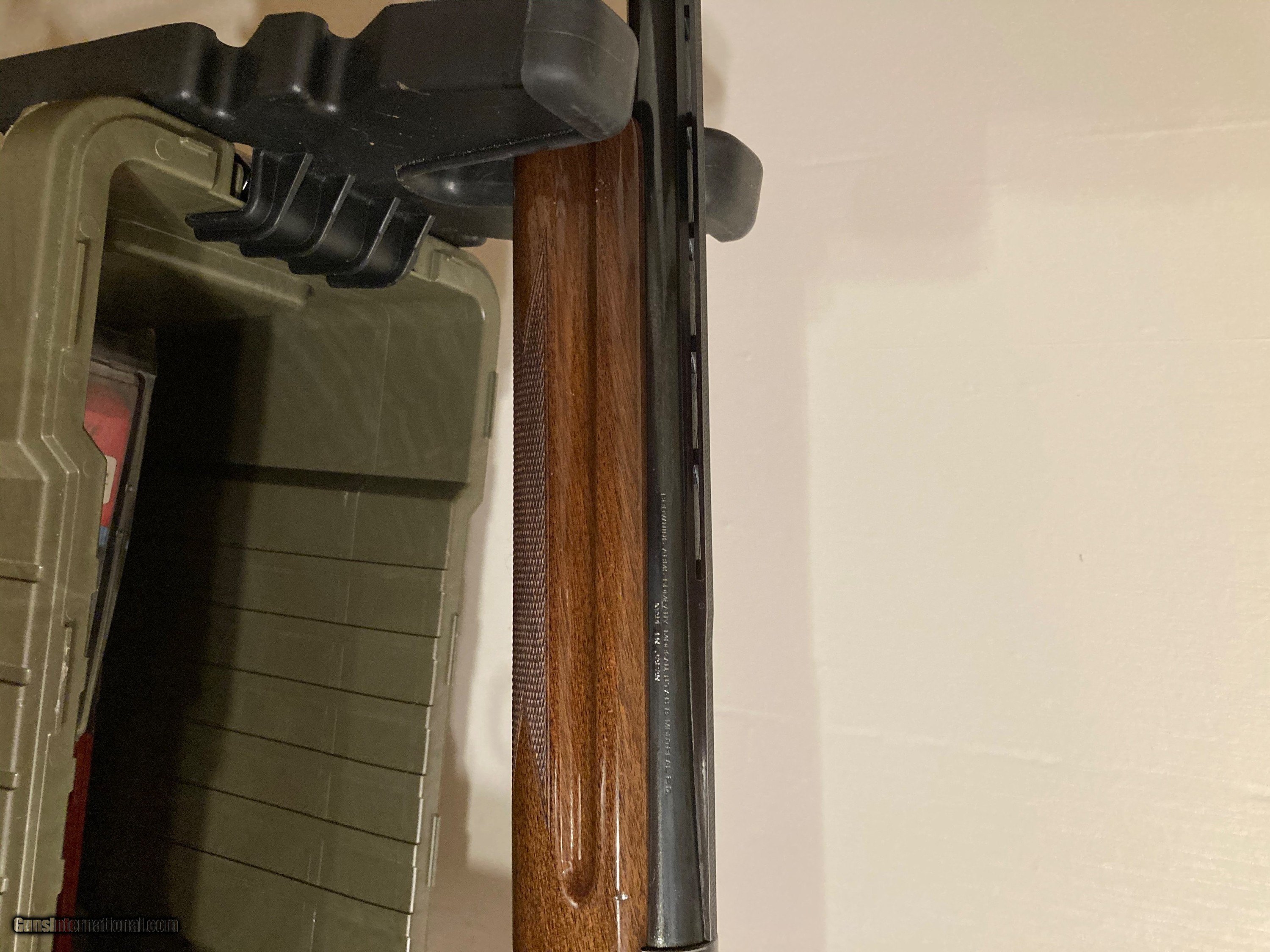 Description: This gun is an A 5 Belgium made light weight 20 g that comes with 2 barrels. The first barrel is a 22" Invector plus vent rib, the second is a plain barrel 26" Belgium made improved cylinder. The gun is in excellent mechanically with some light hunting marks in wood and the invector plus barrel has some lighting of blue L. O. P. Refurbished by Art. SOLD |