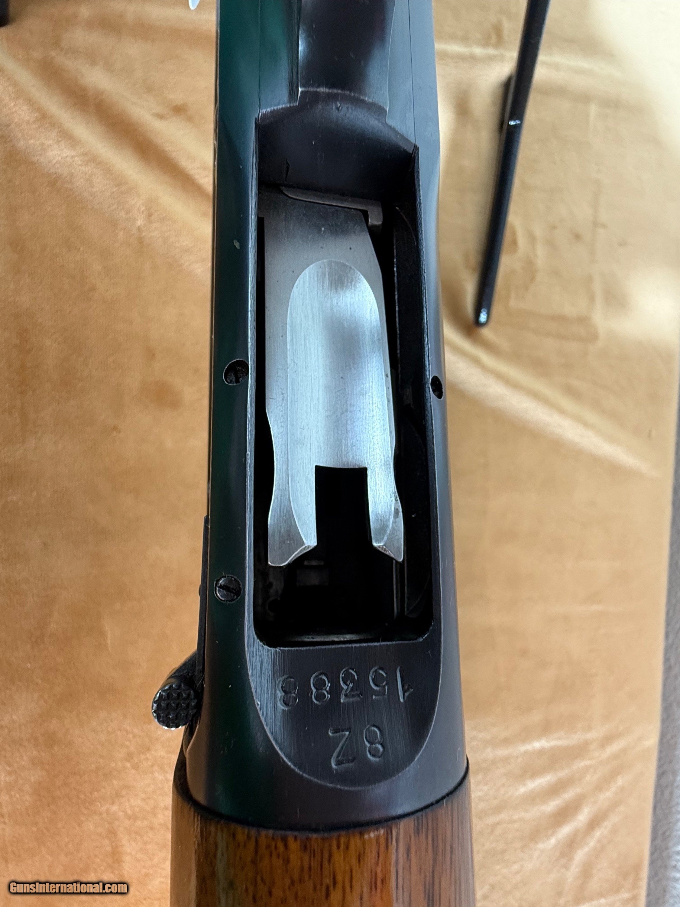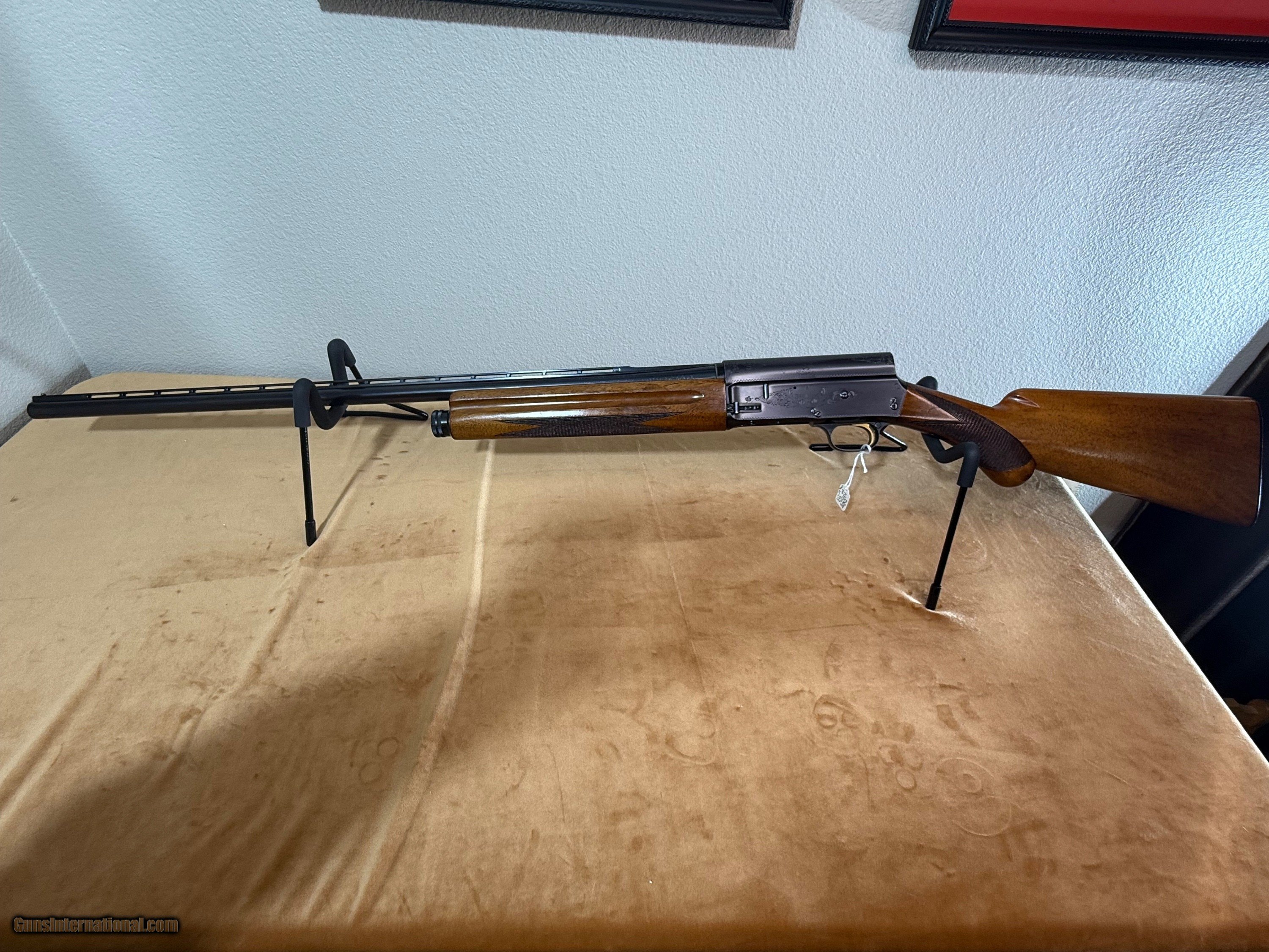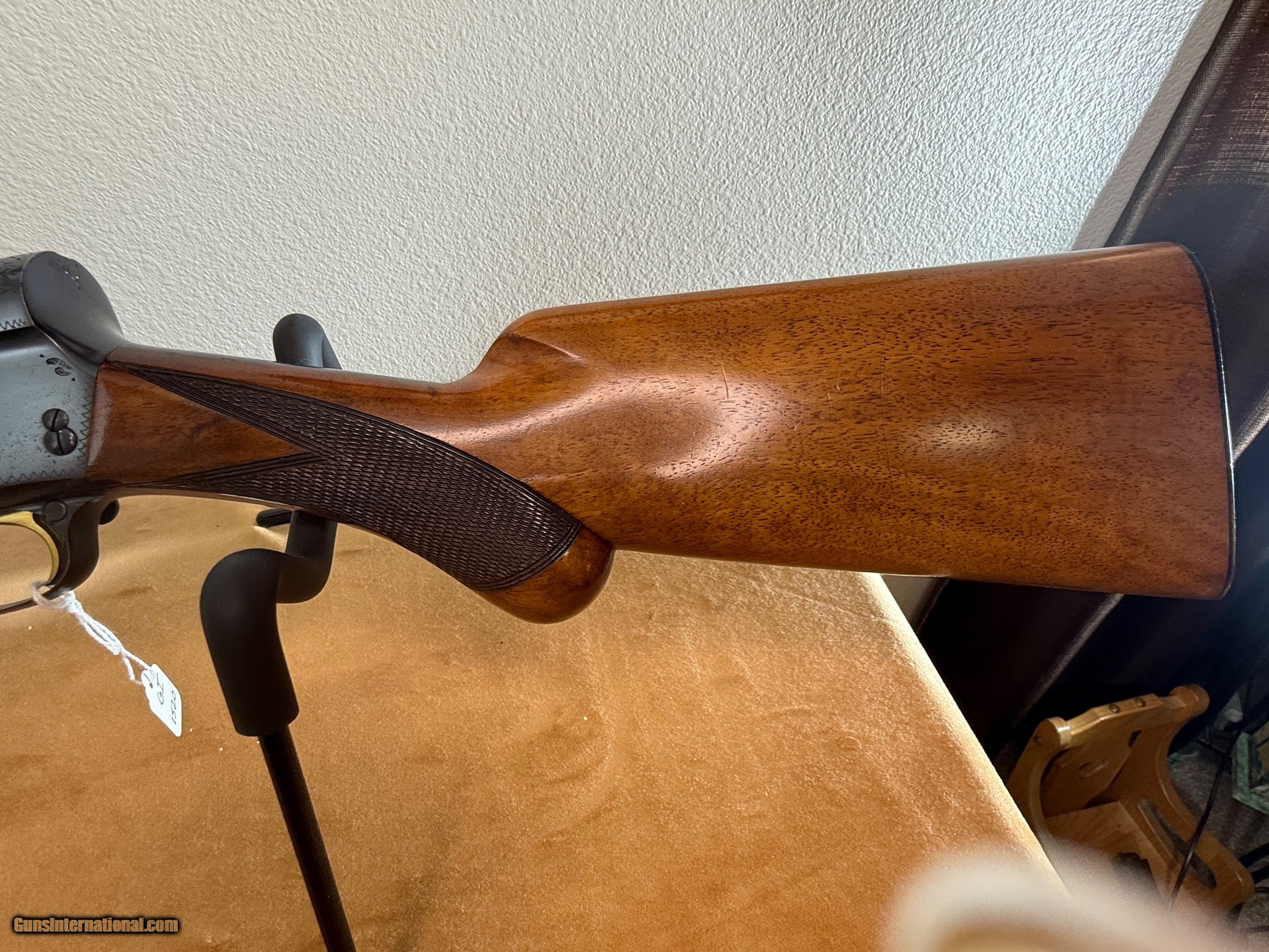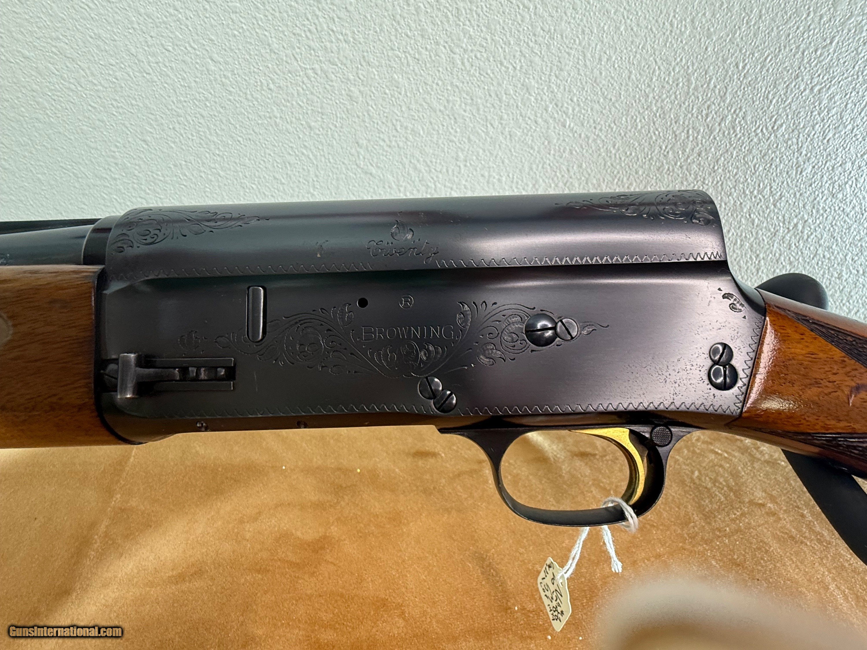 Description: Fantastic 1958 Browning A5 20ga Light. First year of production for the 20 gauge Light Auto 5 and you just don’t come across them very often in this condition. A couple of handling marks but just a beautiful piece of Automatic 5 history. Wood is excellent and crack free and bluing is very good. The FN Belgian barrel is 28” with a modified choke and fires 2 3/4” shells. The magnum 20 came out some 9 years latter and in 1958 the first one of these didn’t ship till October so you will have a REALLY hard time finding an Auto-5 Light 20, first year production in this condition again. s/n - 8Z 15388 - $2,595 - $65 shipping - payment by check, money order, GunTab, credit card - layaway offered at 1/3 down SOLD Shotgun Gauge: 20 Gauge |