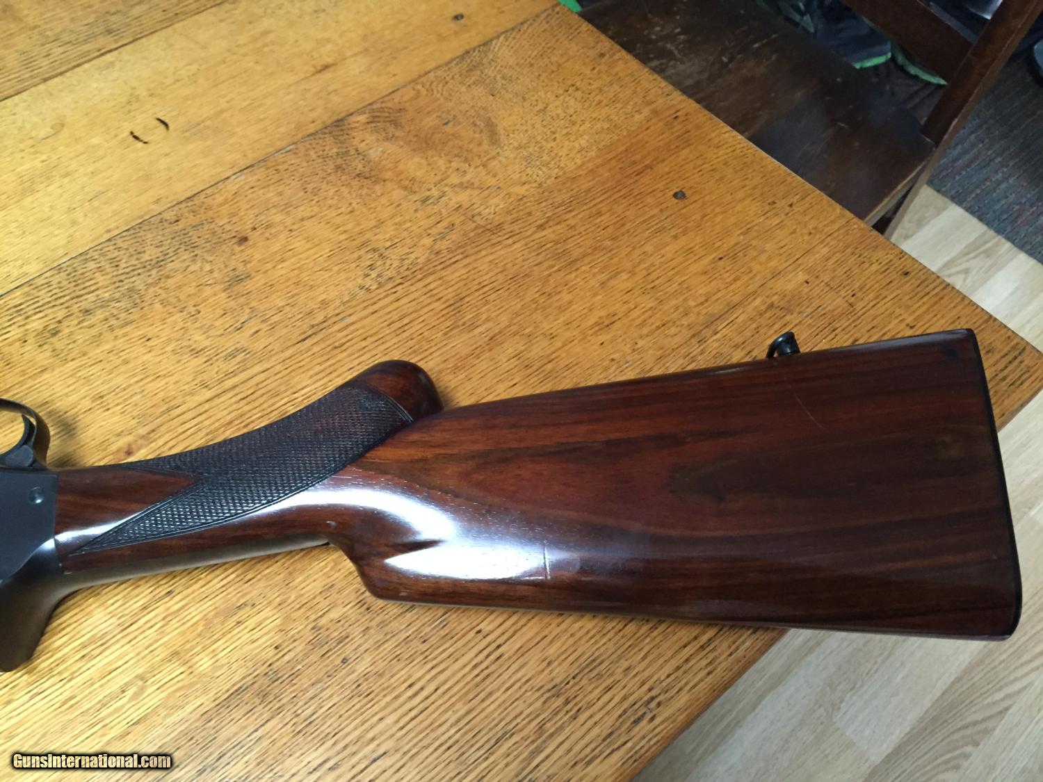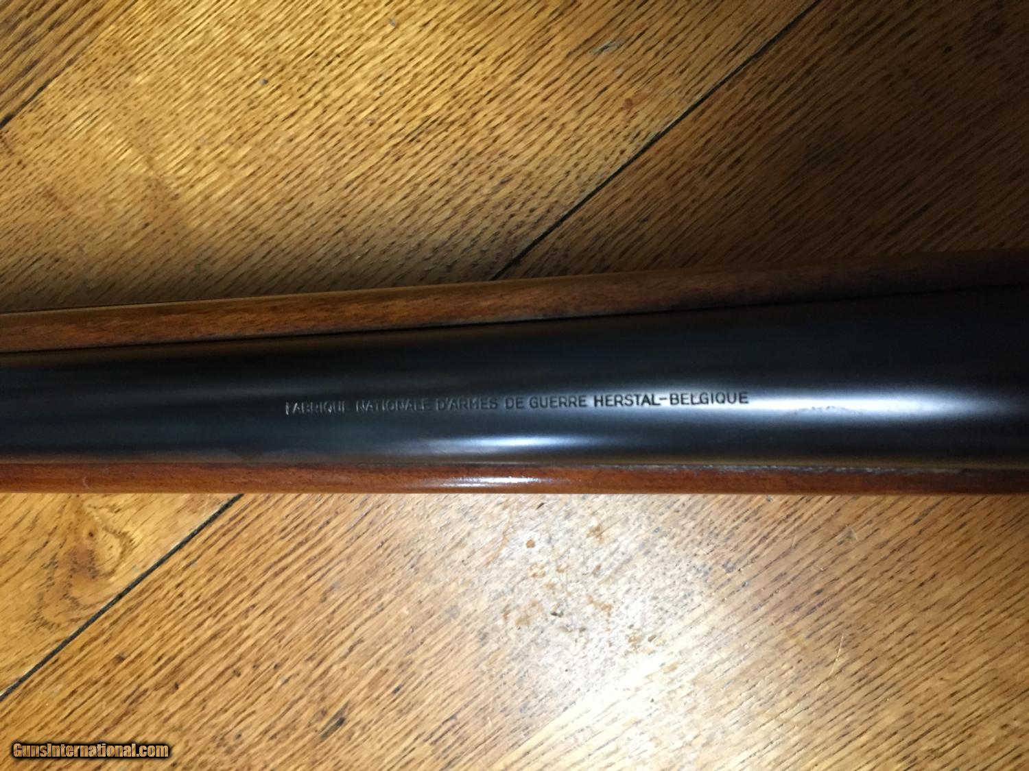 Description: Fabrique national Auto 5 12 gauge, plain barrel, 29.5" full choke, round knob, factory butt plate, stock with original sling swivels. 7 lbs 14 oz, excellent condition with no cracks or splits in wood. Very nice figured wood. 2 3/4 chamber, 14" lop, European browning A5. Gun is all original and is very good plus to Excellent, C&R ok. Shipping&Handling $35 SOLD Curio/Relic: Yes Serial Number: 367xxx |