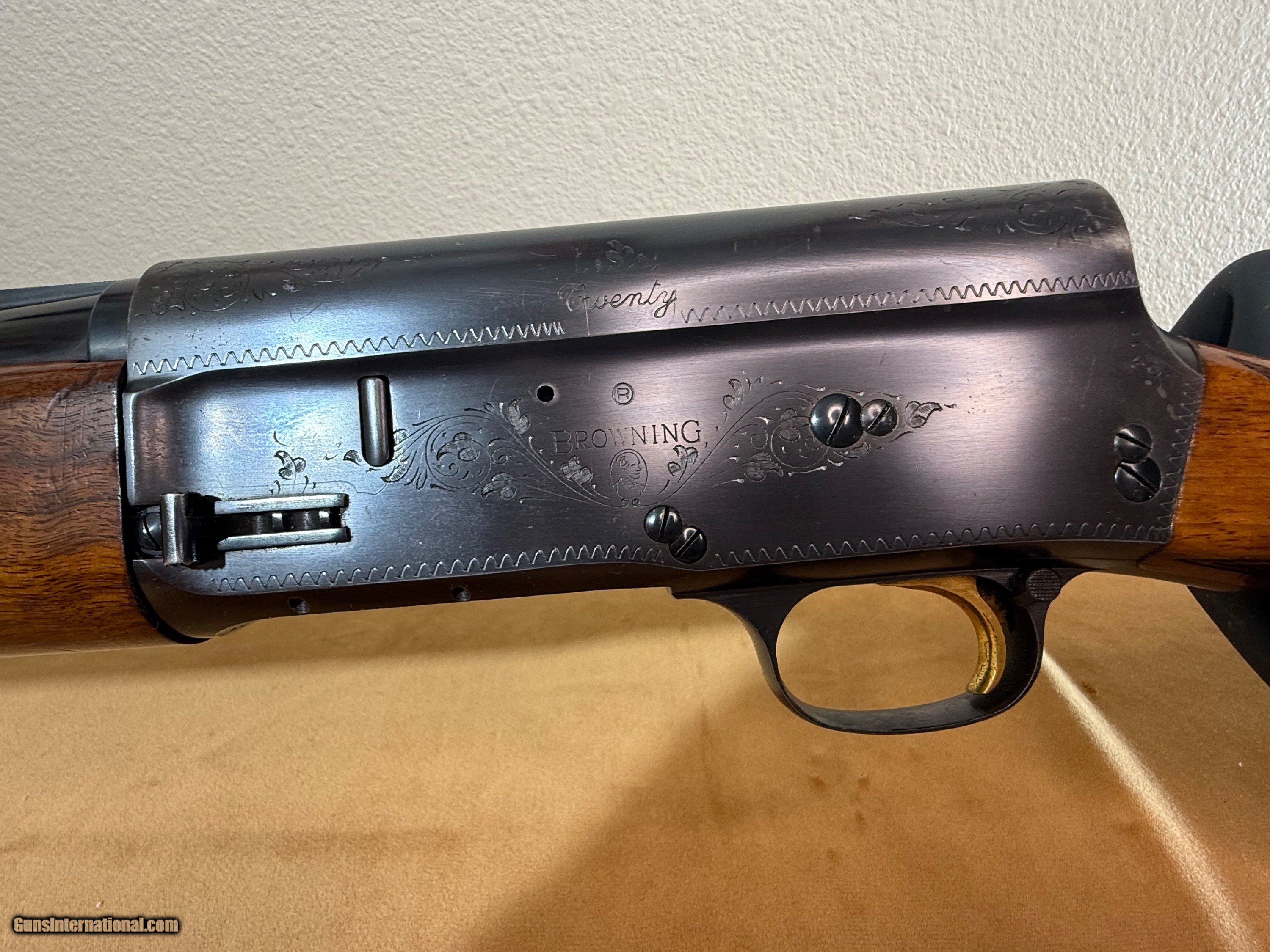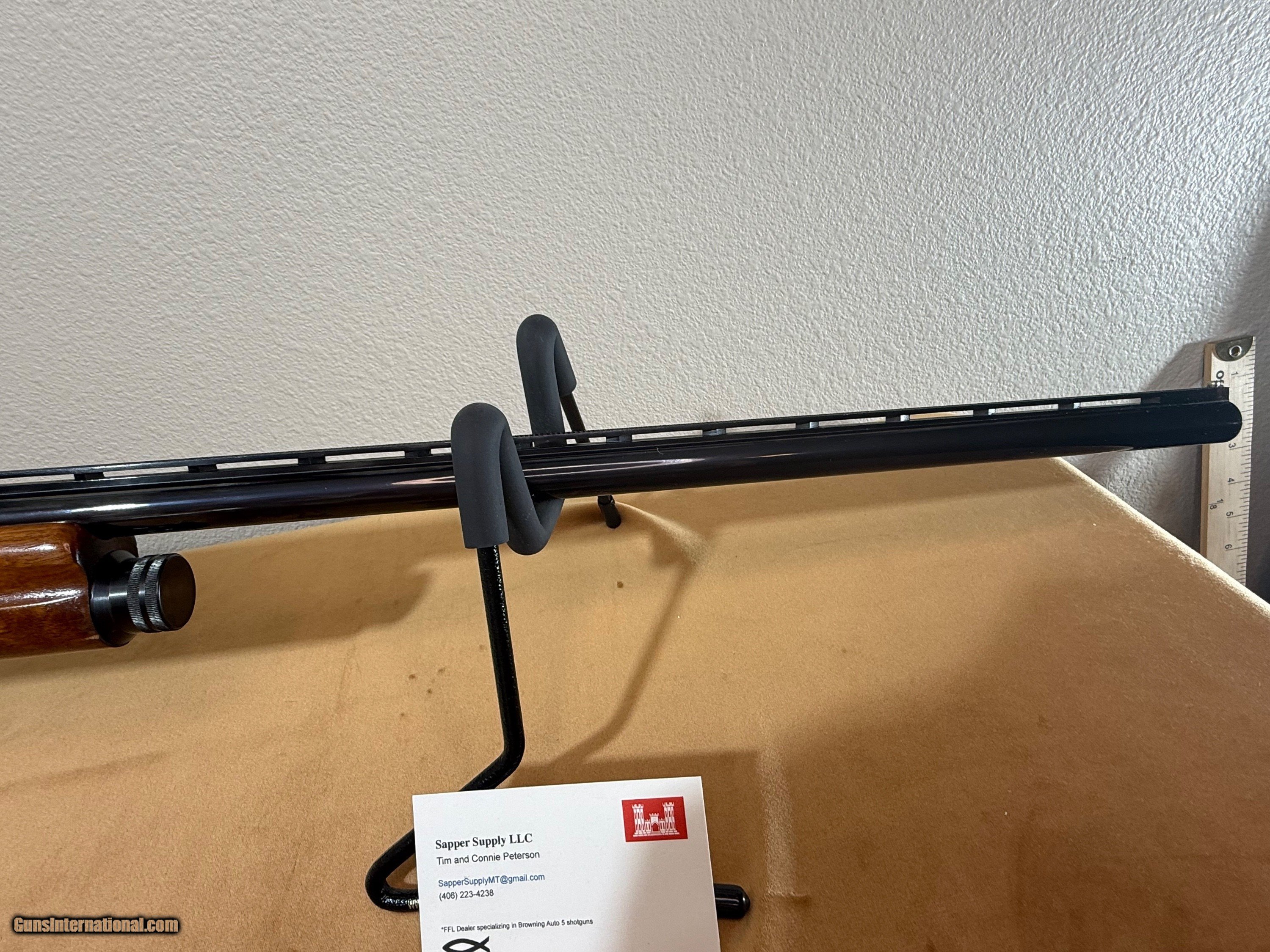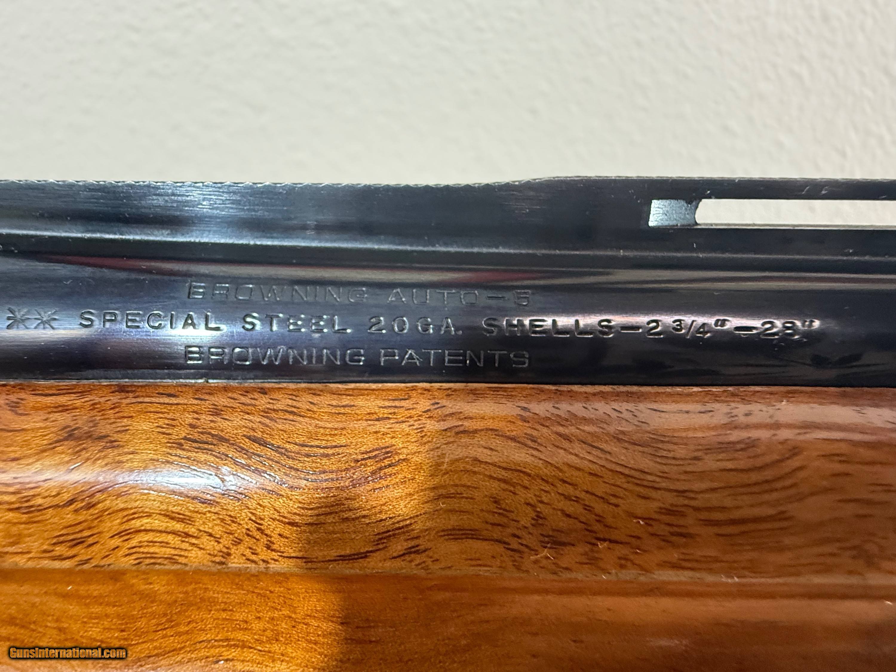 Description: FN Belgian 20 gauge 2 3/4" Browning Auto 5 with the addition of a butt pad for your shooting comfort. This Browning A5 comes with a 28" ventilated rib steel shot safe Japanese barrel. No chips or cracks - the wood and the bluing on this Automatic-5 are in good condition. We do have a 28" Belgium made non-rib barrel if you prefer that traditional look. Overall a very nice 20ga Light that is ready for a new home. s/n - 0Z 44317