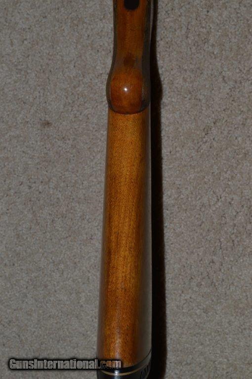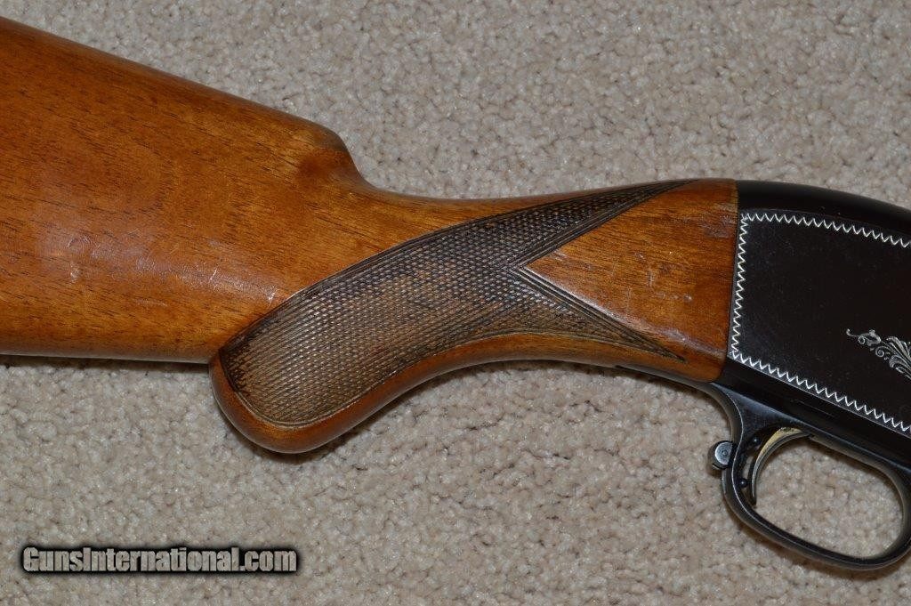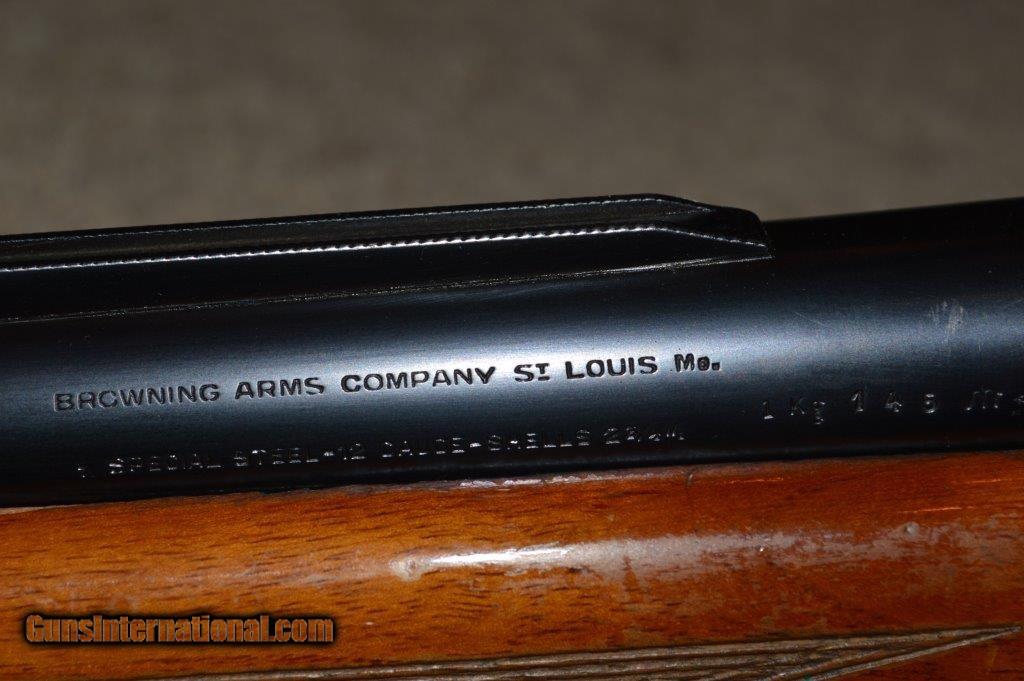 Description: The Browning semi-auto shotguns are finely made by some of the best craftsman in Europe to Browning's high standard of excellence. There were several discussions and corrections to the manufacturing process until Val Browning was satisfied with the quality being produced. This Val Browning invention is serial number A 33212 which indicates it was built in 1960. It has the tight shooting 30" full choke with the seldom seen recessed (channel) rib made for some extra distance to long or tough targets like pheasants. The channel rib barrels were actually discontinued in 1959, so they are somewhat uncommon. It weighs 7 lbs. and is all factory original and still retains a good deal of overall condition on the bluing and most of the finish on the wood. The wood has numerous light handling marks, but what looks like a crack in the bottom of the forend is only dark wood grain. It still has the original owner's manual in the brown paper pouch. The engraving was done by hand by some of the finest engravers in the world through the anodized finish and then gold filled for a nice contrast against the black receiver. The early guns, like this one, are highly desirable and wonderfully built to last. This is a great upland gun that is nicely balanced at 7 lbs., light enough to carry all day afield and hike the big mountains out west. SOLD Curio/Relic: Yes |