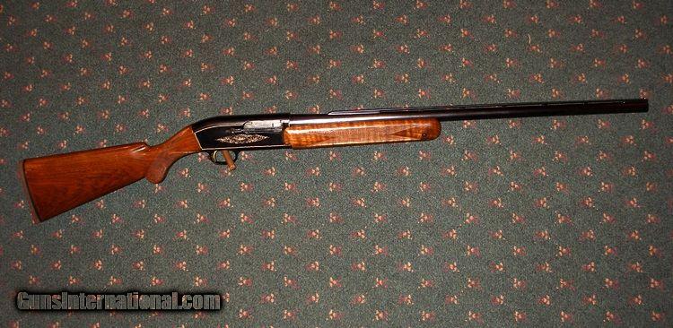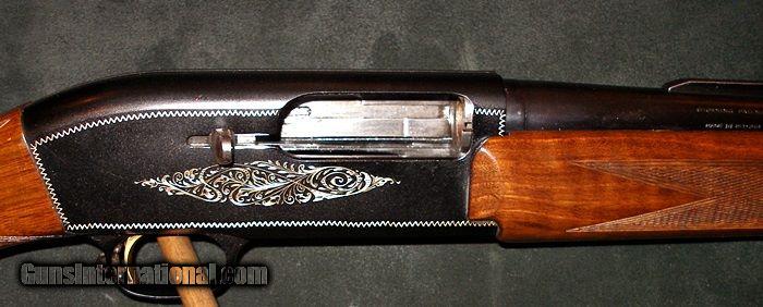 Description: BROWNING DBL AUTO JET BLACK TWENTYWEIGHT 12GA SEMI AUTO SHOTGUN, 1963 MFG DATE, GOLD ACCENTS WITH SCROLL ON ACTION, 26 1/2" BBL, 2 3/4, RARE IC CHOKES, VENT RIB, EJECTORS, SINGLE TRIGGER, NICELY FIGURED MEDIUM DARK WALNUT, PISTOL GRIP, FIELD FOREND, LOP 14 1/2 WITH 1/2" PAD, 1 1/2, 2 3/8, 6LBS 10OZ, ORIGINAL ACTION 98%, WOOD 97%, LIGHT HANDLING MARKS, BLUE HAS LIGHT FRECKING, SOLD Manufacturer: BROWNING Model: DBL AUTO JET BALCK TWENTY WEIGHT Chambers: 2 3/4 Ejectors: YES Condition: ORIGINAL ACTION 98% Wood Condition: 97%, LIGHT HANDLING ARKS Barrels: 26 1/2 Action: SEMI AUTO Triggers: SINGLE Gauge Info: 12GA Stock: NICELY FIGURED MEDIUM DARK WALNUT, PISTOL GRIP Fore End: FIELD FOREND LOP: LOP 14 1/2 W/1/2 PAD, 1 1/2, 2 3/8 Rib: VENT Weight: 6LBS 10OZ Manufacture Date: 1963 MFG DATE Chokes: RARE IC CHOKE Engraving: GOLD ACCENTS WITH SCROLL Item Location: SAFARI OUTFITTERS LTD, SALT POINT, NY 12578 |