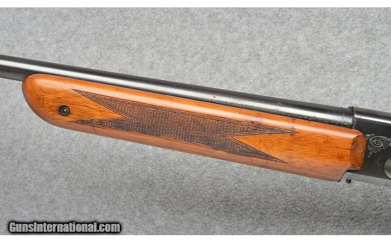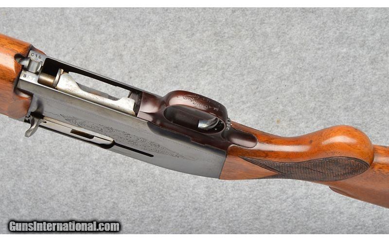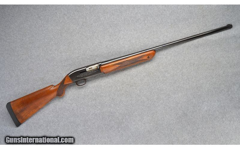 Description: Early production 2-shot semi-auto with steel receiver. Scattered handling marks and scratches throughout, metal showing areas of freckling. Appears functional with a good bore. 12 Gauge SOLD Chambers: 2 3/4 Inch Metal Condition: Blued Steel Wood Condition: Walnut Bore Condition: Bright Barrels: 29.5 Inch Stock Dimensions: 15" LOP over added recoil pad Butt Pad: Kick-Ezz Recoil Pad Weight: 8 Lbs. 2 Oz. Sights: Metal bead front Chokes: Full Item Location: Buda, TX |