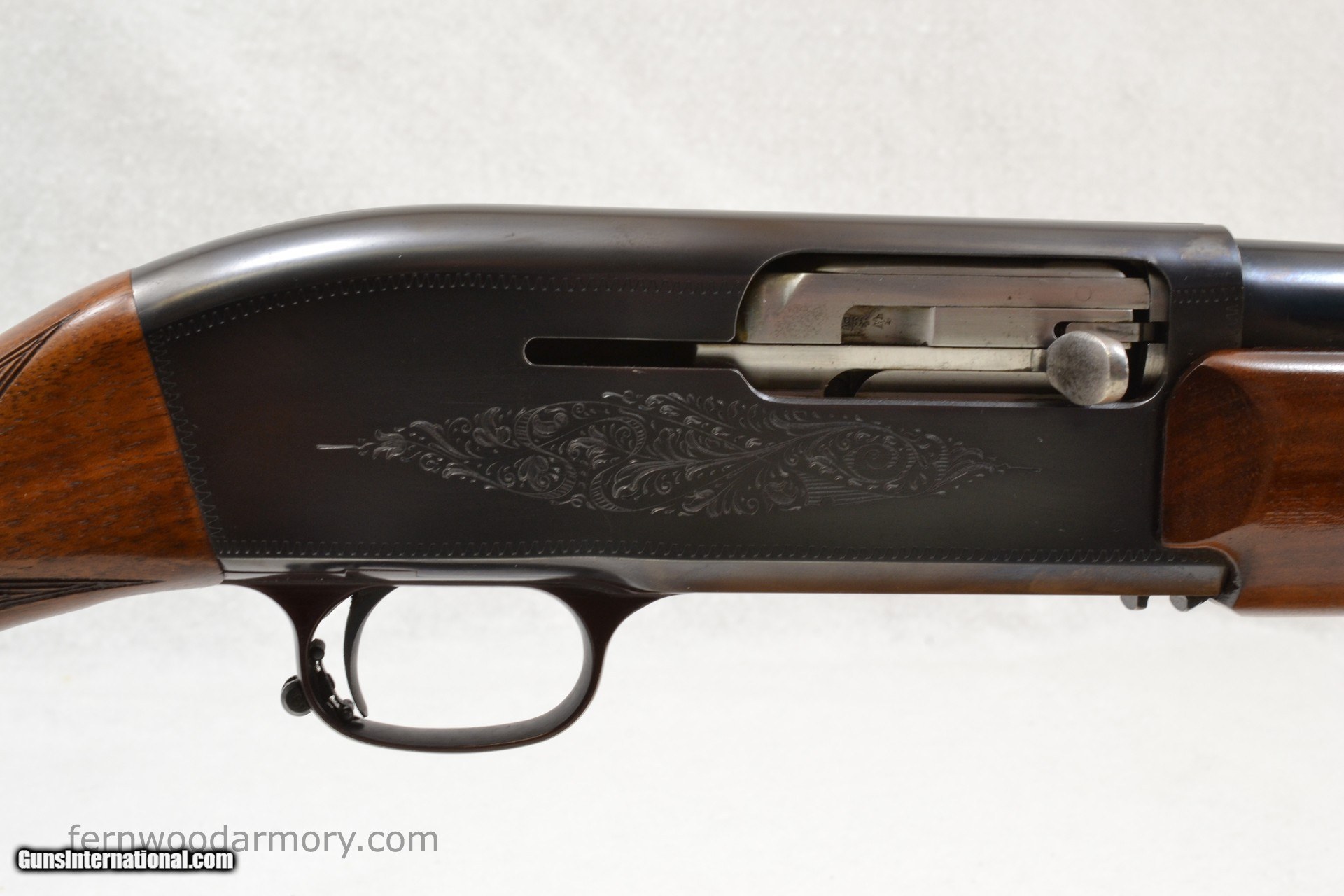 Description: Browning Double Auto semi-auto shotgun, made in Belgium. This Double Automatic has a blued steel receiver and 27 1/2" vent rib barrel with fixed modified choke. Serial number C1569 dates to the early 1950s. This is the standard (not lightweight) version, and weighs 7 lbs 10 oz. This shotgun is in excellent used condition. No pitting, scratches or dings on the metal. Bore is bright and shiny. The checkered wood stock and forearm are also excellent, with just a few light scratches and minor handling marks. The buttplate, original, shows some wear with a small chip on the right side. This gun has seen very little use. We have test fired it and it functions perfectly. Free Shipping to FFL. C & R Eligible. See additional terms below. TERMS: We are an FFL dealer. Guns listed for sale on Guns International are also for sale in our online store. We may remove the listing here at any time. No Credit Card Fees Firearms ship to FFL dealers, and/or C & R license holders if applicable. Free ground shipping for lower 48 states. Contact us for quotes to Alaska and Hawaii. All firearms ship insured for full value with signature required. Return policy for used guns: 3 day inspection, starting when firearm arrives at FFL. Buyer is responsible for return shipping, insurance required. $35 restock fee. Questions: email us or call 888-319-4811 Mon-Fri 9-5 Eastern SOLD Curio/Relic: Yes Shotgun Gauge: 12 Gauge Manufacturer: Browning Model: Double Auto Chambers: 2 3/4 Metal Condition: Excellent Wood Condition: Excellent Bore Condition: Excellent Action: Semi-Auto Butt Pad: Factory Original LOP: 14 1/4 Rib: Vent Weight: 7 lbs 10oz Sights: Front bead Chokes: Fixed Modified |