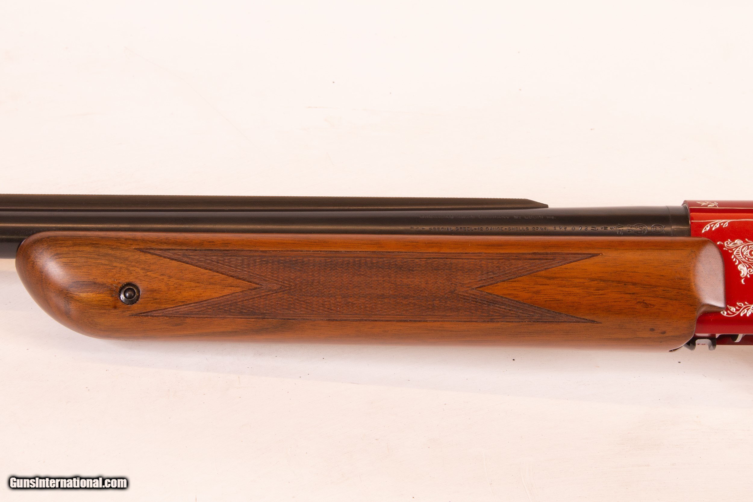 Description: MADE IN BELGIUM. BARREL IS 26'' WITH A CHANNEL RIB AND CHOKED I.C. FULL RESTORATION AND ENGRAVED BY RAY COVER. PLEASE ADD $40 FOR SHIPPING. SOLD Manufacturer: BROWNING Model: DOUBLE AUTOMATIC Condition: EXCELLENT Metal Condition: EXCELLENT Wood Condition: EXCELLENT Bore Condition: EXCELLENT Action: SEMI Triggers: SINGLE/GOLD Stock Comb: 1 1/2 '' Stock Heel: 2 1/2'' LOP: 14 1/4 Weight: 7 LBS Extras: NONE |