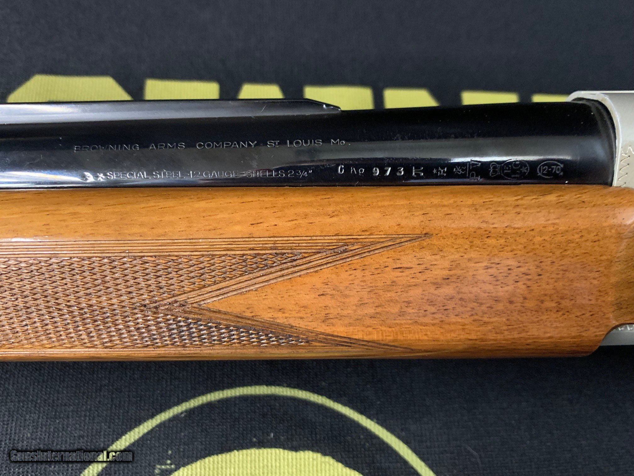 Description: Browning Double Automatic. Velvet Gray. Lightweight. Chambered in 12 gauge. Manafactured in 1960. 28" modified choke vent rib barrel. Round knob. This double automatic is a very nice collection piece and would make a great addition to your collection. For more information about this shotgun or for purchasing ((( PLEASE GIVE US A CALL AT ))) 1-(479)-968-4106. PRICE - $1,750 + Shipping SOLD Shotgun Gauge: 12 Gauge Manufacturer: BROWNING Model: Double Automatic Serial Number: A9160 Barrel Length: 28 Chambers: 2 (3/4) Condition: 95% PLUS Action: SEMI AUTOMATIC Rib: VENT RIB Manufacture Date: 1960 Chokes: MODIFIED |