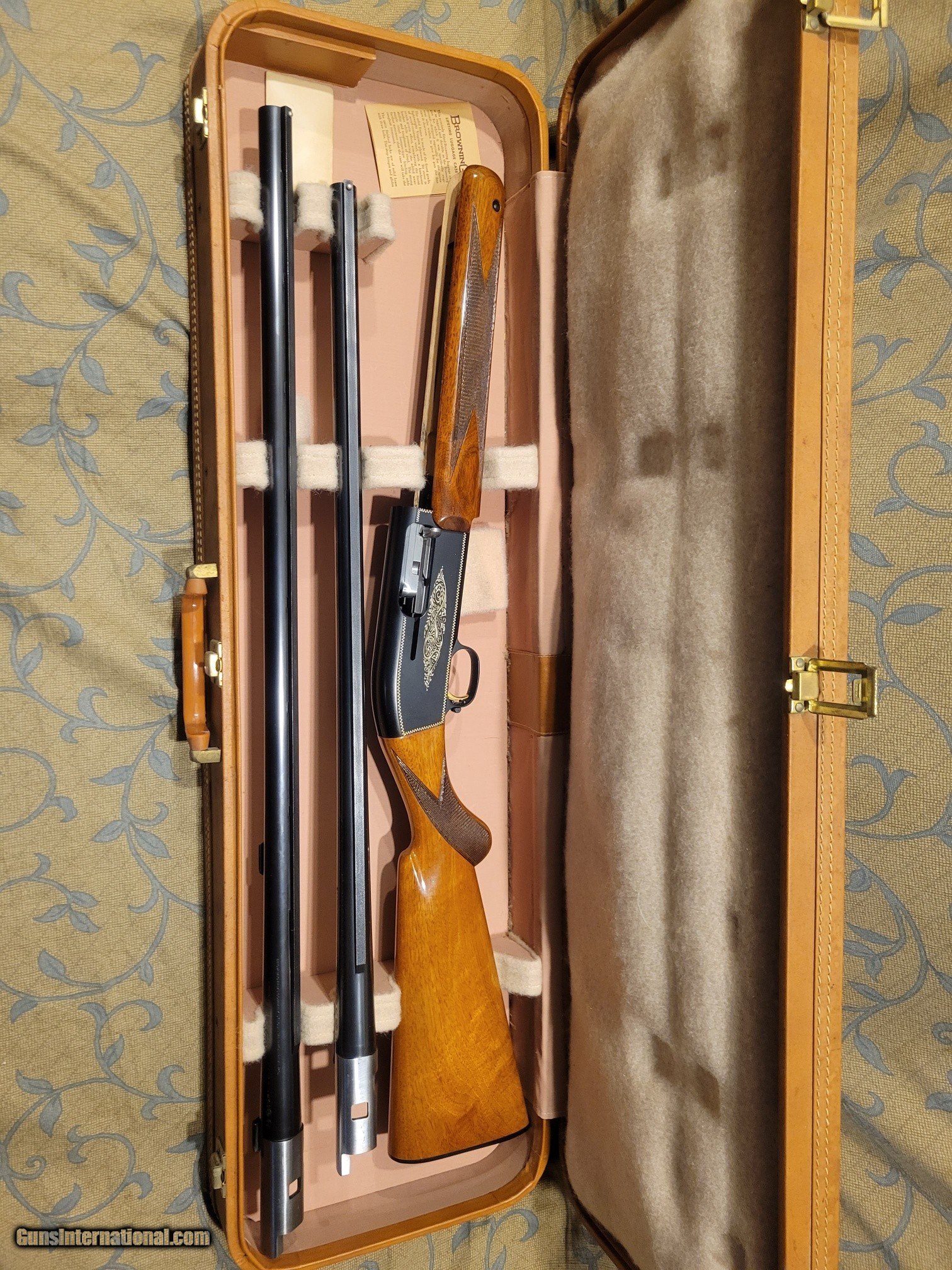Description: Browning Twelvette Black Dragon finish serial number 3A43 and 949. This is a two bbl set. This gun comes in a Browning leather case. Both barrels have vent rib's. Thirty inch bbl is full and twenty six inch is skeet. The skeet bbl originally I would say was a modified but was sent back to Browning and made into a skeet. The markings on this bbl are S-and two asterics Browning from the factory would have had the S after the asterics. This is one of the best I have ever seen even with markings on skeet bbl collector quality all day. I have shot a box of shells maybe no hunting marks at all trigger has just about all of the gold blue and wood ninety eight plus. In Ct people that know me would say a typical gun from Steve Atwood. I always preferred guns at the high mark condition wise,when you go to sell them they can't beat you up. A great gun for a Browning collector a young guy like I used to be. As I have said before this type of Browning quality reminds me of the late Rod Fuller god he had great stuff back in the days of the gun list. Enough said prefer phone to E-Mail 860-637-7240 price $1550.00 if you find a better one let me know! SOLD |