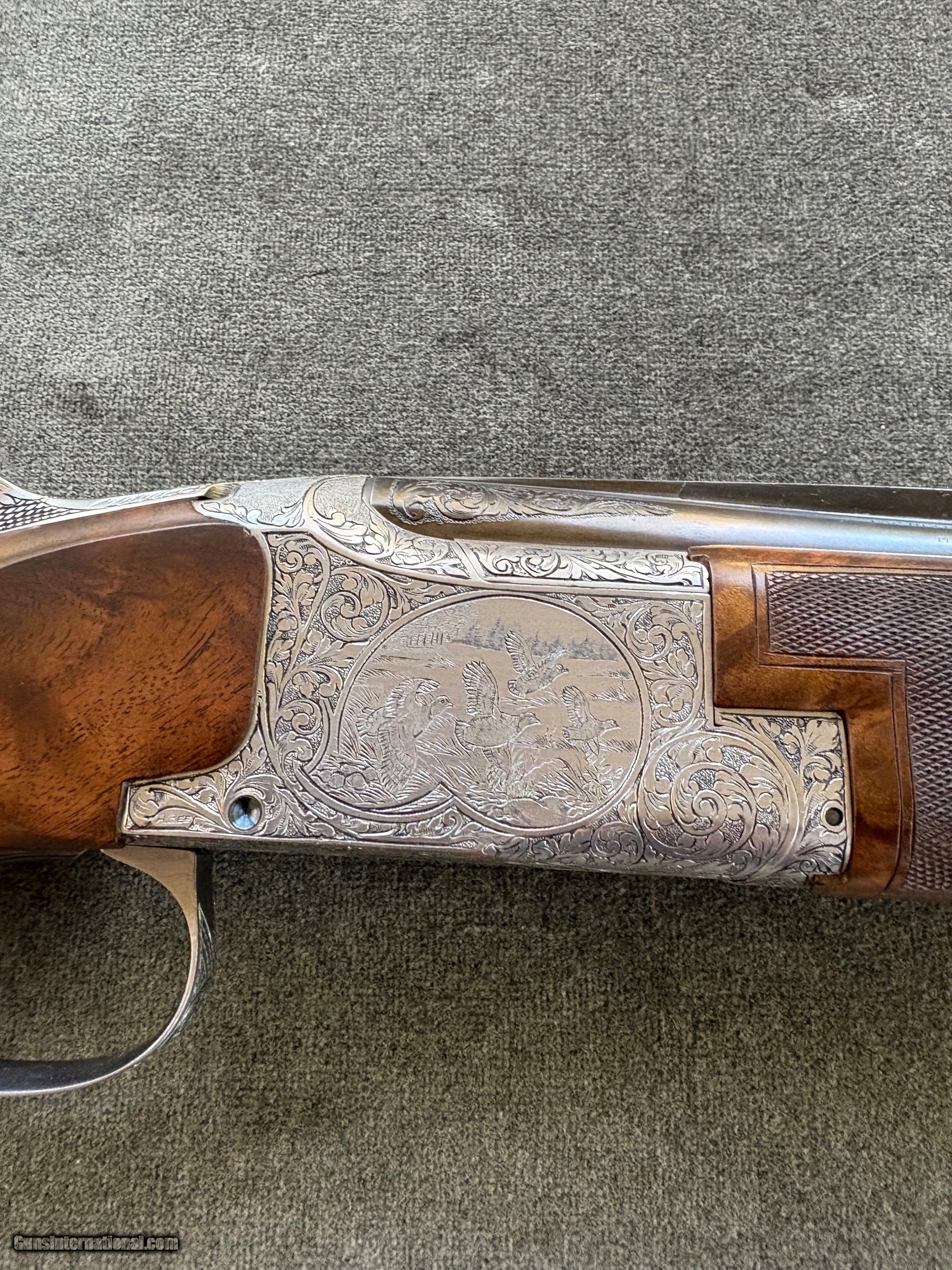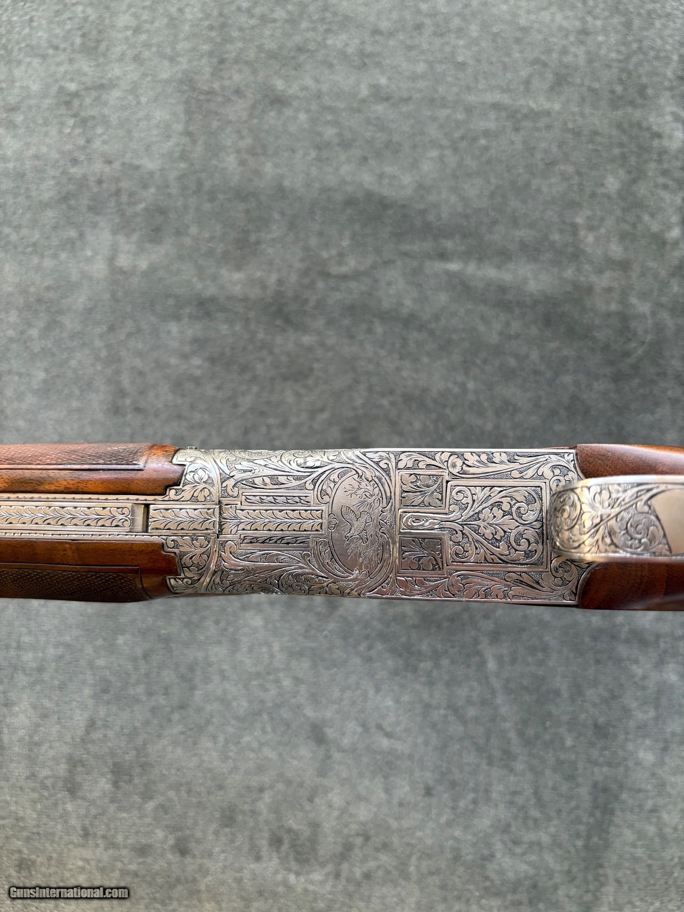 Offered for sale is a 1961 Browning Superposed custom engraved Midas engraved by Angelo Bee, Browning master engraver. Guns serial number is 21142 and has 26-1/2 inch barrels, choked Mod/I/C.