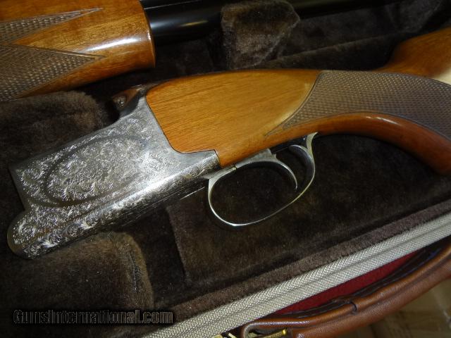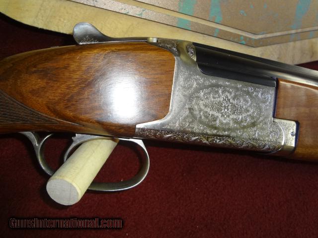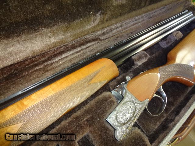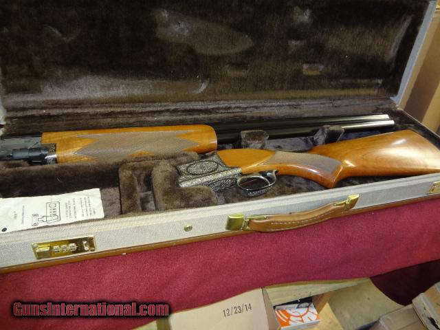Description: Browning over/under shotgun. This is a seldom encountered Model B-27 in the Deluxe grade with a Browning Hard Case. These guns were made in 1980, and this one is new unfired. Barrels are 28" long and choked mod over imp cyl. Coin finish receiver in 100% new condition. These were made in Belgium and would be a nice addition to any Browning Collection SOLD |