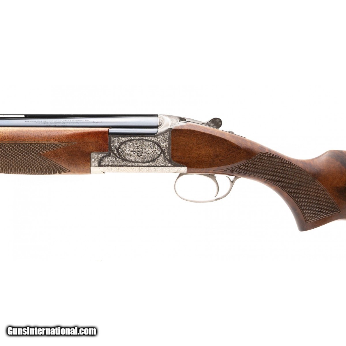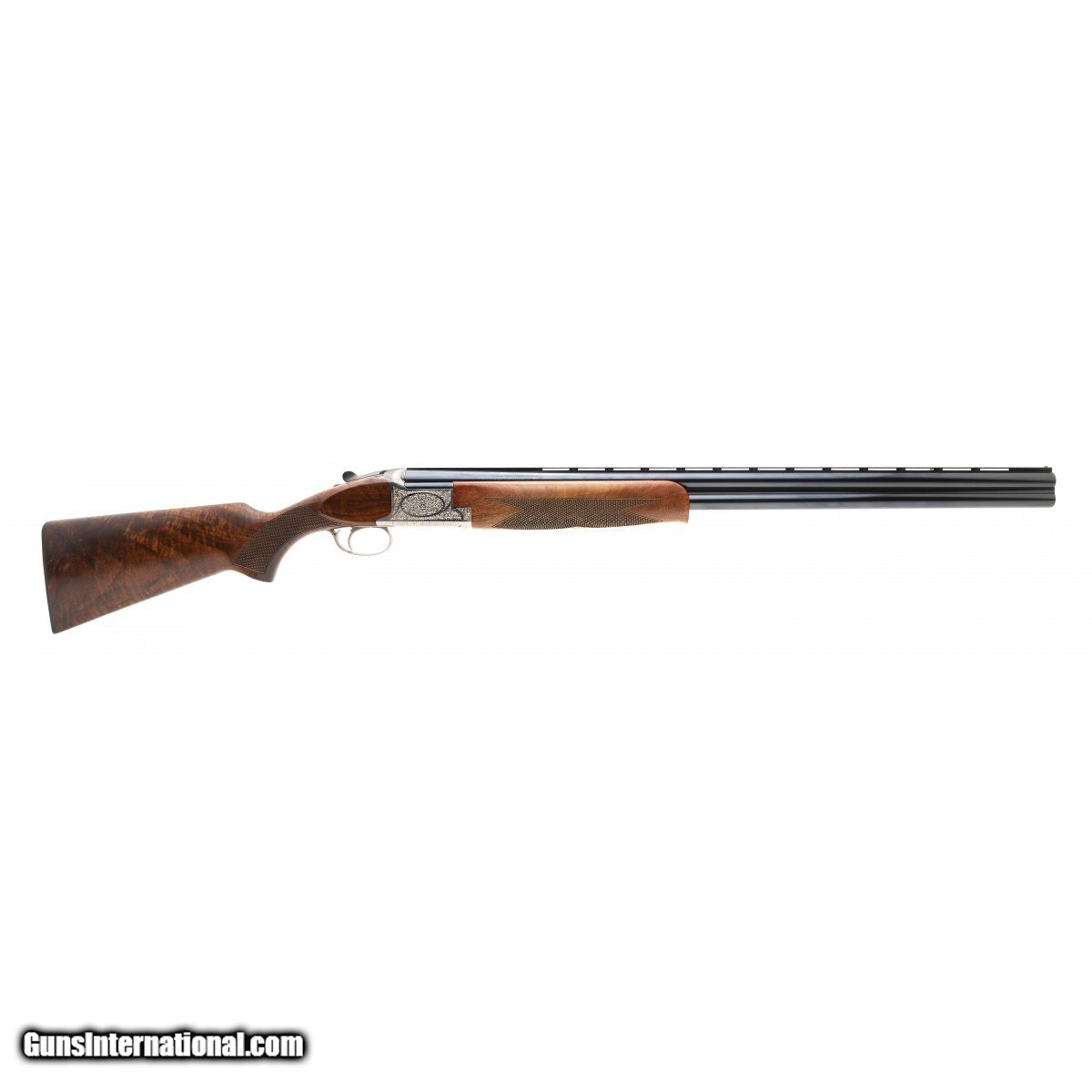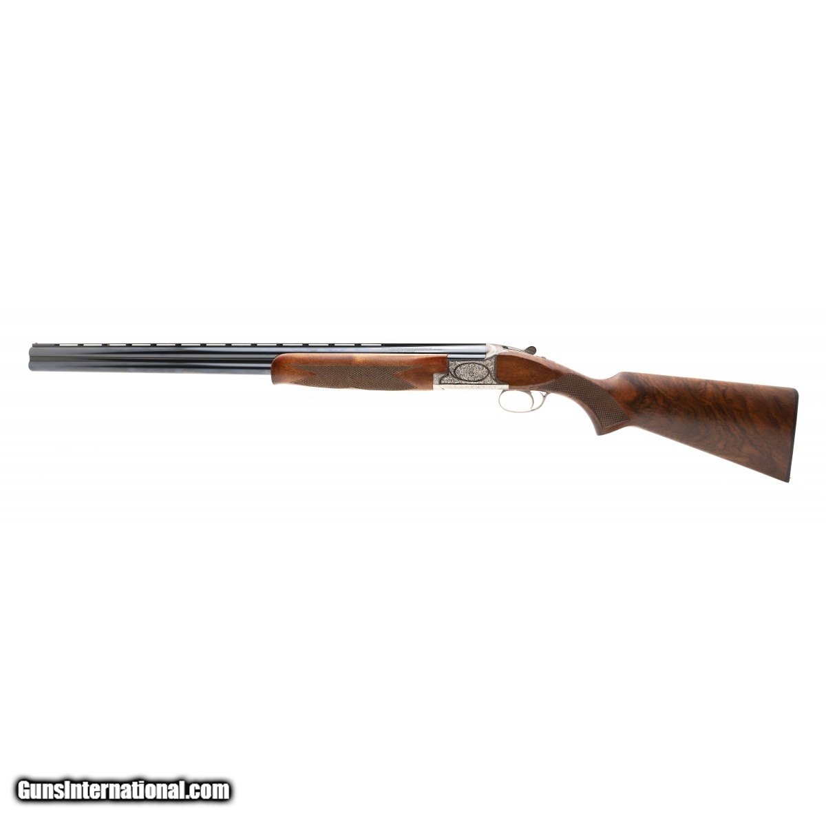 Description: " Deluxe Belgian made Over/Under 28"" barrels choked Full/ Mod. Has engraved silver receiver. The stock and forend are in very good plus condition. Overall condition is excellent. SOLD |