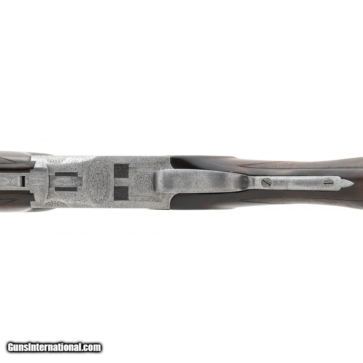 Belgian-made field shotgun with engraved silver receiver with 26.5""barrels choked Skeet/Imp Cyl, made in 1958. The barrels have been refinished at some point and has all of its blue. The receiver is intricate engravings with wild game motif. The stock and forend are in excellent condition with the original buttplate. Overall very good plus condition.
