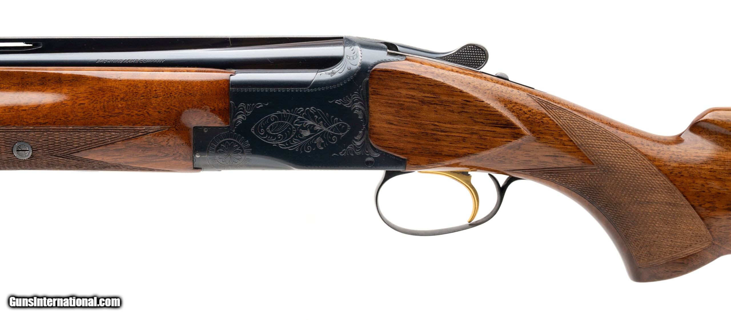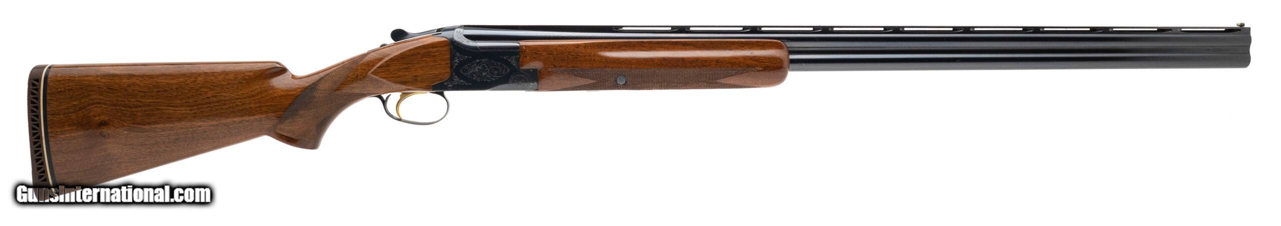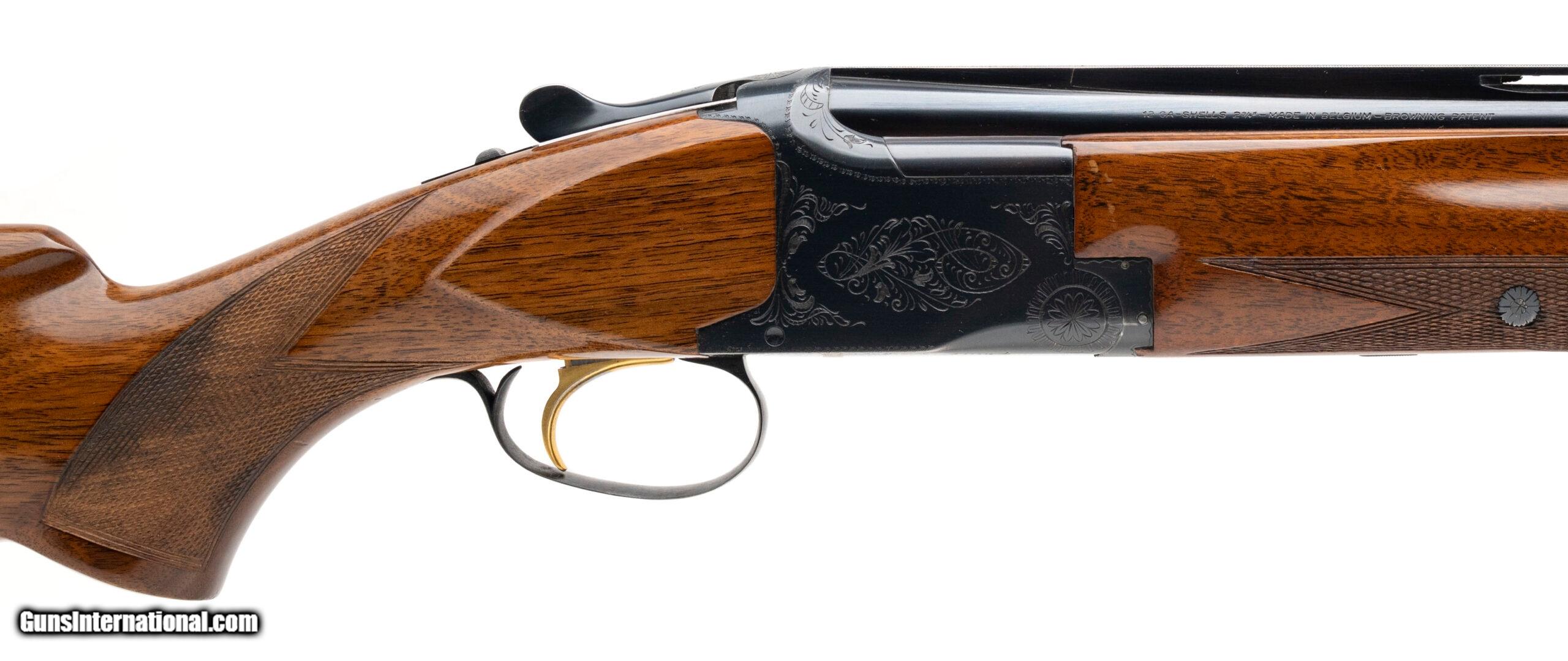 Description: "Sn: 61625S6 made in Belgium in 1966. 12 gauge over under shotgun with 32" vented “Broadway" rib barrels with a white middle and front bead. 2 ¾" chambers and fixed chokes Modified & Full. Box lock with a gold plated selective single trigger, ejectors and a manual safety. 14" LOP to a Pachmayr white line recoil pad with a drop of 1 ½" to 1 5/8". Bores are excellent and finish is overall in very good condition with only some light handling marks. Barrels lock up tight on face with the top lever resting right of center. SOLD |