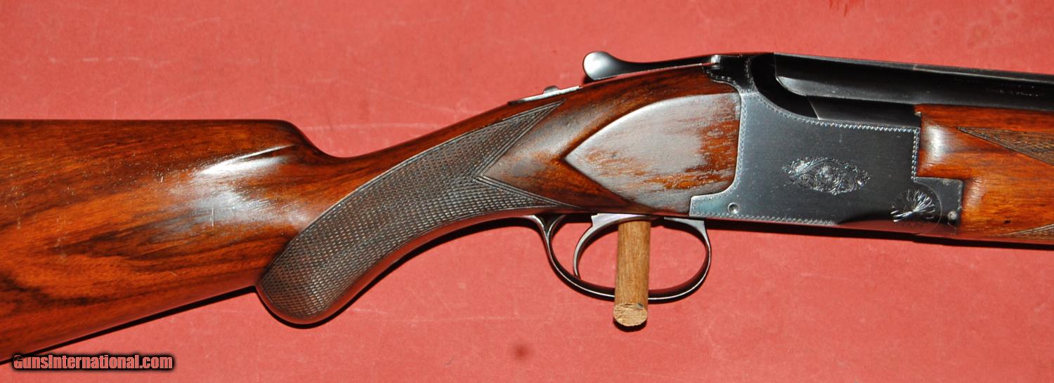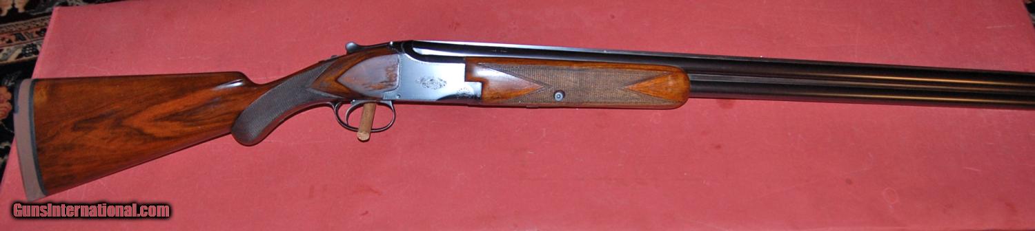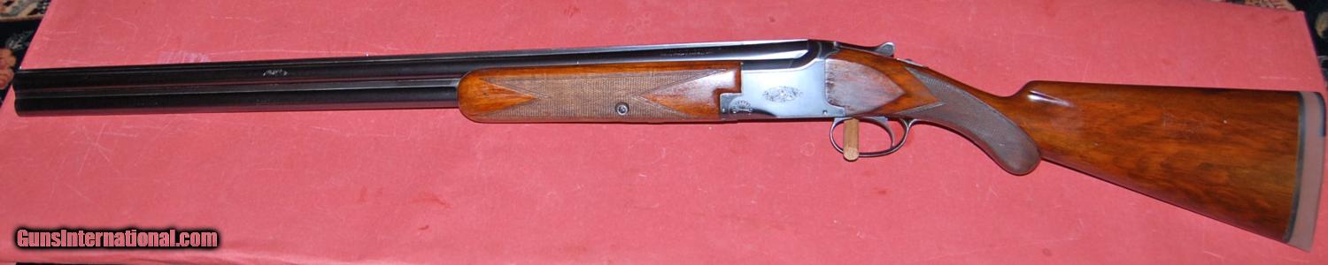 Description: Belgian Browning 12ga grade one superposed.Built in 1949,this gun has 28" solid ribbed barrels choked modified (.016") and full (.036").The bores are bright and clean and free of rust,dents,or pits.The barrels are tight and on face.The gun retains 95% of the original blue.The stock and forend are outstanding dark wood and are free of cracks or gouges.The LOP is 14" over a Pachmayr sporting clays pad.The gun weighs 7-4.The barrels are marked "Val Browning Patents".This is a great superposed for doves,pheasants,or ducks.It would also make a great live pigeon gun or an unusual addition to a Browning collection.C&R eligible. SOLD Curio/Relic: Yes Manufacturer: Browning Model: grade one superposed Serial Number: 18044 Chambers: 23/4 Triggers: selective single LOP: 14 Manufacture Date: 1949 Chokes: mod and full |