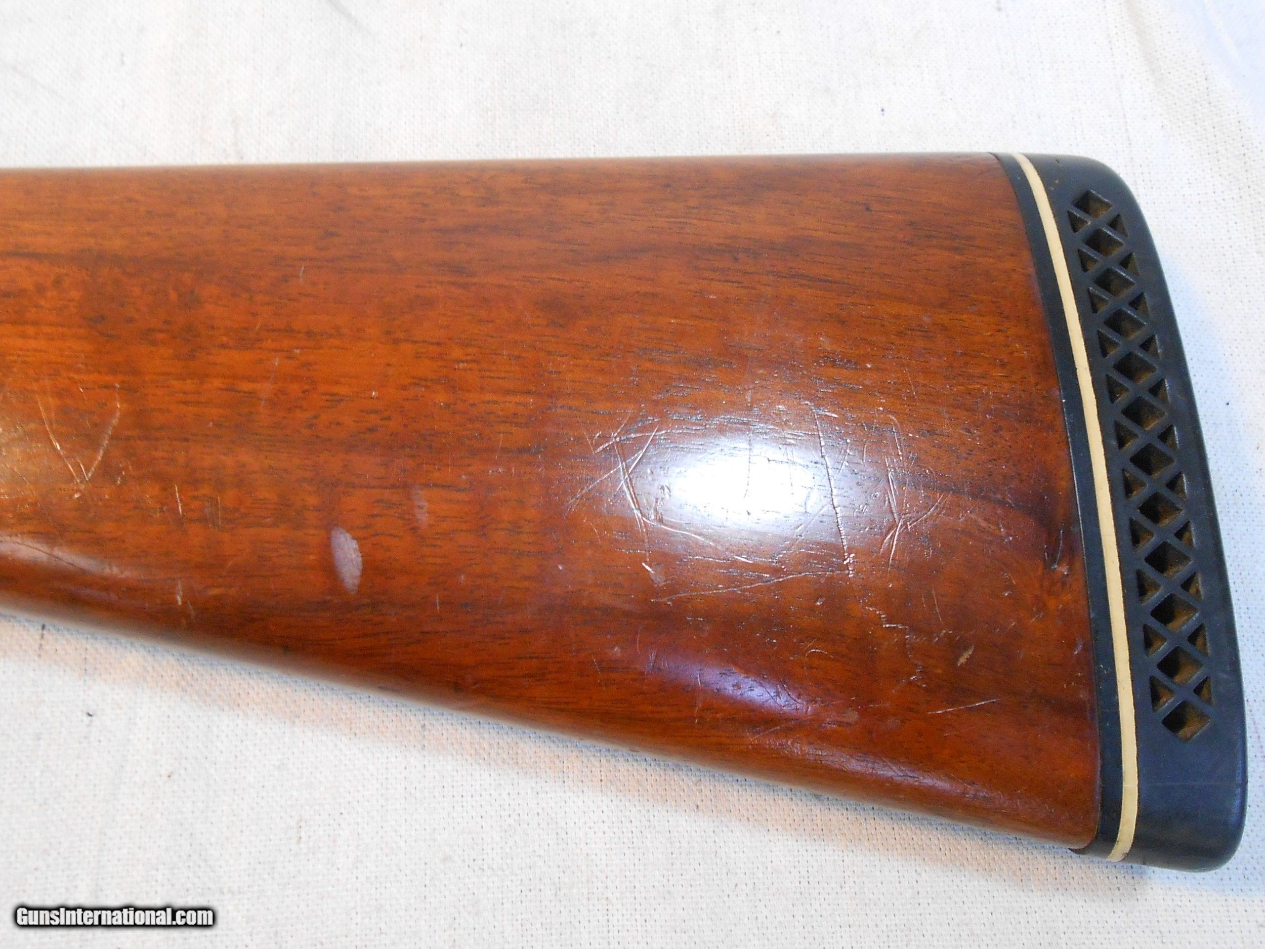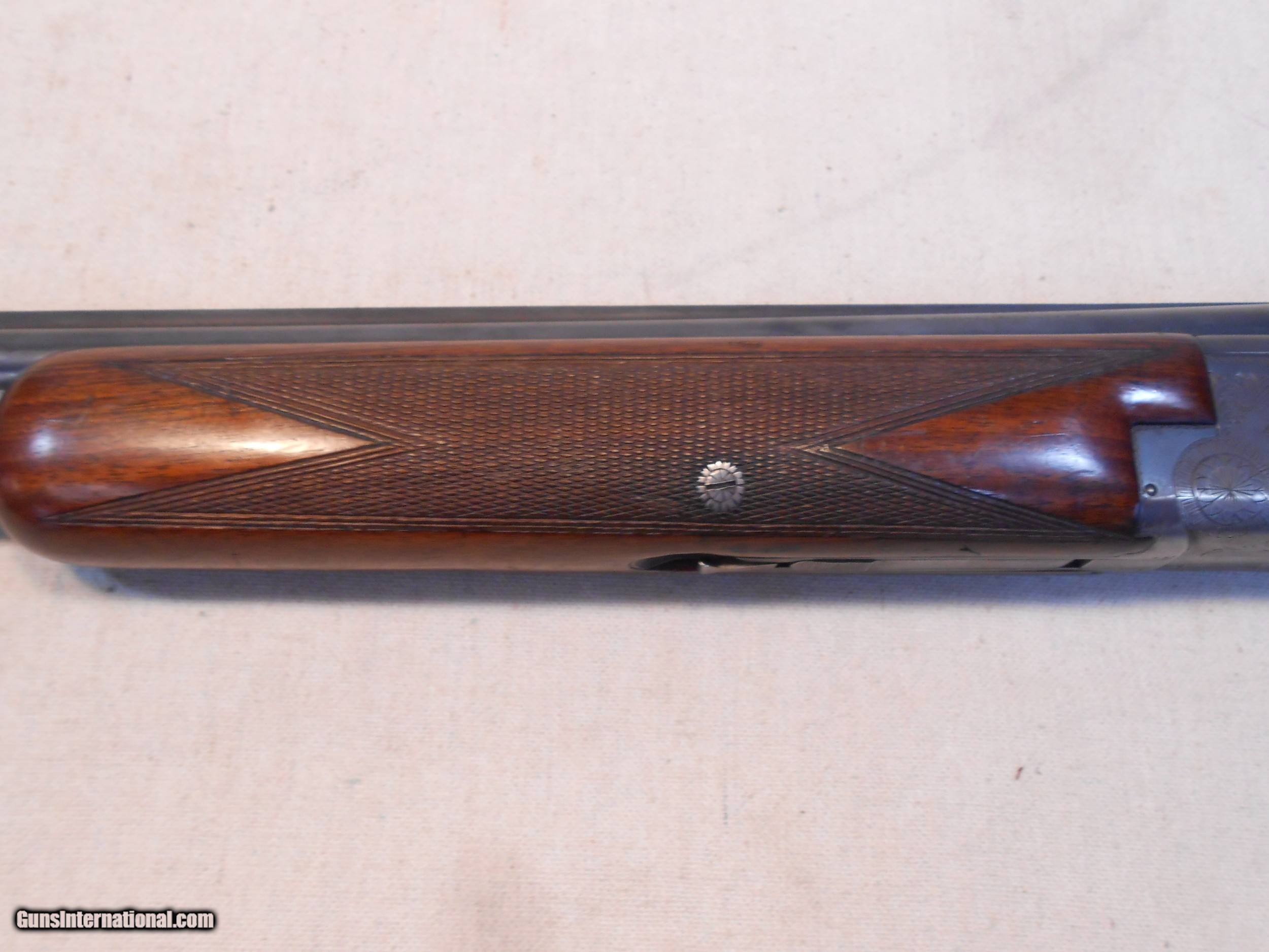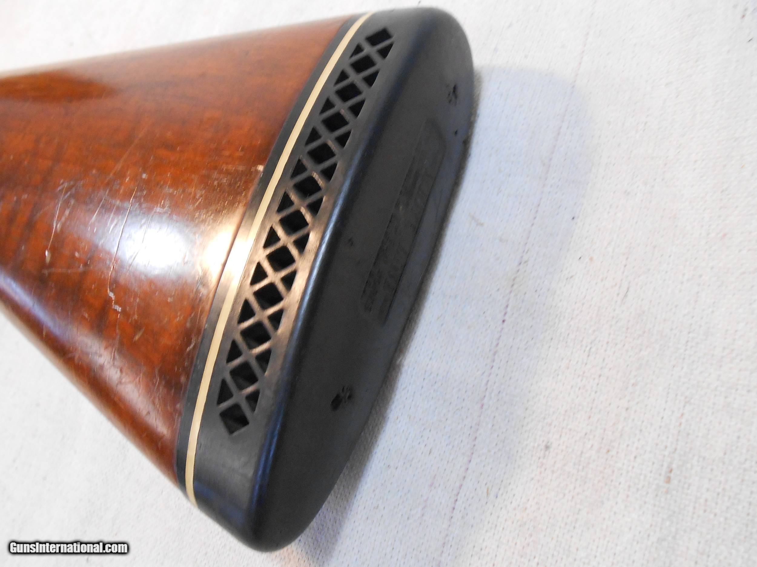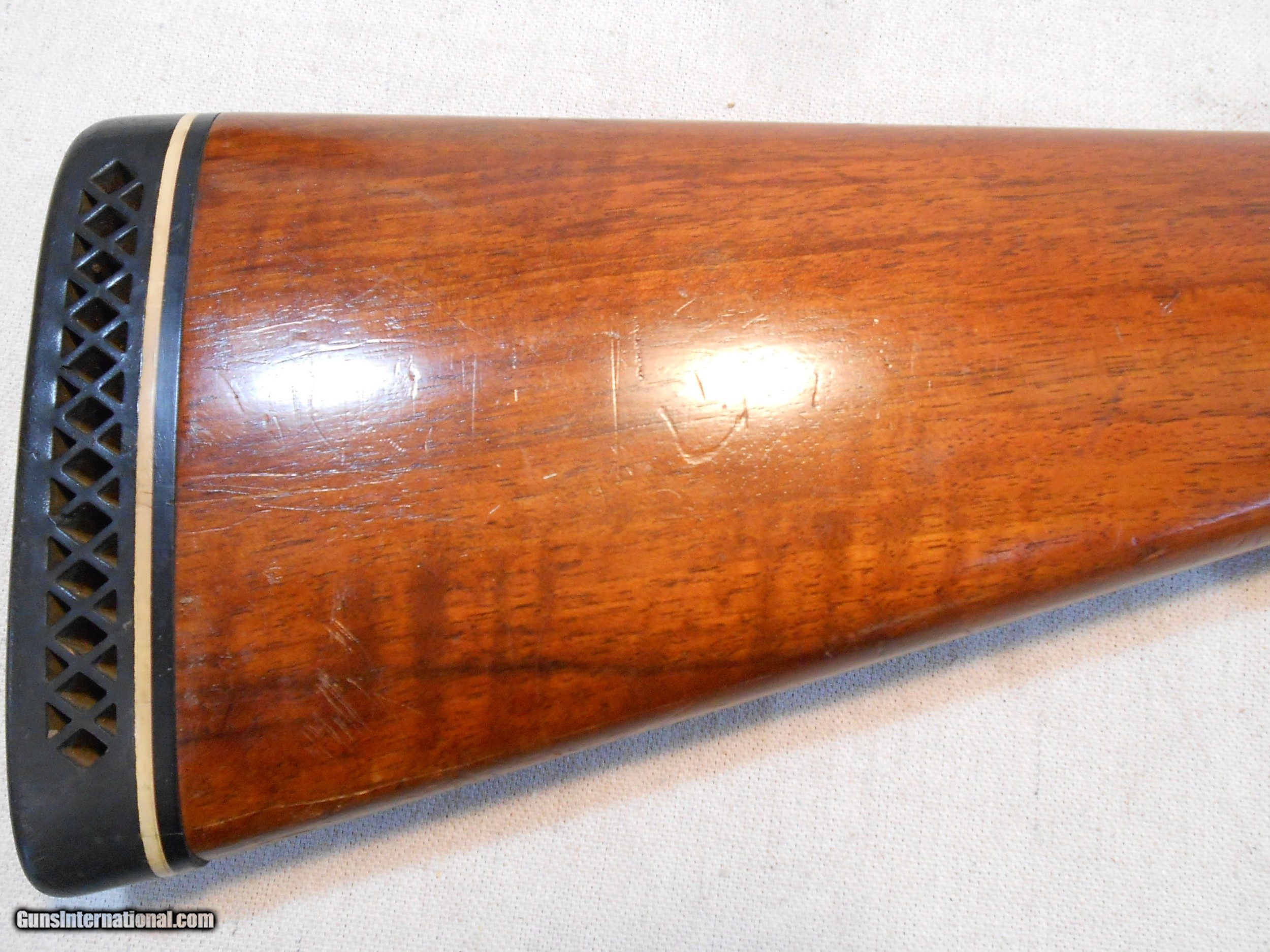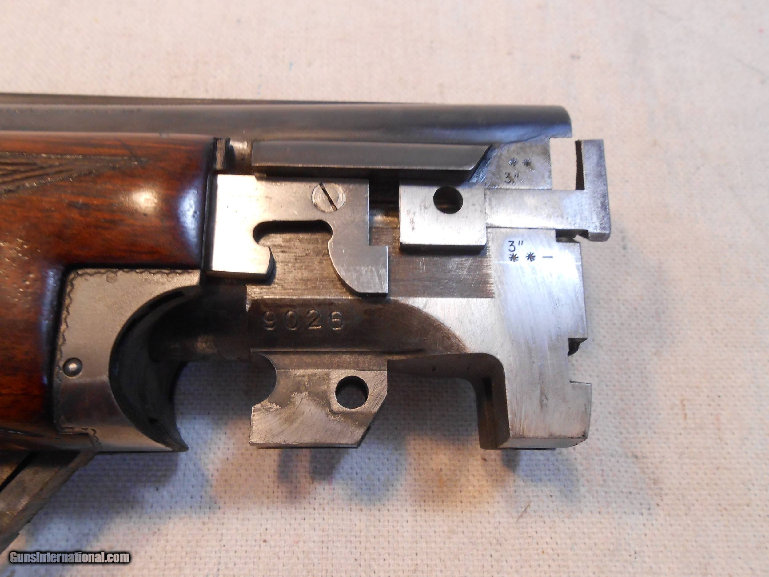 Description: 1955 Belgium Browning Superposed 20Ga. O/U Shotgun Welcome! This listing features a Belgium Browning Superposed Grade 1 20Ga. O/U Shotgun Manufactured in 1955, SN: 9026. Nice looking condition and features; *26½" Blued Vent Rib Barrels - 2¾" & 3" Shells - Modified / Improved Modified Chokes *Engraved Blued Receiver *Engraved Blued Top Lever *Gold Plated Trigger *Engraved Grey Trigger Guard *Checkered Wood Stock & Forearm *Black Synthetic Browning Butt Plate *14¼" LOP *1½" Drop at Comb *2¼" Drop at Heel *Weight: 6 1/2 lbs Condition: The bores are bright, mirrored, and have no pitting or corrosion. Dark patina stock with some dings and scratches from normal usage. The receiver shows light thinning of the bluing on the edges. Barrels shows thinning near the muzzle. no signs of scratches or dents on the metal. Gun is that the front sight is missing. ******************************************************rcf SOLD Serial Number: 9026 |