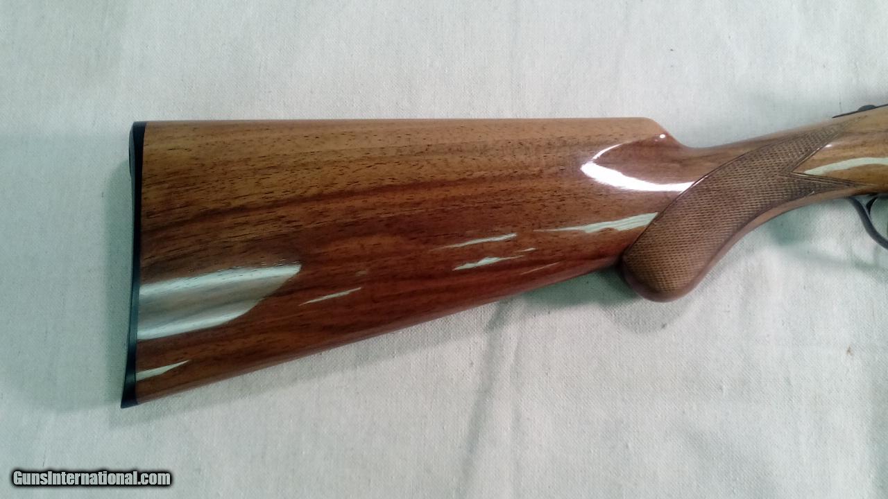 Description: Browning Superposed Lightning 20 gauge made in 1963 in excellent condition Condition: Excellent Barrel length: 28" Length of pull: 14 3/8" Drop at comb: 1 3/8" Drop at heel: 2 1/8" Cast: 1/4" -off Weight: 6lb 1oz Bottom: .007" (improved cylinder) Top: .014" (modified) Wall thickness: .038"/.039" Wood excellent no nicks, dents, scratches Bluing on receiver and barrerls excellent Only one small imperfection on entire gun- Scratch on weld between barrels at muzzle ***************************************************************************************************************************** Please Read our rull disclaimer! See the pics; I show it all so you know exactly what you are getting, nothing hidden & no surprises. Further information about this item can be obtained by emailing: beammeeryahoo, or by calling: (409)791-7225. All items are sold AS IS with NO warranty or guarantees, implied, expressed, or otherwise (Inquire with manufacturers to verify any warranties they may offer.) Buyers are solely responsible for determining the safety of items purchased. No firearm should be fired without having the weapon initially inspected by a qualified gunsmith. The firearms offered have NOT been TEST FIRED unless otherwise stated, but have been given a visual inspection for sale purposes only. We are not gunsmiths and can sometimes miss things. It is recommended that buyers have all firearms inspected by a competent gunsmith prior to use. A valid FFL is required for all transactions. Buyers will be charged for shipping costs to an authorized FFL dealer, and will receive a copy of my FFL with the gun. Shipping is not offered to locations outside of the United States. Accepted forms of payment are charge/debit cards (Visa, Master Card), cash (Wire Transfer), money order (Preferably USPS), Cashier's/Teller/Certified Check or personal check (Item is held for up to 10 business days to allow ANY checks or money orders (except USPS) to clear.) A 3% service charge will be added to purchases made with charge/debit cards. Layaway is not offered. Returns are not accepted, however, a 10% restock fee will be charged in the rare case that a return is authorized. Buyers are solely responsible for their awareness of and compliance with all laws and regulations in their state of residence regarding firearms. By purchasing, buyer agrees to release seller from all liability, whether criminal or civil, arising from the purchase, ownership, possession, or use or misuse of purchased items, and against damages, injury or death caused by use or misuse, or defective merchandise. Thank you for your interest & please check out my other listings. SOLD Manufacturer: BROWNING Model: superposed Serial Number: 30082v3 Bore: 20ga |