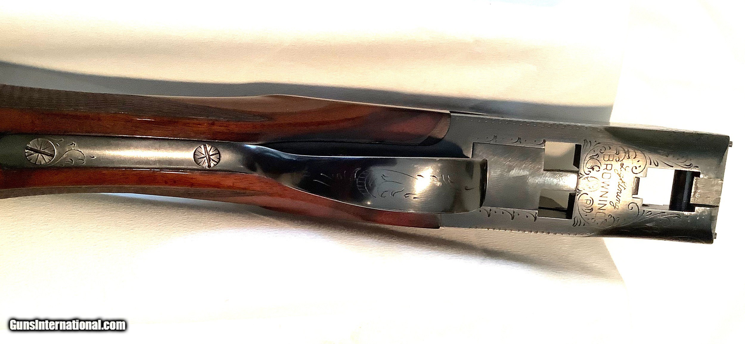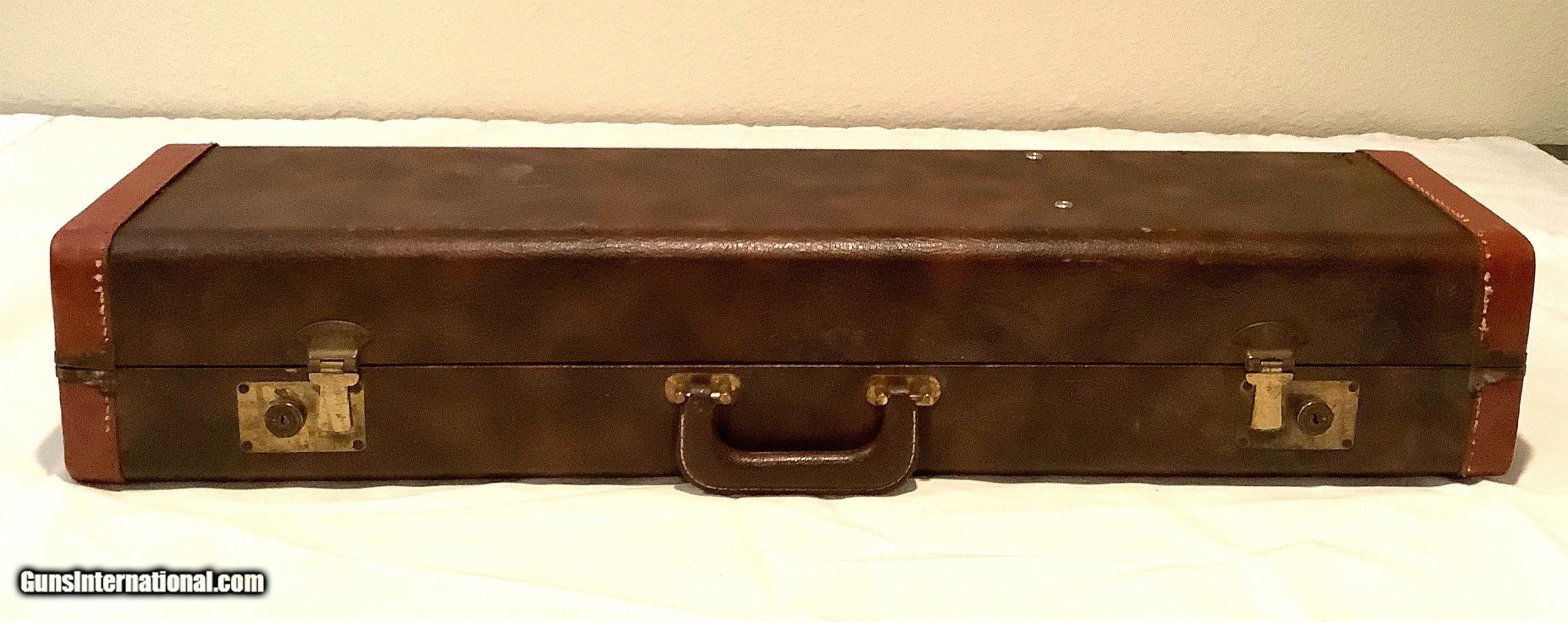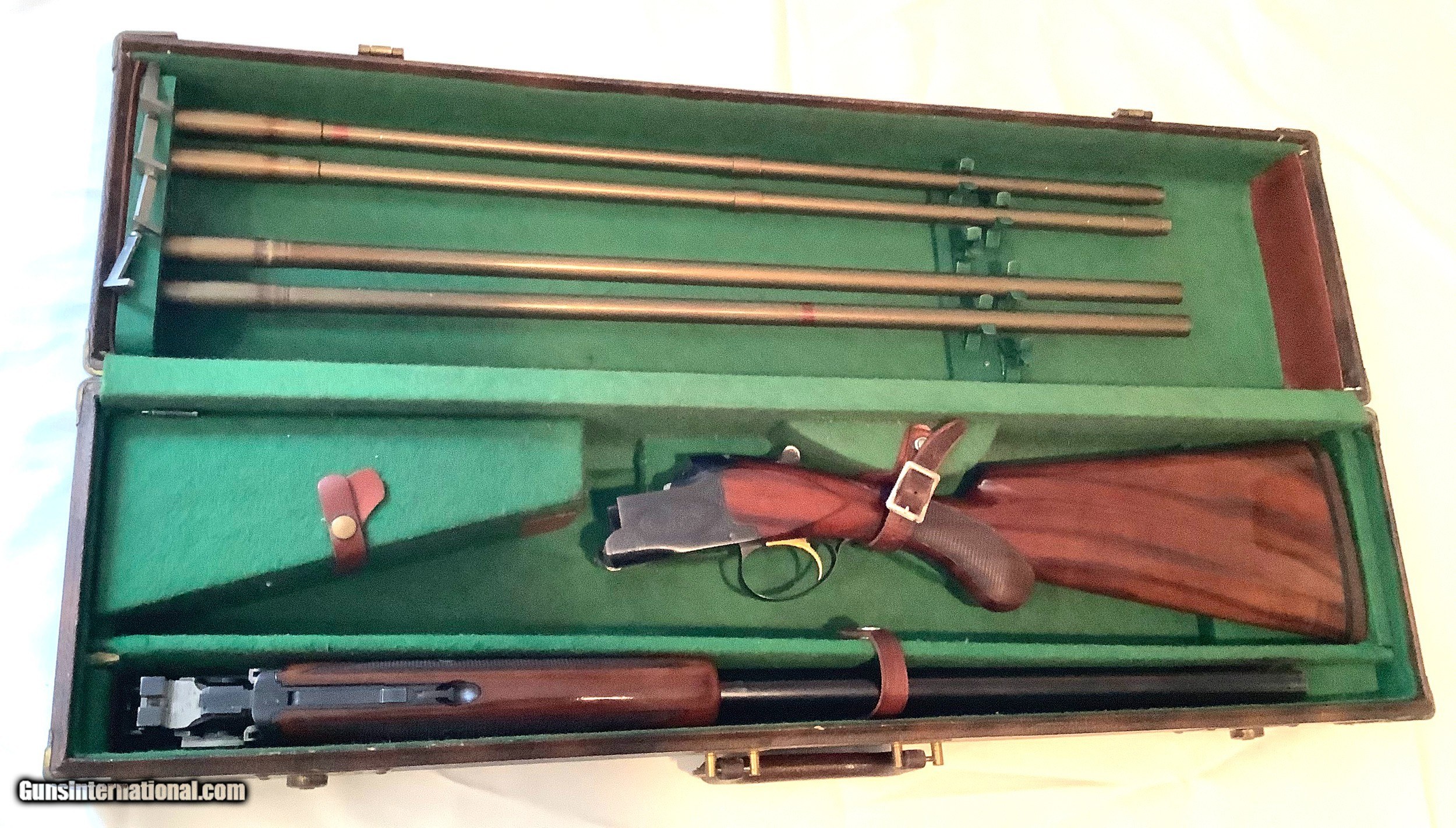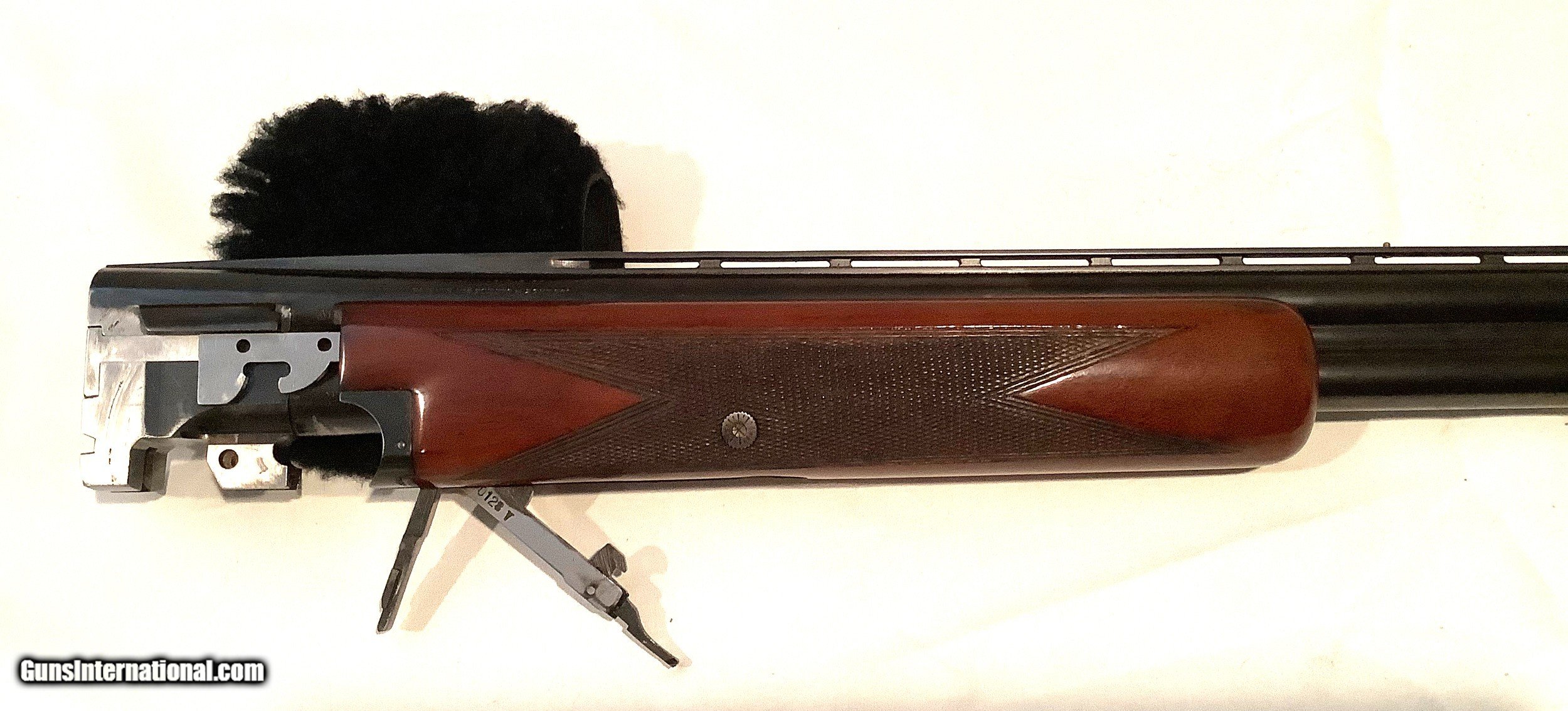 Description: 1966 FN Browning Superposed Lightning 20 Ga. Shotgun in excellent condition, fully functional and shoots a nice pattern. 26 1/2 inch barrels w/VR, 3" chambers, fixed chokes that measure .612" (Sk) and .612" (Sk). Exceptional stripped walnut stock, measurements are 14 5/16" LOP over an Old English pad, comb drop 2 5/16" and no cast. This shotgun has mechanical trigger to function the lighter recoil of the 28 Ga and .410" inserts. The two sets of Claude Purbaugh inserts have fixed IC chokes in each and come with proper sized ejectors. The 28 Ga inserts have 2 3/4" chambers, the .410" inserts have 3" chambers. The luggage case is in fine condition and holds inserts, parts and shotgun. I rate this shotgun at 95%, the action is tight and sound for its age. There are no blemishes in the wood, the bluing has no flaws. Inside the action there are a few tool marks and wear marks form use. The shipping is not included in the price. SOLD Shotgun Gauge: 20 Gauge |