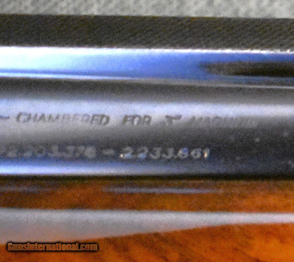 Description: Belgain Browning 12 gauge grade one superposed magnum duck gun. Built in 1965, this gun has the round knob, long tang stock. It has 30" vent rib barrels choked full (.030") and fuller (.040"). The bores are mint and the barrels are on face with no play or looseness.The gun is in excellent original condition retaining 95% of the original blue and 98% of the original wood finish. The stock has 14"LOP over the factory installed Browning recoil pad.These 3" duck guns are very hard to find in good condition as many of them saw very hard use. A great field gun for pheasants or turkeys and a fine duck gun with Bismuth or tungsten matrix shot. Also very collectible. C&R eligible. Price includes shipping to your FFL. SOLD Curio/Relic: Yes Shotgun Gauge: 12 Gauge Manufacturer: Browning (FN) Model: Superposed Grade One Mag Serial Number: 38792 S5 Barrel Length: 30 Chambers: 3 Ejectors: Yes Condition: excellent Metal Condition: excellent Wood Condition: excellent Bore Condition: mint Barrel Type: Browning Special Steel Action: Over Under Triggers: Single Selective Butt Pad: Factory Recoil Pad LOP: 14 Manufacture Date: 1965 Choke Left: Full (.040") Choke Right: full (.030") |