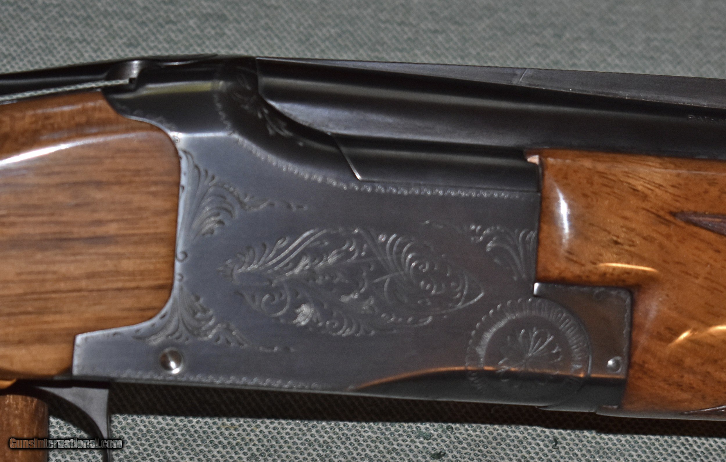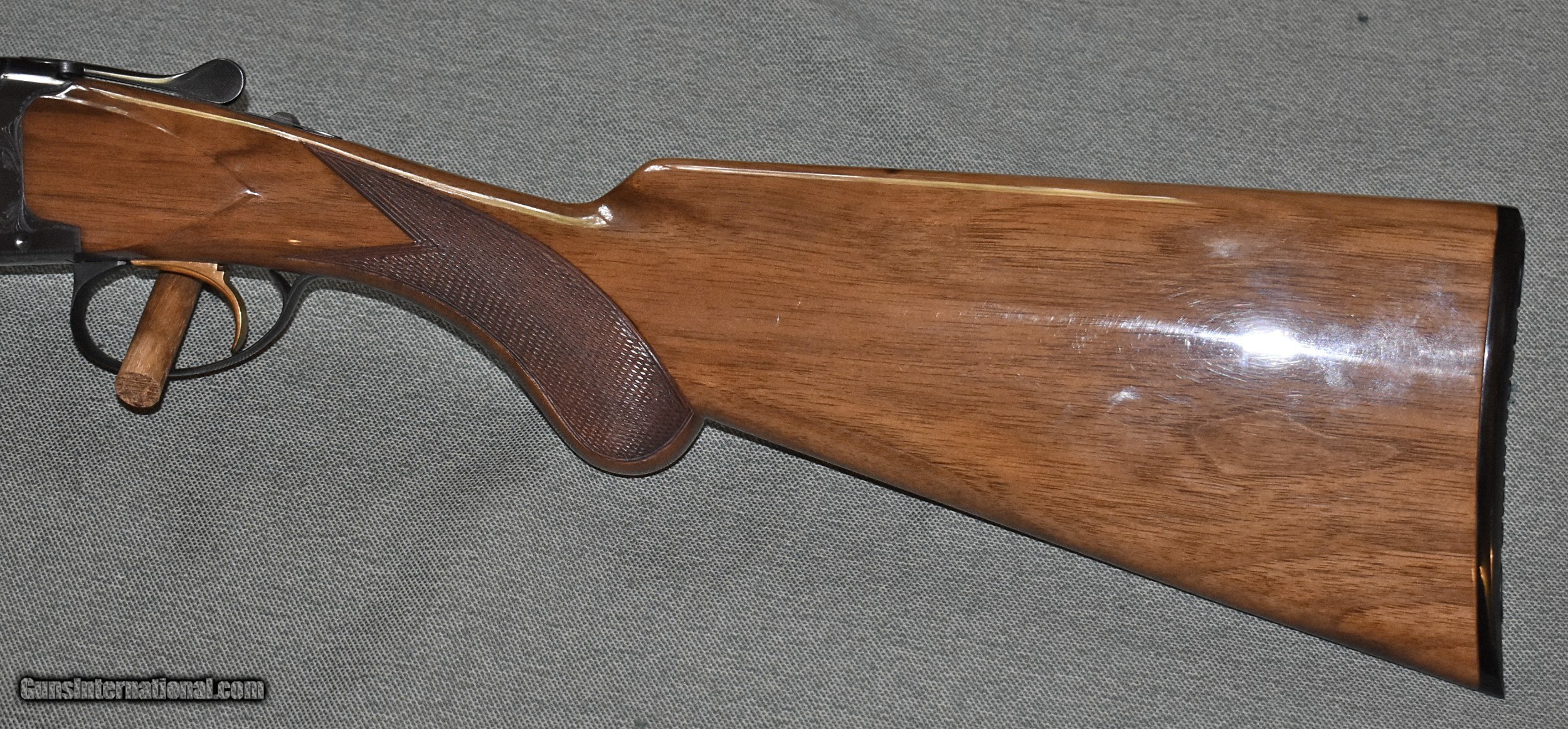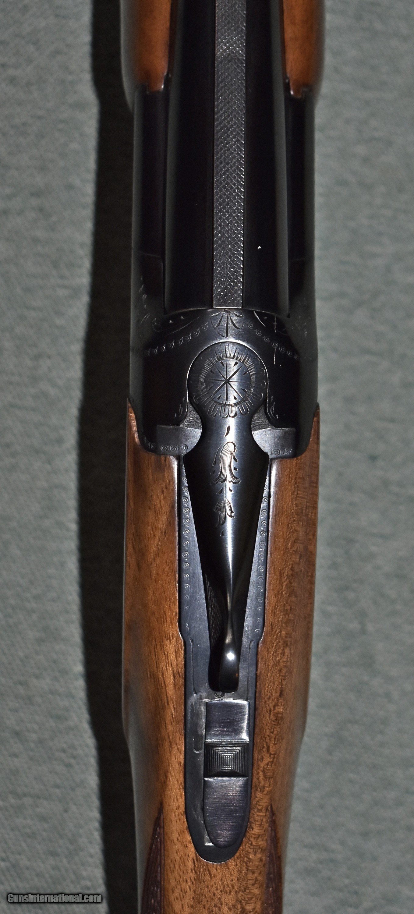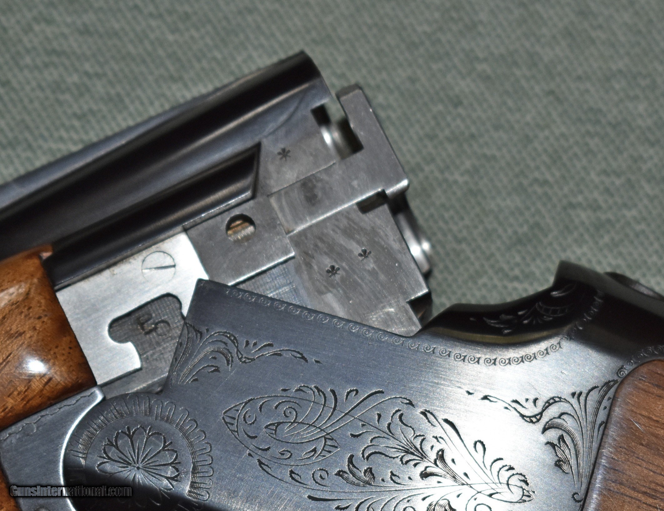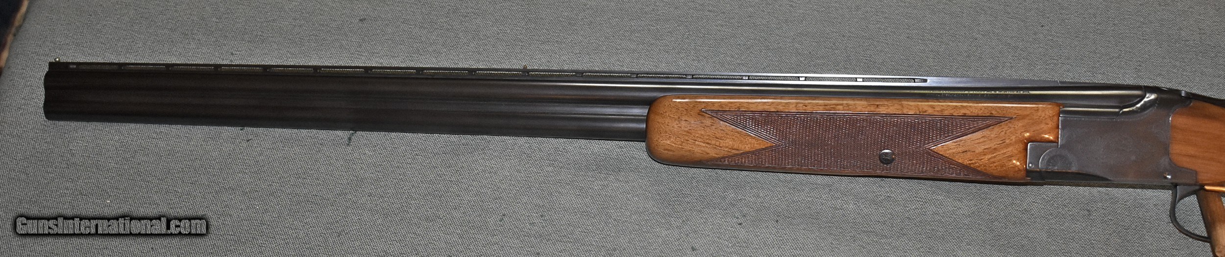 Description: Belgian Browning grade one lightening 20 gauge superposed. Built in 1962, this gun has 28" vent rib barrels choked modified and full. The gun is in mint all original condition retaining 100% of the original blue and wood finish. The bores are mint and bright. The round knob,long tang stock still retains the original factory buttplate. This is a great little superposed for collector or shooter. C&R eligible. SOLD Curio/Relic: Yes Shotgun Gauge: 20 Gauge Manufacturer: Browning (FN) Model: Superposed Grade One Serial Number: 25388 Barrel Length: 28 Chambers: 23/4" & 3 Ejectors: yes Condition: mint Metal Condition: mint Wood Condition: mint Bore Condition: mint Barrel Type: Browning Special Steel Action: over under Triggers: single selective Butt Pad: factory buttplate Rib: ventilated Weight: 6-4 Manufacture Date: 1962 Choke Left: full Choke Right: modified |