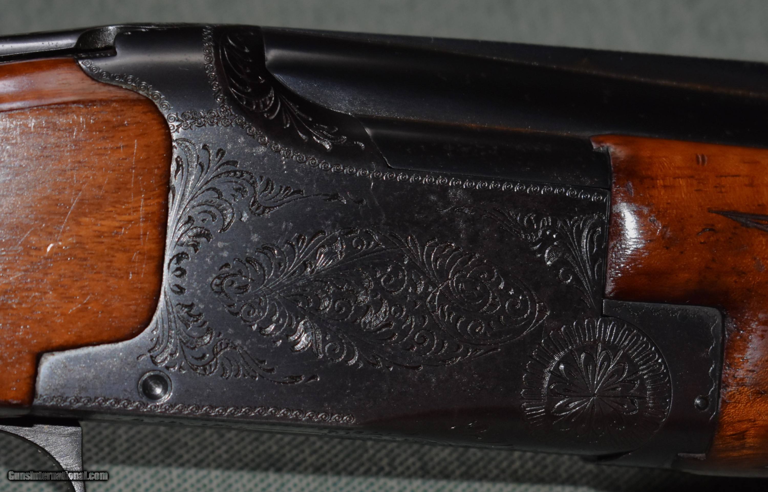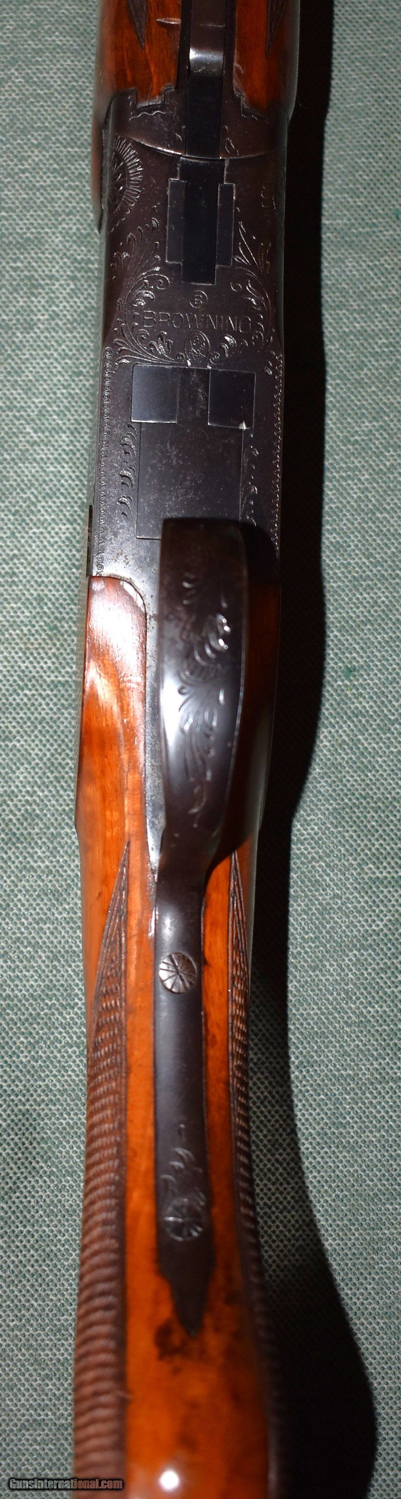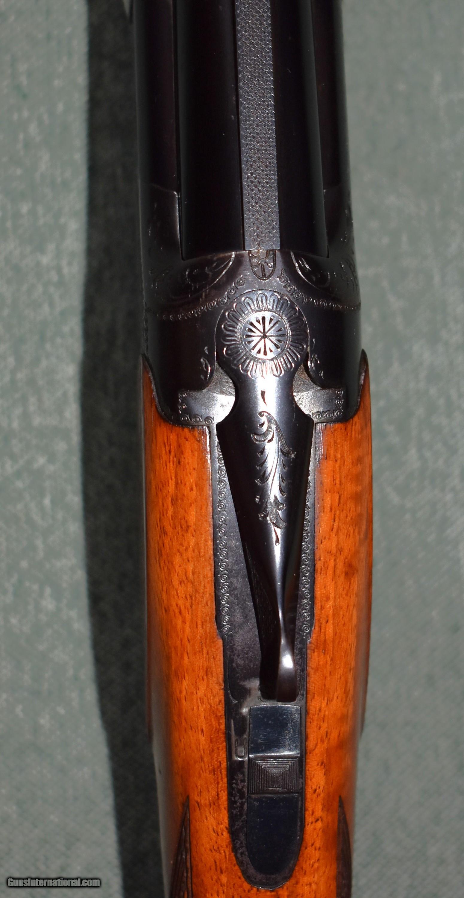 Description: Belgian Browning 20 gauge grade one superposed. Built in 1955,this gun has the round knob,long tang stock. It has 261/2" barrels choked skeet (.005") amd sleet (.005"). The gun is in excellent original condition retaining 95% of the original blue and wood finishes. The stock retains the original Browning buttplate. the stock and forend are sound with no cracks or damage. The bores are mint and free of dents or rust. The action is on face and locks up with no play. The gun comes with a Browning luggage case. A great upland bird gun weighing in at only 6-4. C&R eligible. SOLD Curio/Relic: Yes Shotgun Gauge: 20 Gauge Manufacturer: Browning (FN) Model: Superposed Grade One Serial Number: 8858 Barrel Length: 261/2 Chambers: 23/4 Ejectors: Yes Condition: excellent Metal Condition: excellent Wood Condition: excellent Bore Condition: mint Barrel Type: Browning Special Steel Action: Over Under Triggers: Single Selective Butt Pad: Factory Buttplate Rib: Ventilated Manufacture Date: 1955 Choke Left: Skrrt (.005") Choke Right: Skeet (.005") Case: Factory Case |