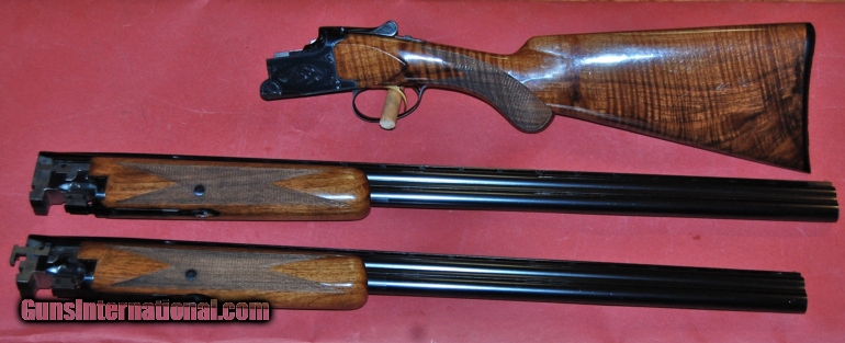 Description: Belgian Browning 20ga 2 barrel set.Built in 1964,this gun has the round knob and long tang.The barrels are 261/2" skeet and skeet and 28" modified and full.Both barrels are numbered to the gun.It retains 98%+ of the original wood and blue finish.The wood is extra nice for a grade one gun with a honey gold color and a tiger stripe effect.The gun is cased in a Browning luggage case.It is 50 years old so it is C&R eligible.A classic superposed that will only go up in value. SOLD Curio/Relic: Yes |