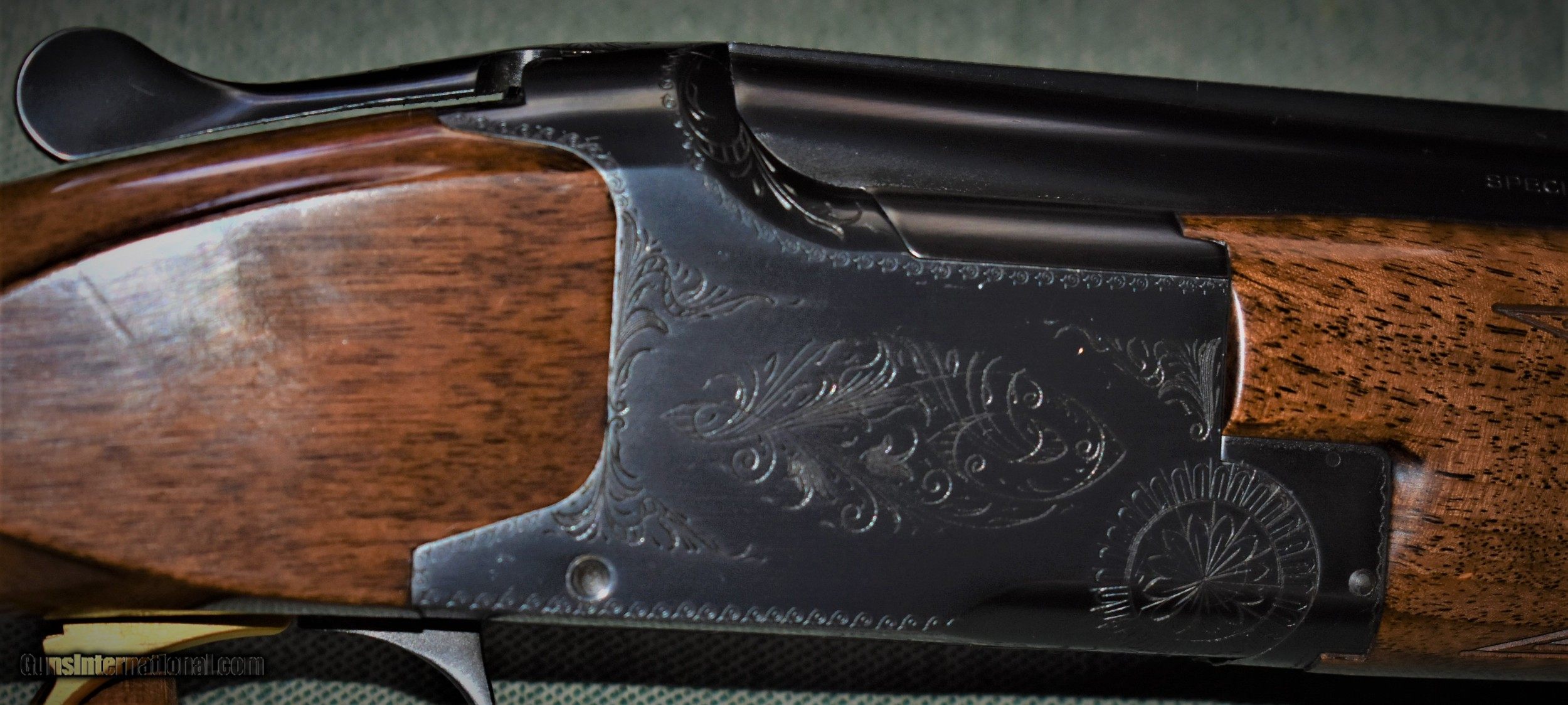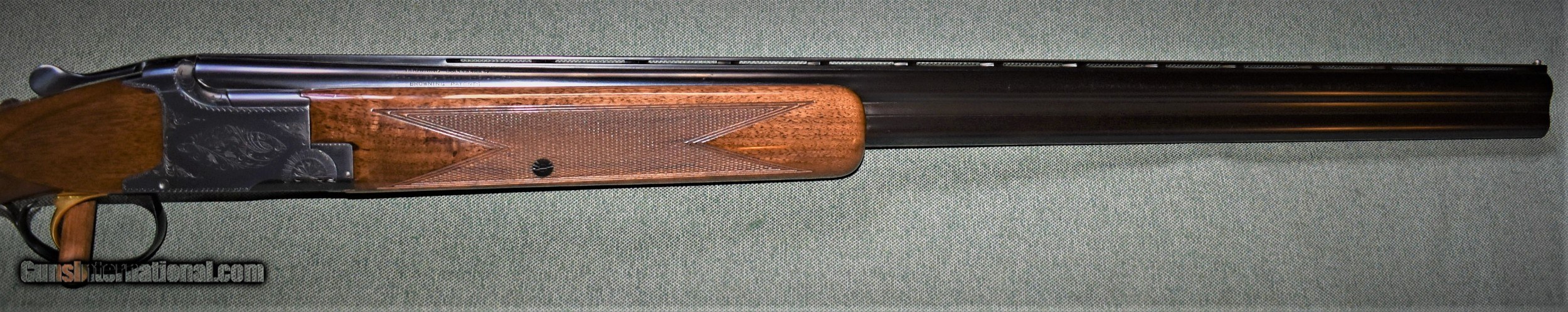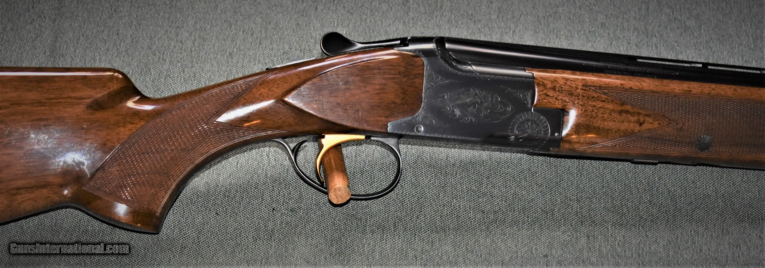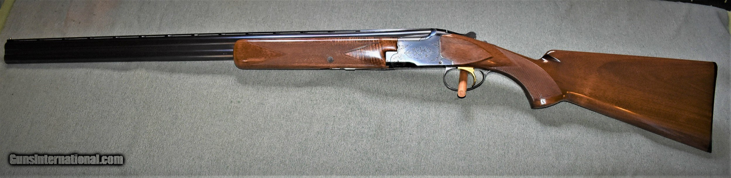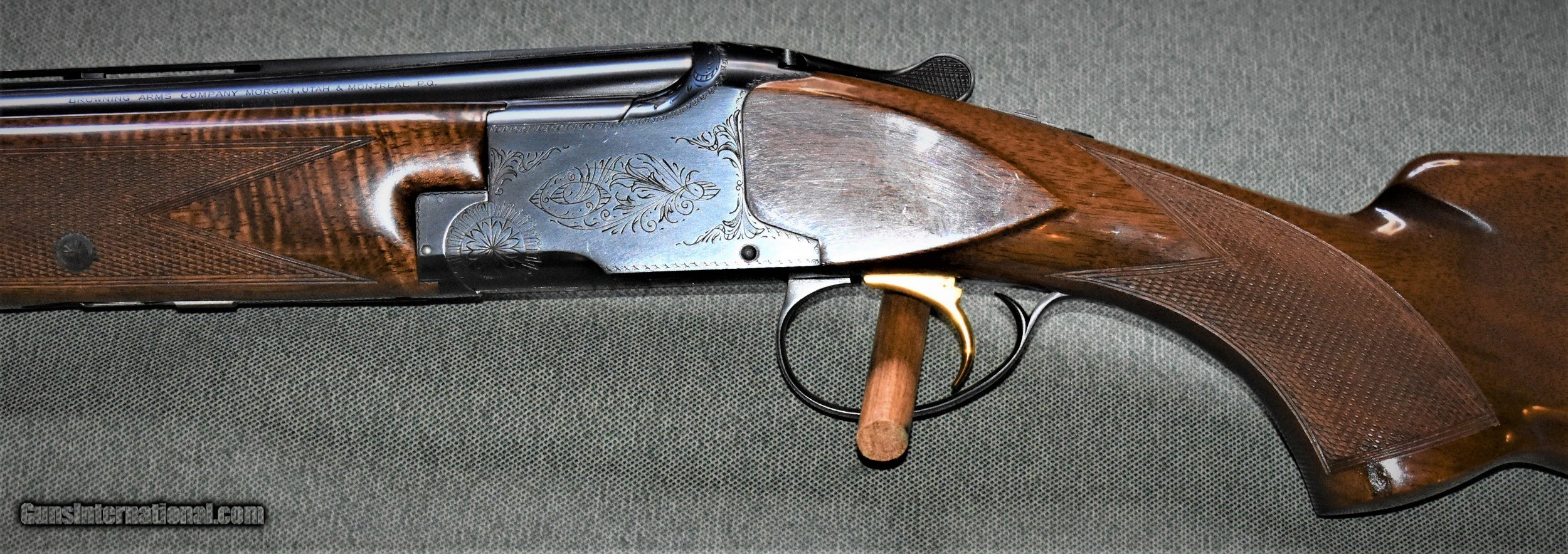 Description: Belgian Browning 20 gauge grade one superposed built in 1972. This gun is in like new condition retaining 100% of the original blue and wood finishes. The 261/2" vent rib barrels are choked modified and full. The stock has the square knob,long tang stoc and retains the original Browning buttplate. The gun is so new that the barrels are still stiff on opening. The gun is chambered to handle 3" shells and weighs in at 6-2. This would make a great walking pheasant gun or dove gun. Tested and is salt free. Very hard to find in this condition. SOLD Shotgun Gauge: 20 Gauge Manufacturer: Browning (FN) Model: Superposed Grade One Serial Number: 2104V72 Barrel Length: 261/2 Chambers: 3 Ejectors: yes Condition: mint Metal Condition: mint Wood Condition: mint Bore Condition: mint Barrel Type: Browning Special Steel Action: Over Under Triggers: single selectibe Butt Pad: Factory Buttplate Rib: Ventilated Manufacture Date: 1972 Choke Left: Full Choke Right: m |